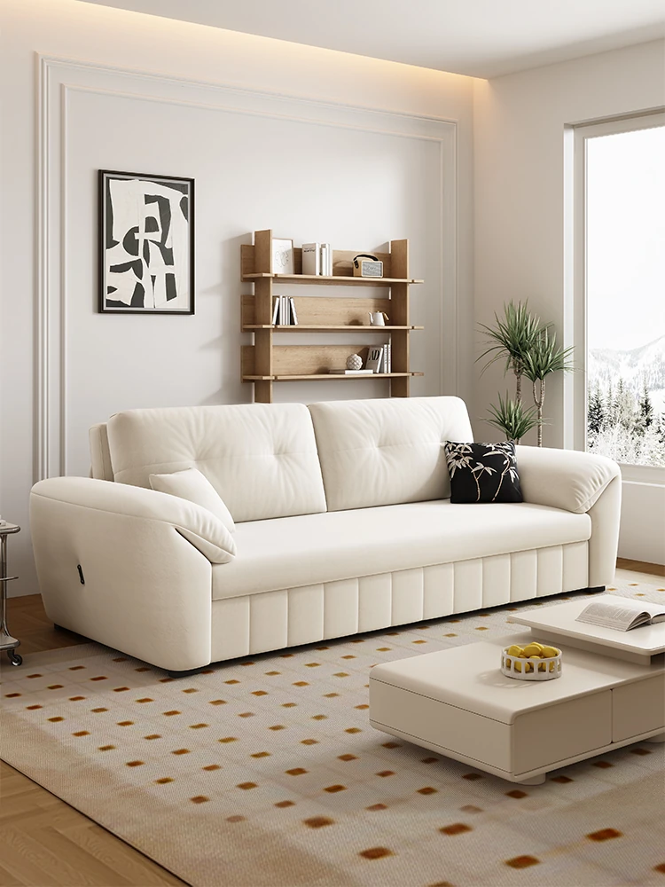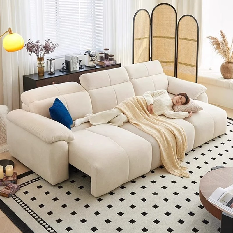 電動多機能ファブリックソファベッド - モダンでシンプル、おしゃれなリビングにぴったり!省スペースの小型設計、クリームカラーでお部屋を明るく演出。調整可能な伸縮機能で、快適な睡眠空間を提供します!