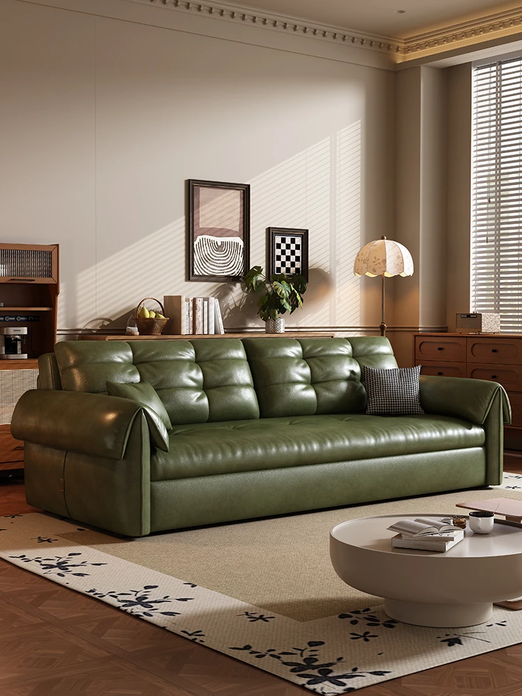 レトロオイルワックスレザーの中古風ソファベッド、真皮製の折りたたみ式2WAYデザイン!2025年新作、リビングで使える座り心地抜群のソファベッド。快適な寝心地を実現し、スタイリッシュなインテリアを演出します!