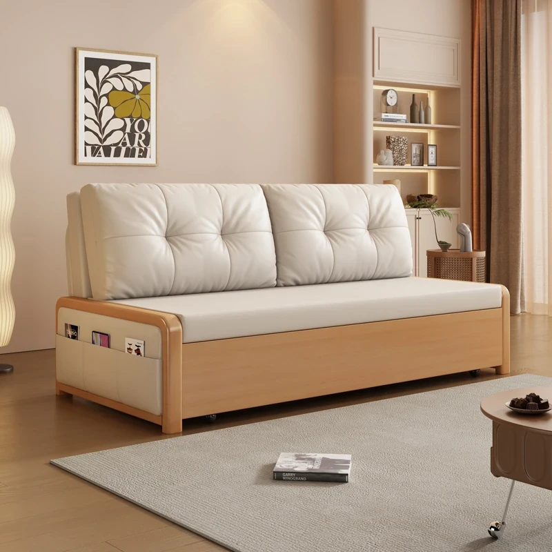 寝転びもできる!クリーム風ソファベッド 一体型リビング用 折りたたみ式 シングル&ダブル対応 小型住宅に最適な2025年新作