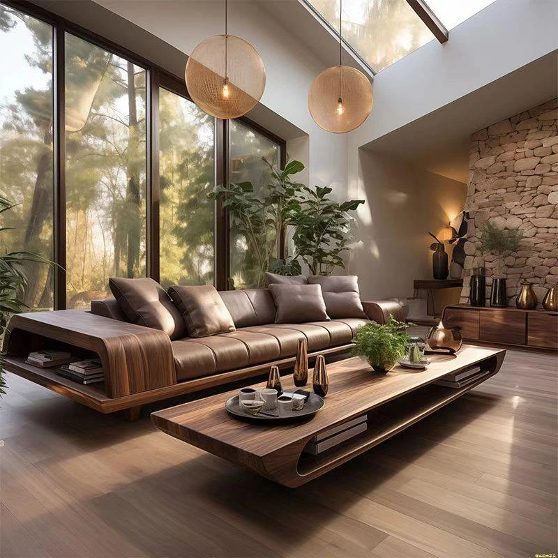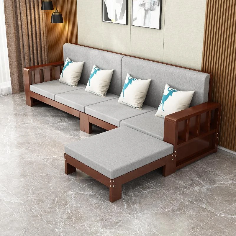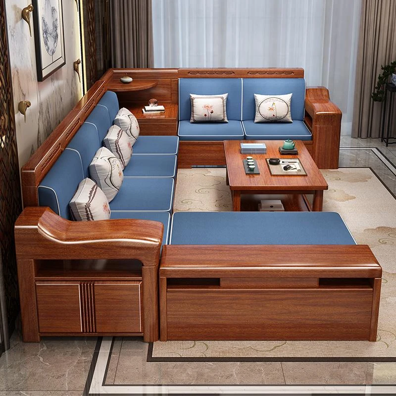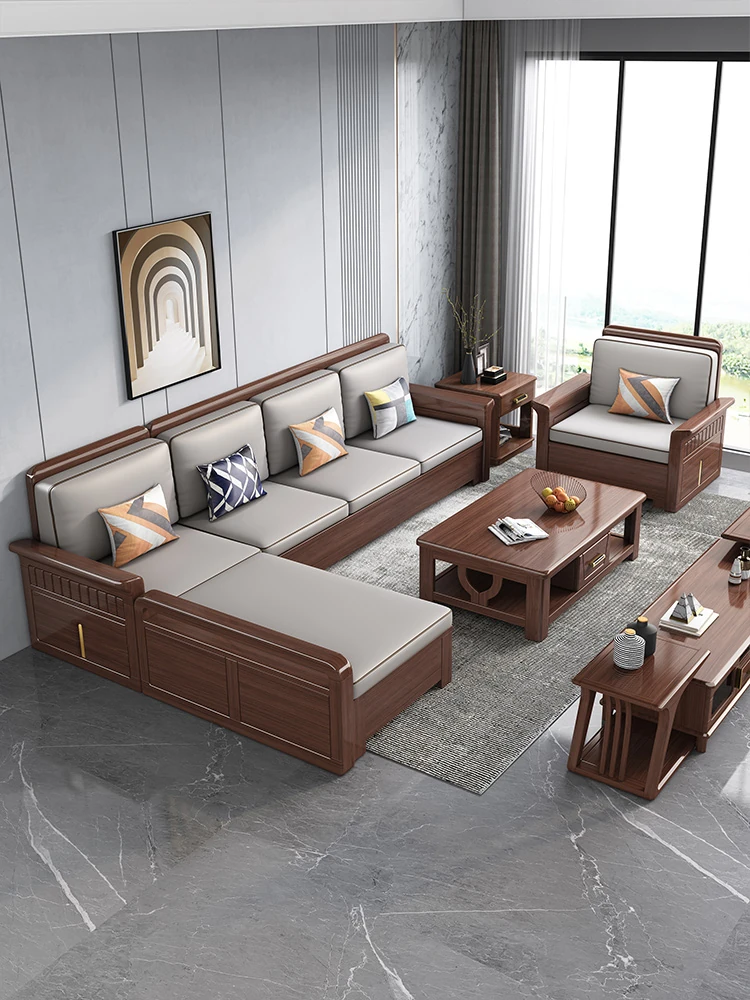 Modern Chinese Style Solid Wood Walnut Corner Sofa Set – Versatile and Stylish for Year-Round Comfort in Your Living Room