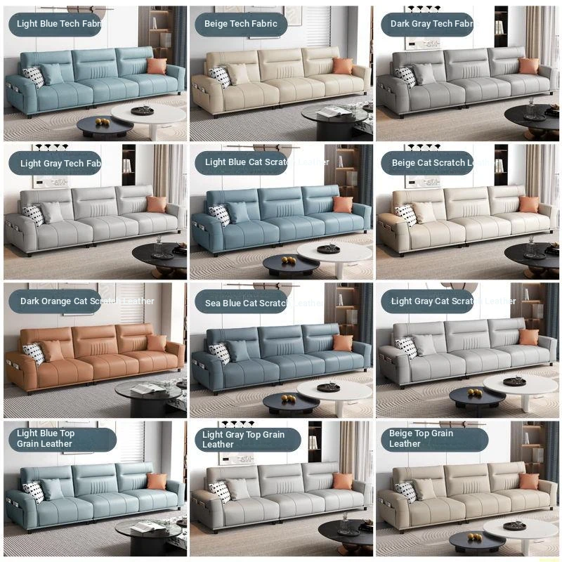 New Modern Minimalist Straight-Line Three-Seater Genuine Leather Sofa for Small Living Rooms - High Leg Electric Function Sofa