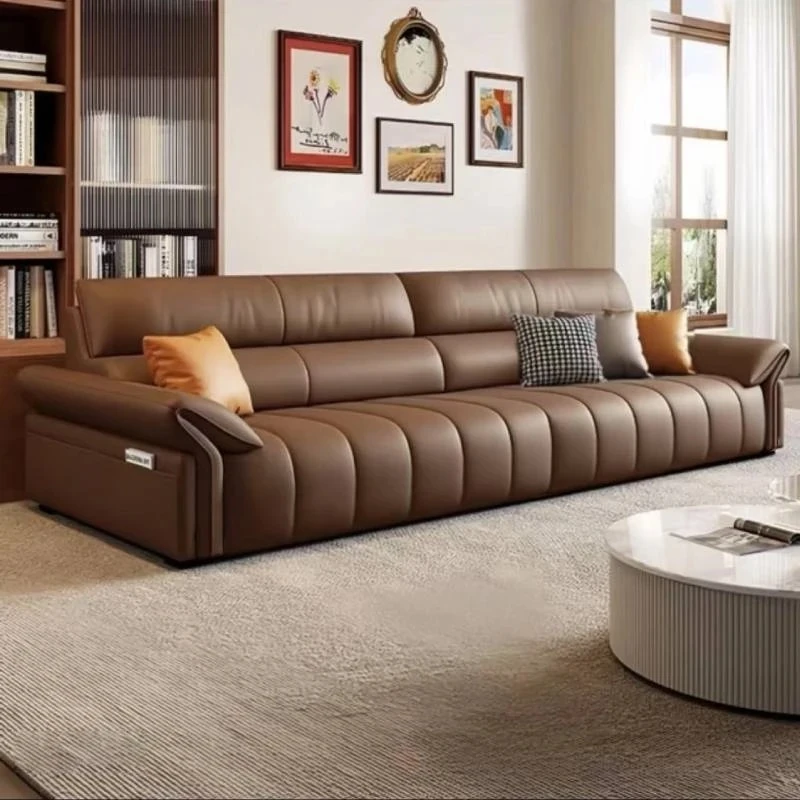 2025 New Luxury Italian Cloud Style Genuine Leather Sofa for Large Living Rooms - Premium Top-Grain Leather, Perfect for Modern Elegance