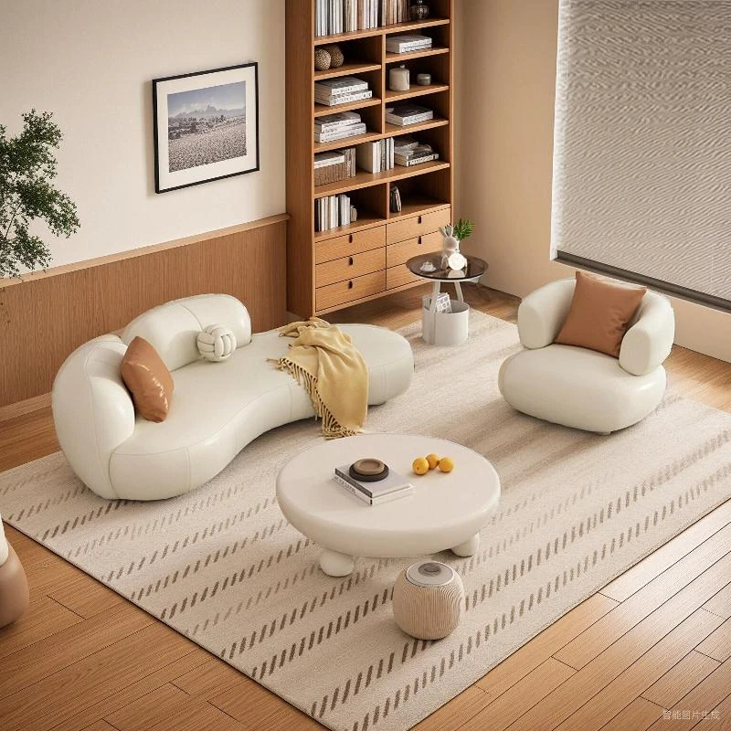 Modern Minimalist Cream Sofa Set for Offices - Trendy Curved Reception Area with Coffee Table, Perfect for Beauty Salons and Relaxation Spaces