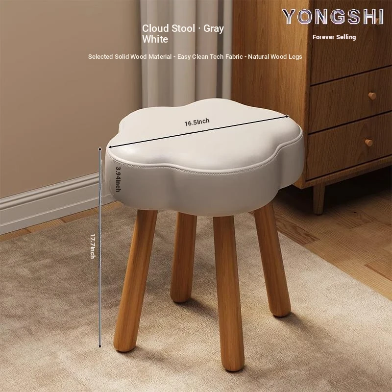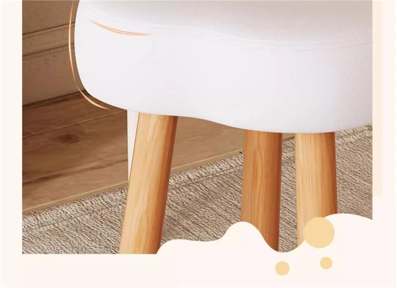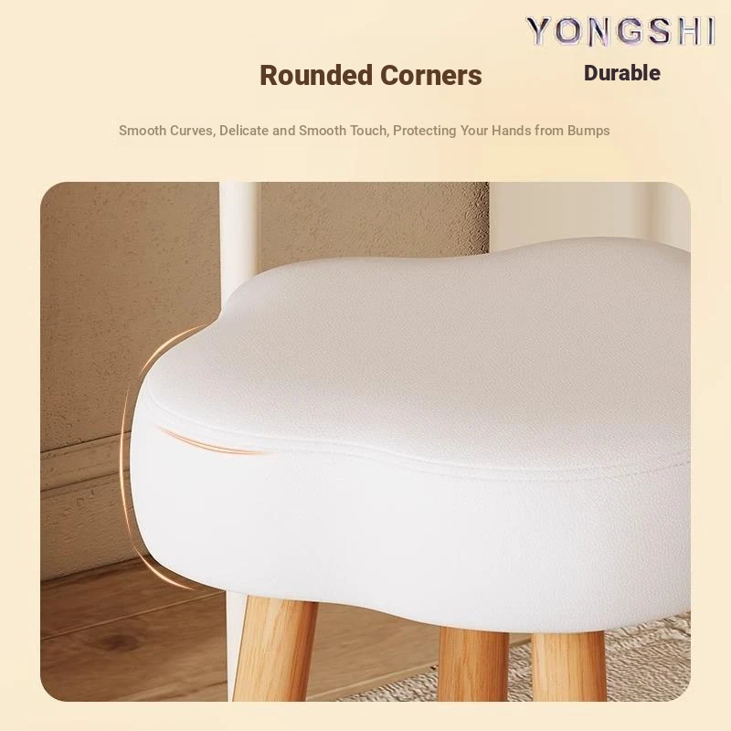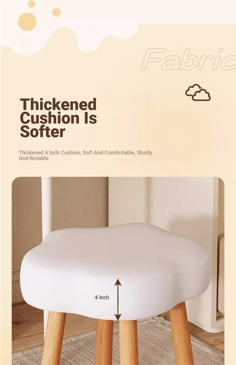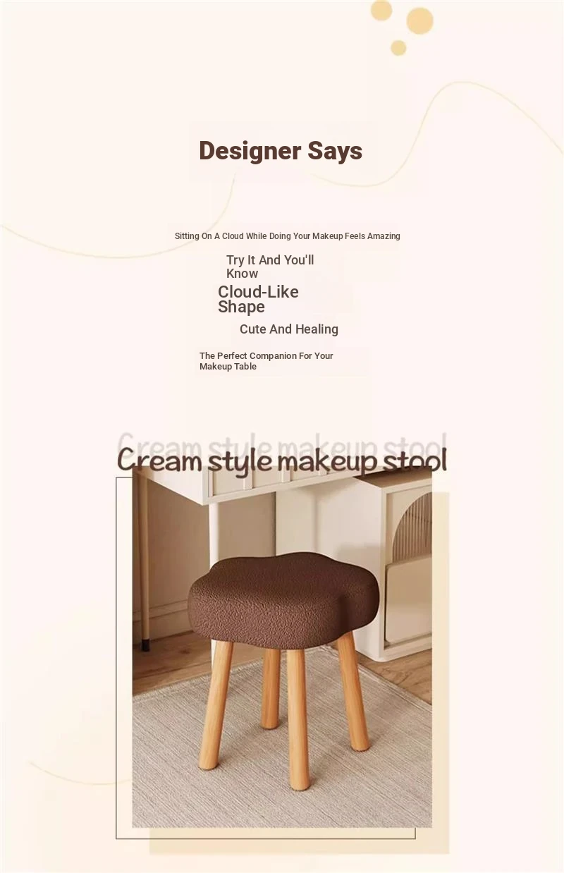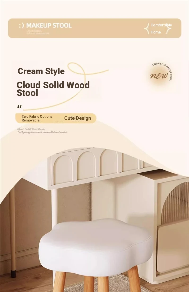 Creamy Vanity Stool for Makeup - Elegant Solid Wood Cloud Chair for Girls' Bedrooms, Minimalist Design, Perfect for Nail Art and Beauty Routines.