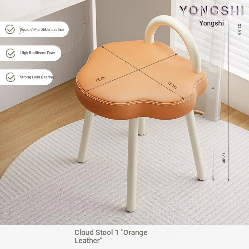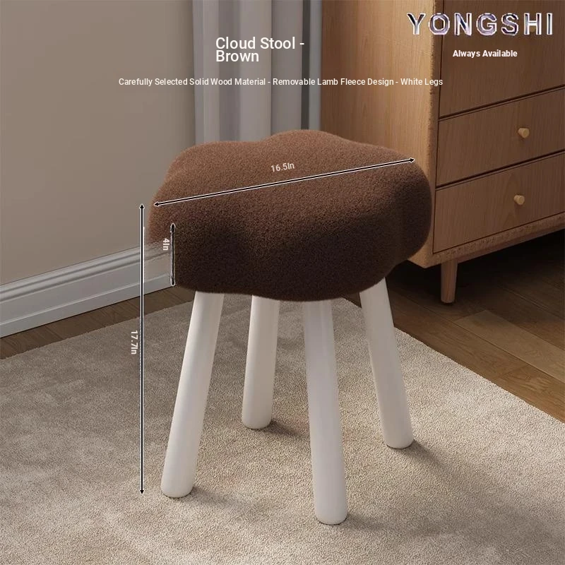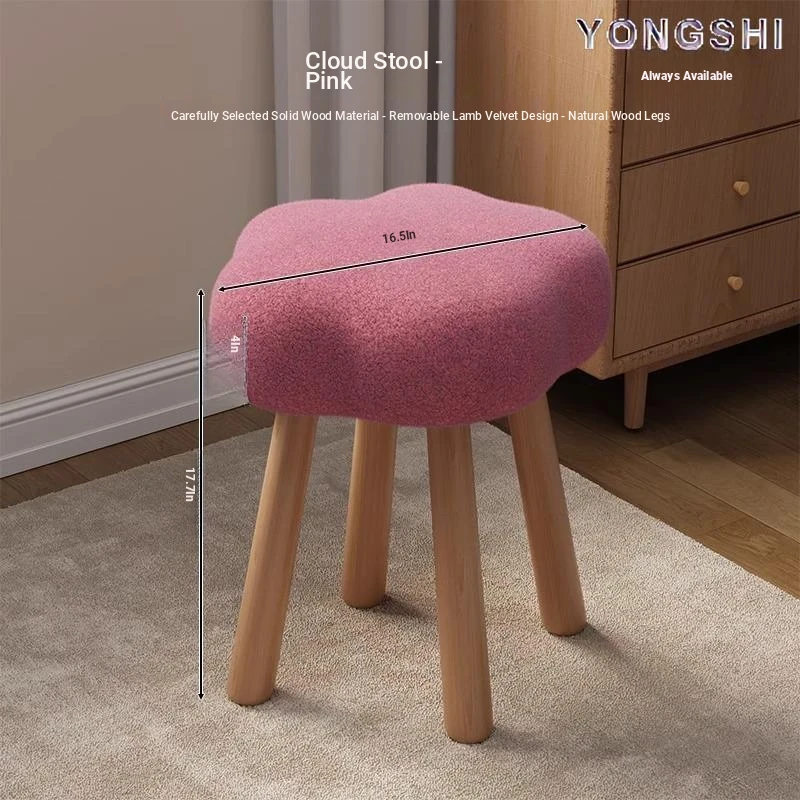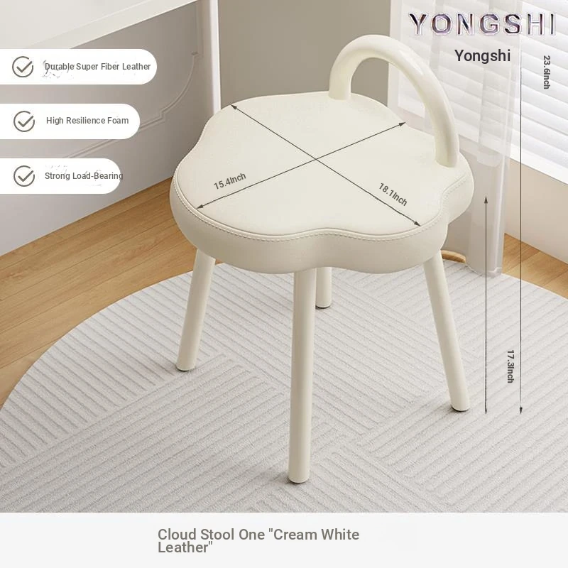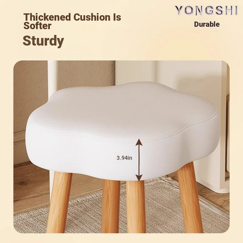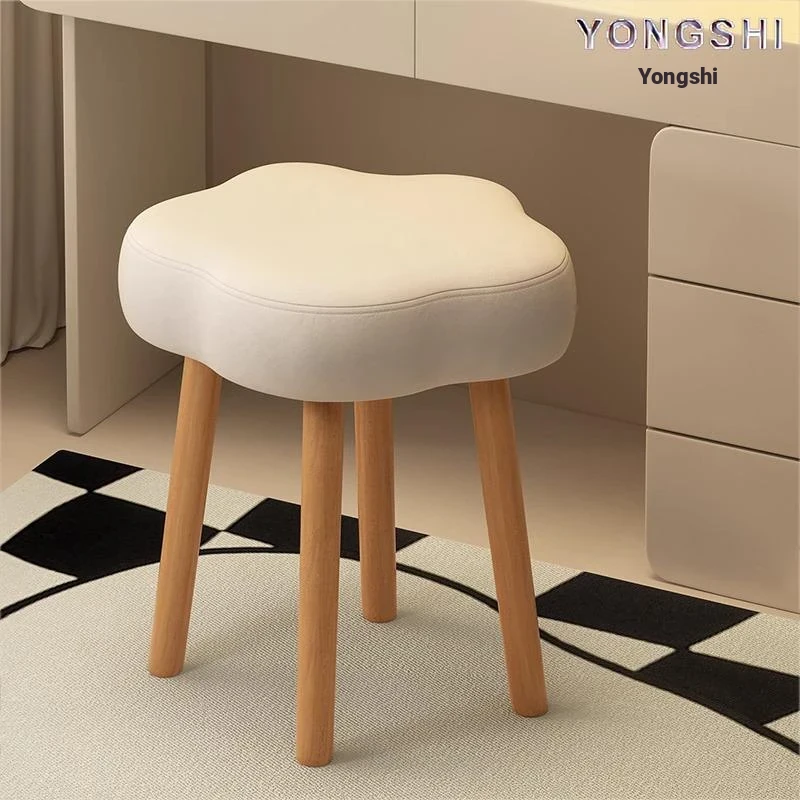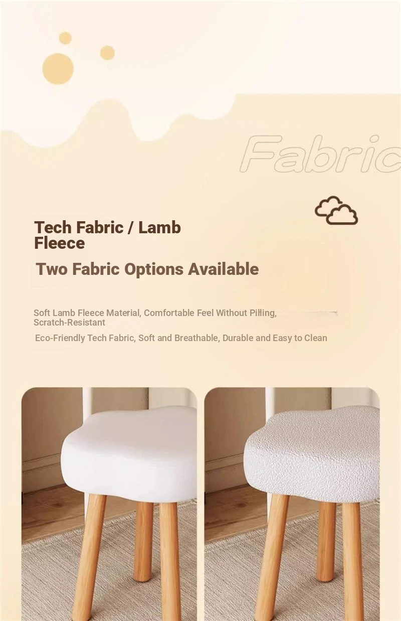 Creamy Vanity Stool for Makeup - Elegant Solid Wood Cloud Chair for Girls' Bedrooms, Minimalist Design, Perfect for Nail Art and Beauty Routines.