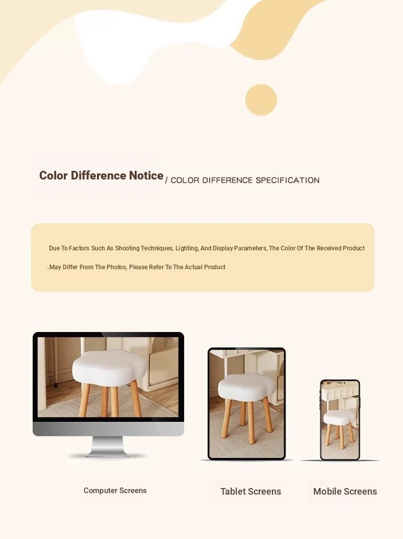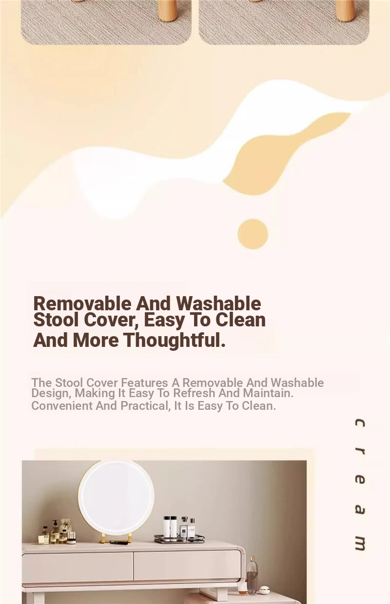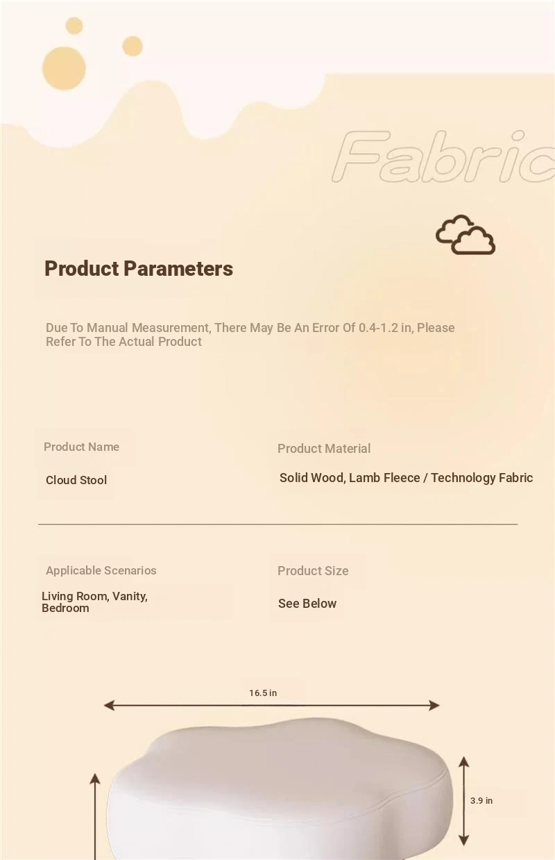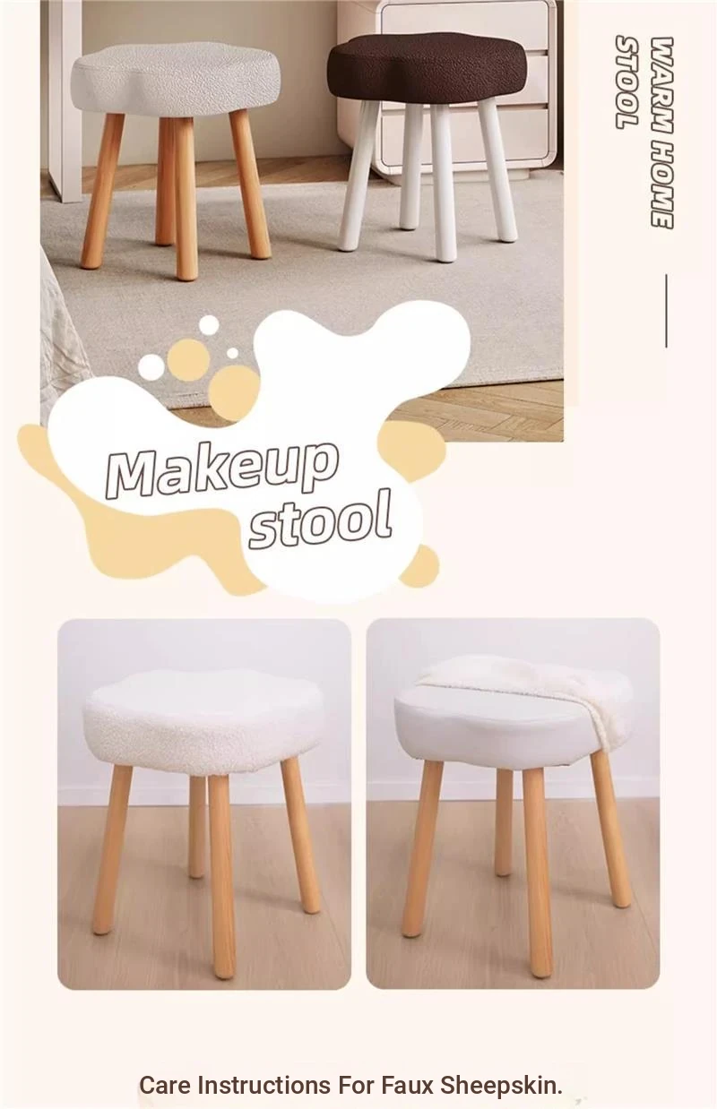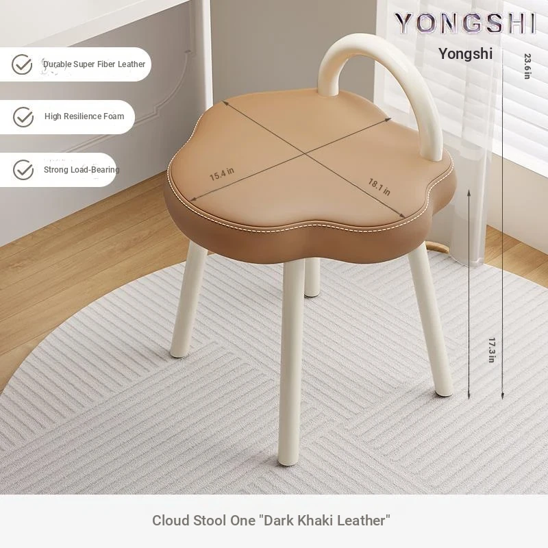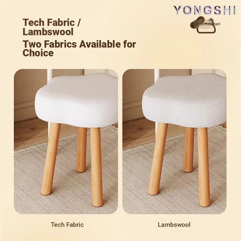 Creamy Vanity Stool for Makeup - Elegant Solid Wood Cloud Chair for Girls' Bedrooms, Minimalist Design, Perfect for Nail Art and Beauty Routines.