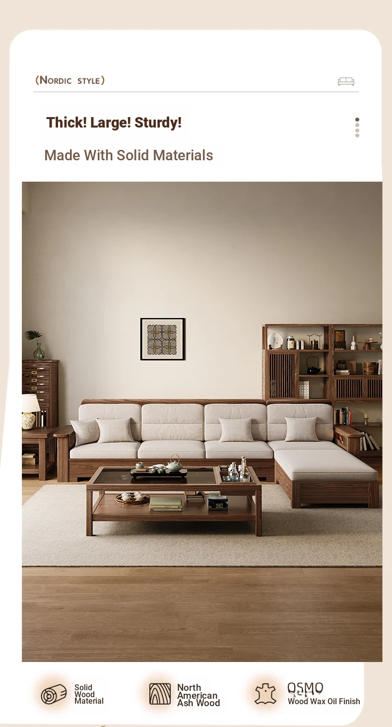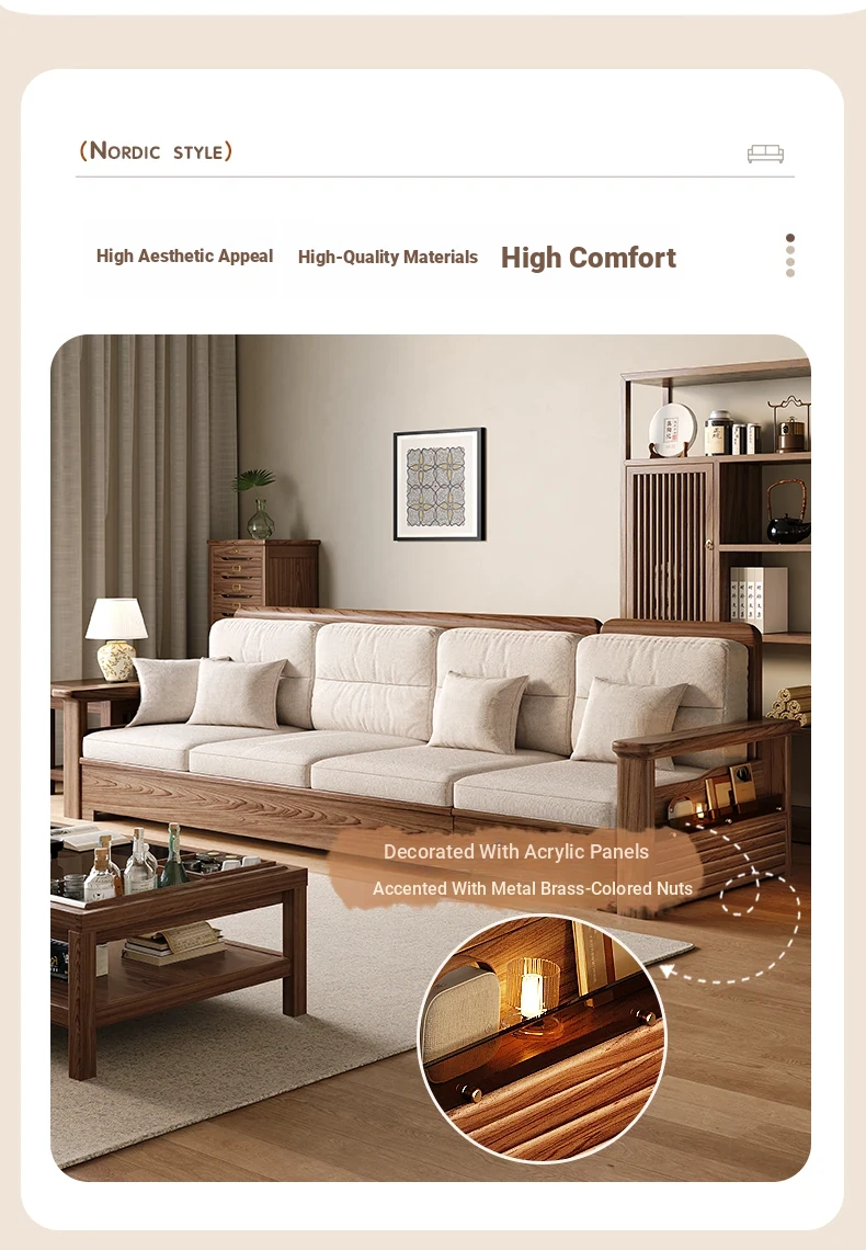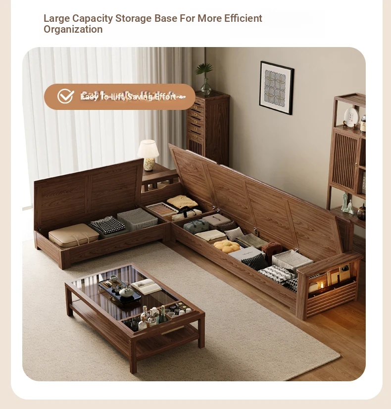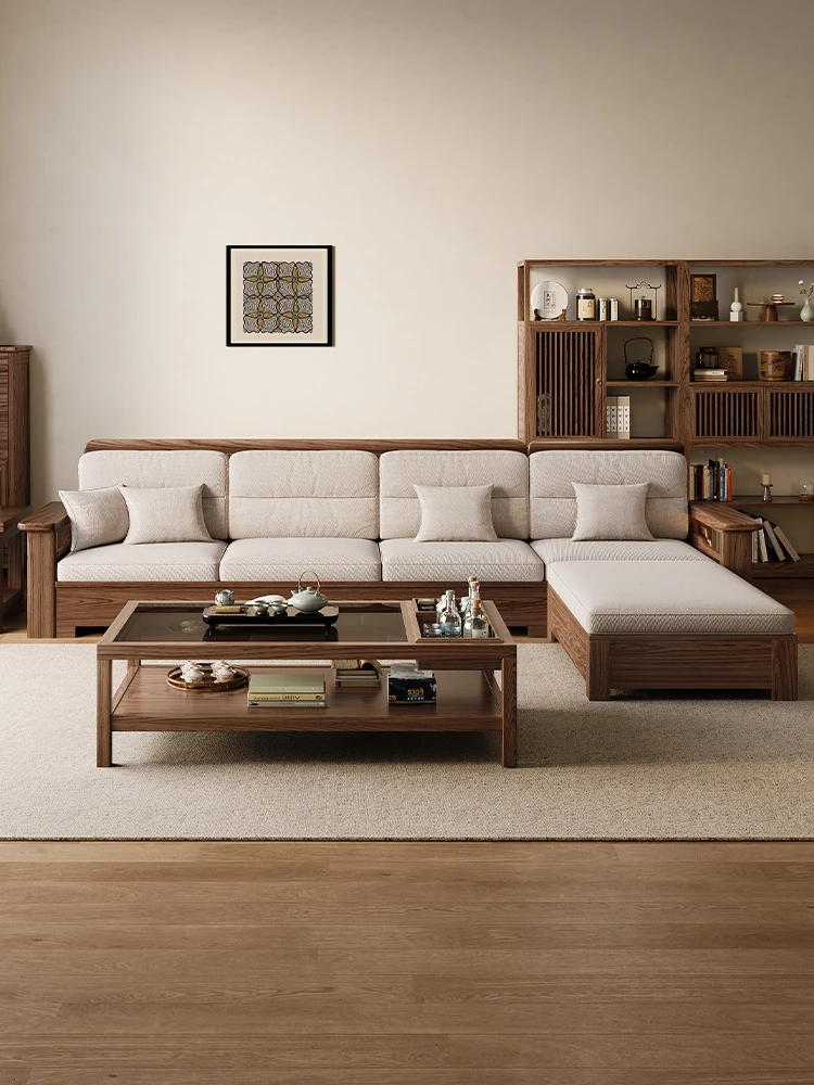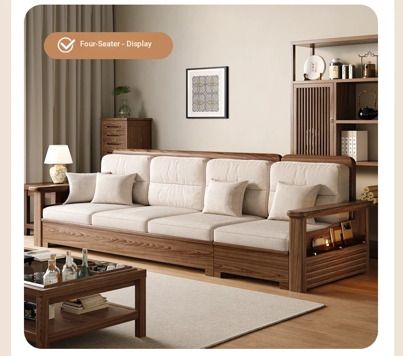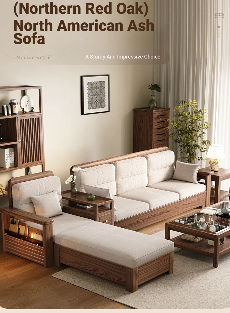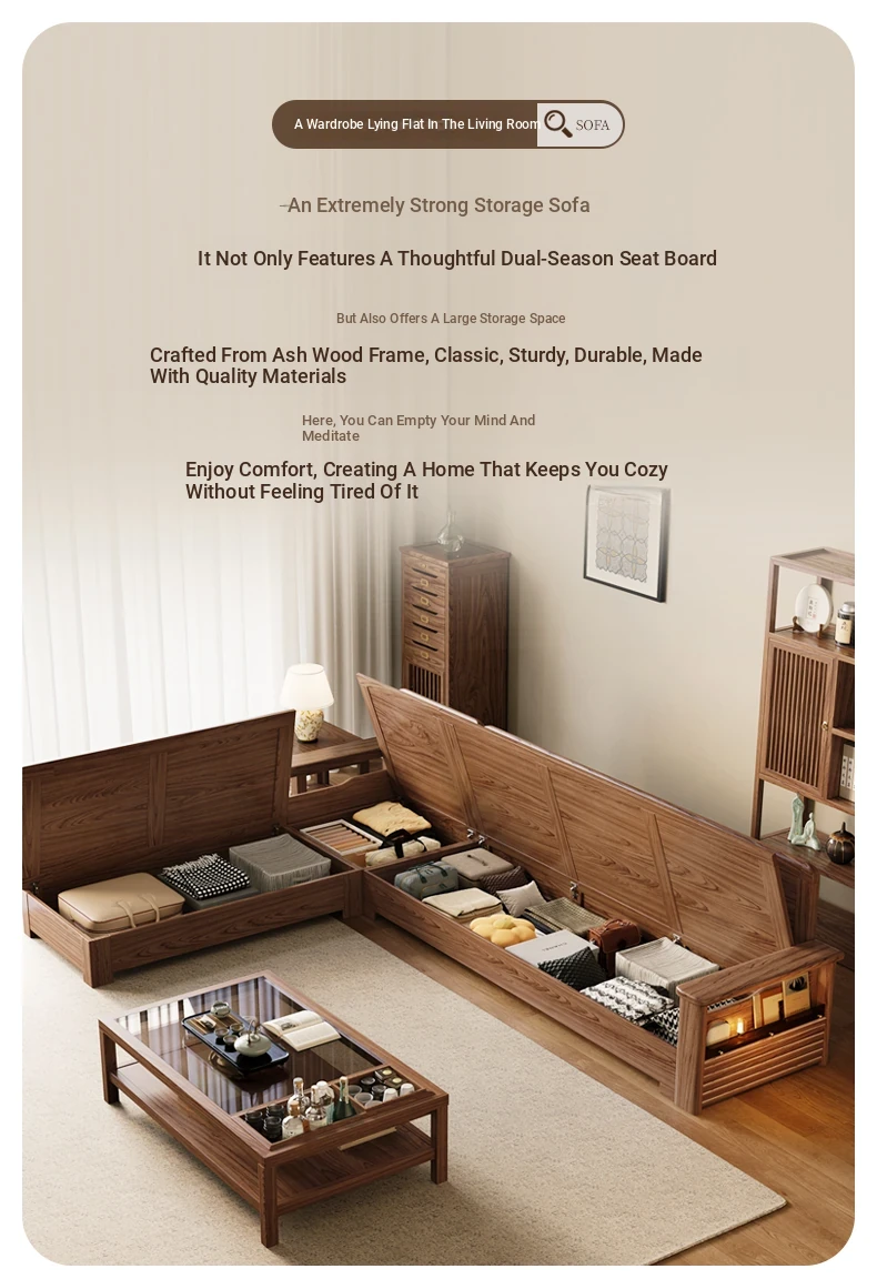Elegant New Chinese Style Solid Wood Sofa Set - Versatile Winter/Summer Use for Small Spaces - Affordable Ash Wood Storage Sofa for Your Living Room