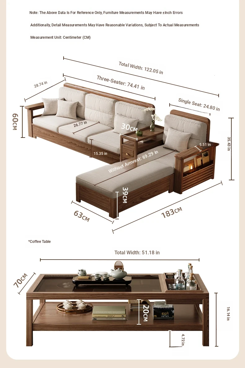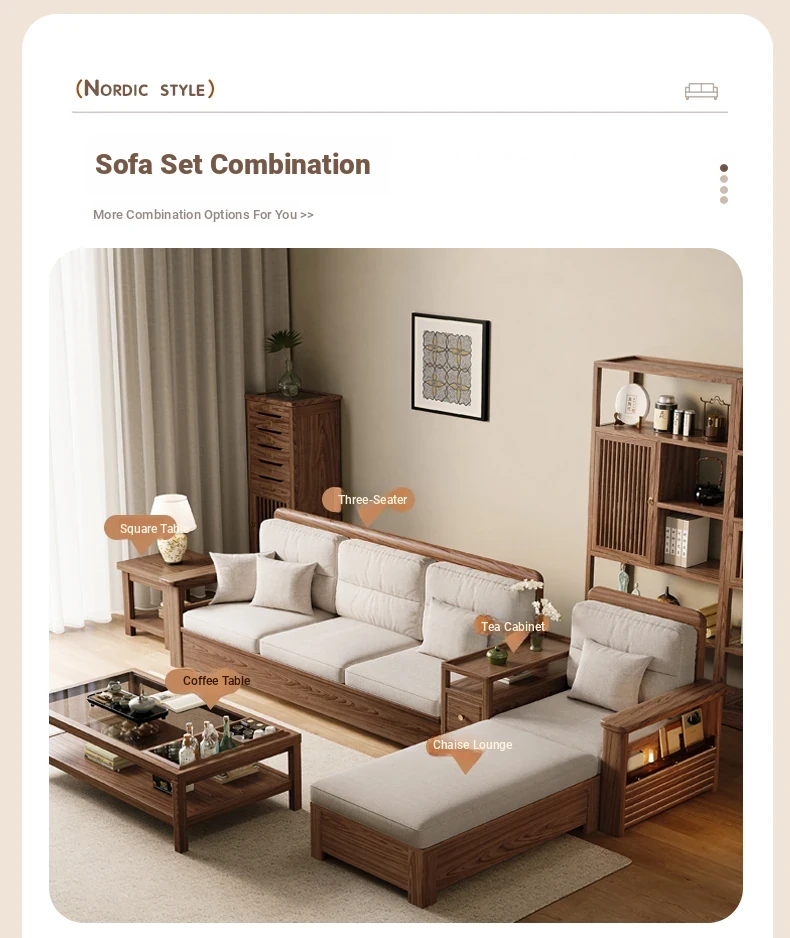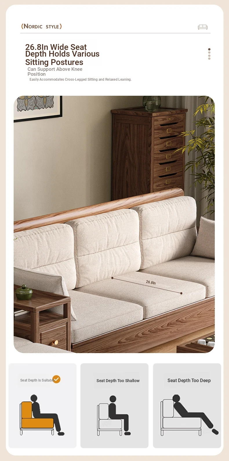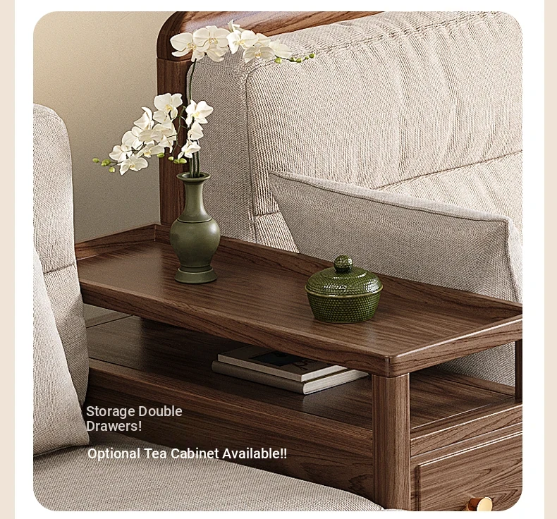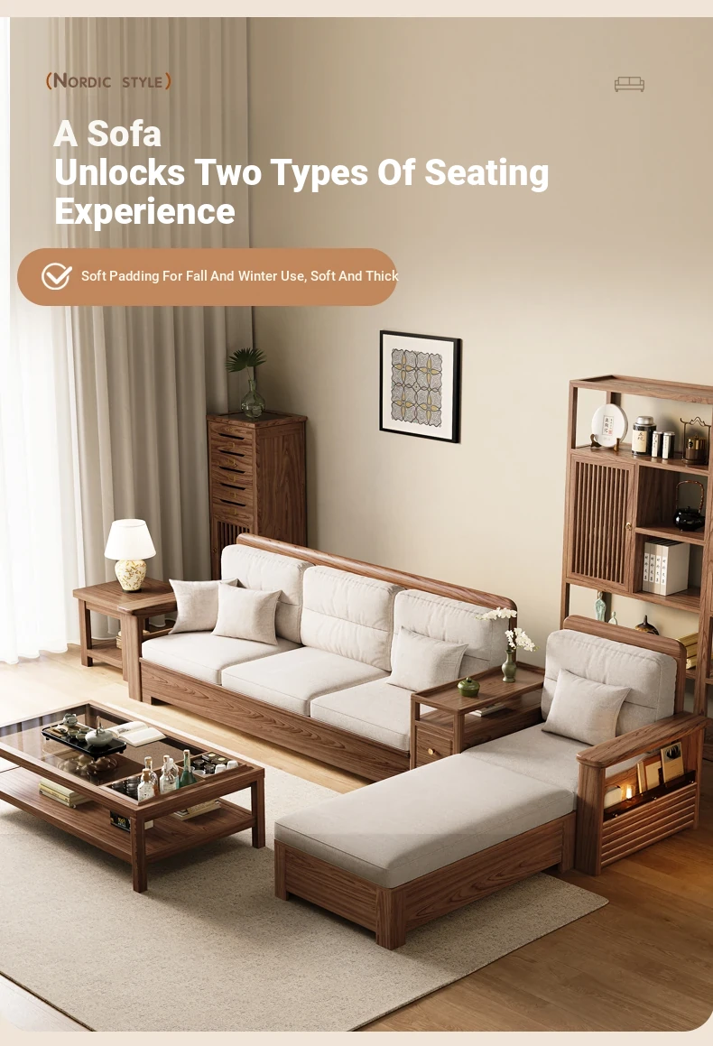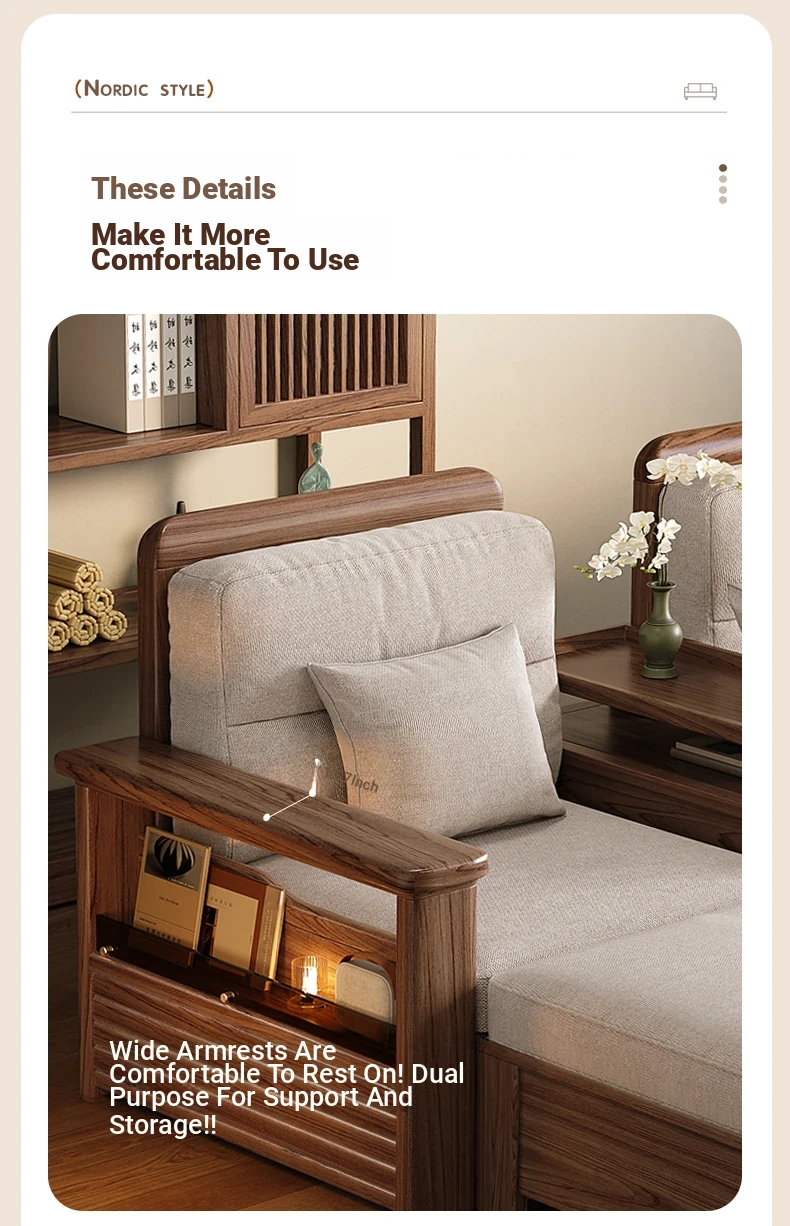 Elegant New Chinese Style Solid Wood Sofa Set - Versatile Winter/Summer Use for Small Spaces - Affordable Ash Wood Storage Sofa for Your Living Room