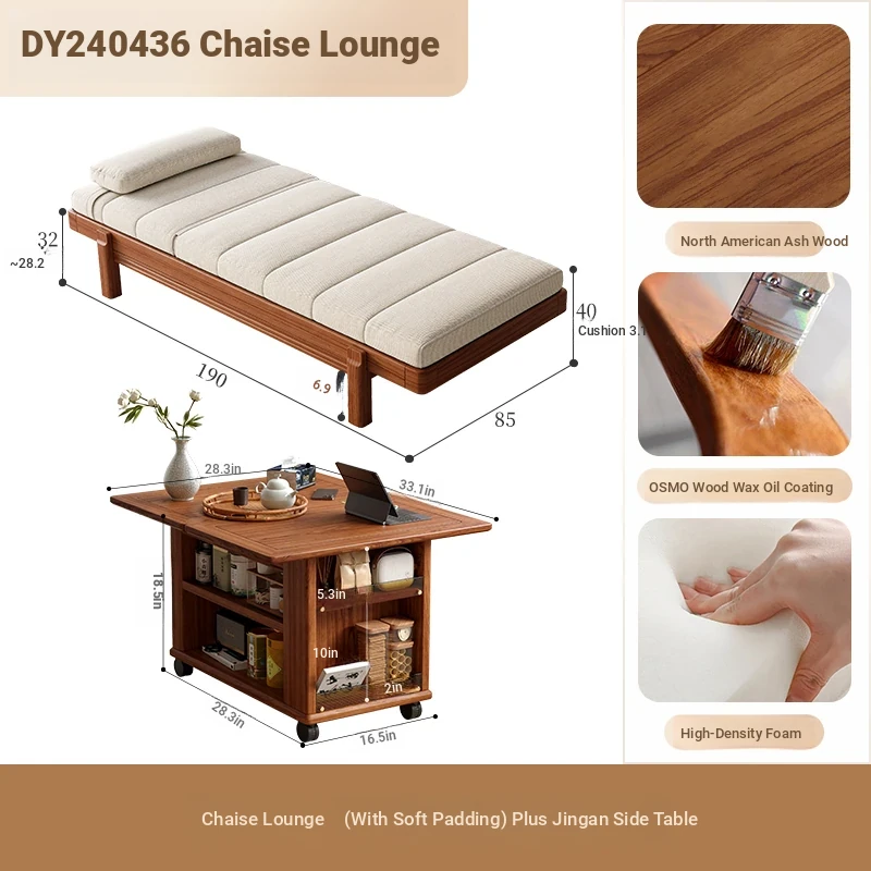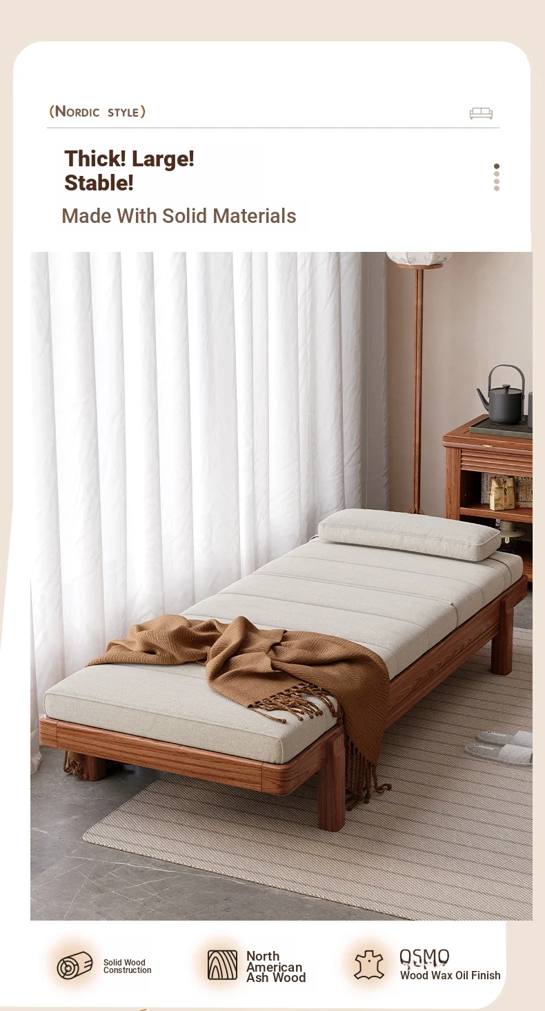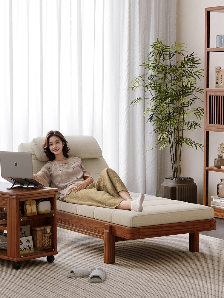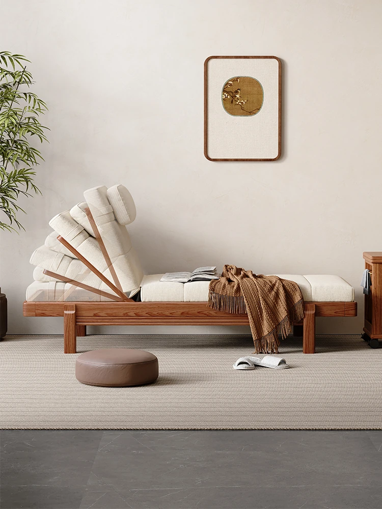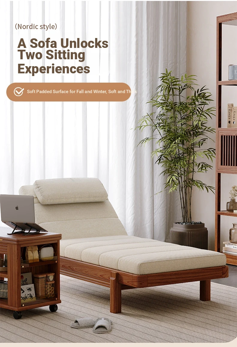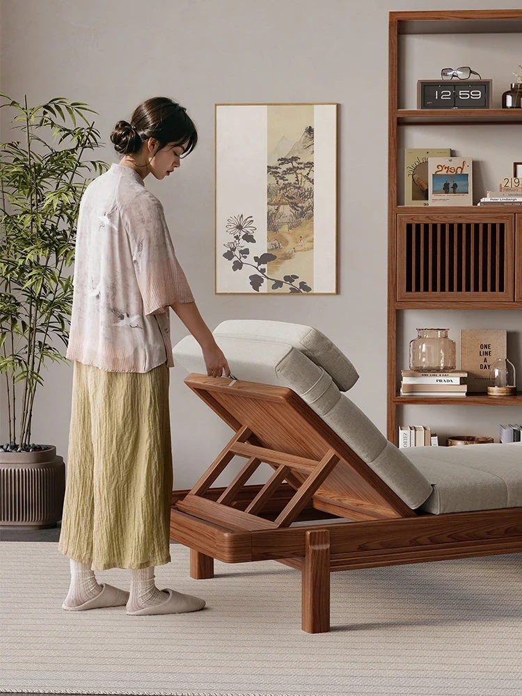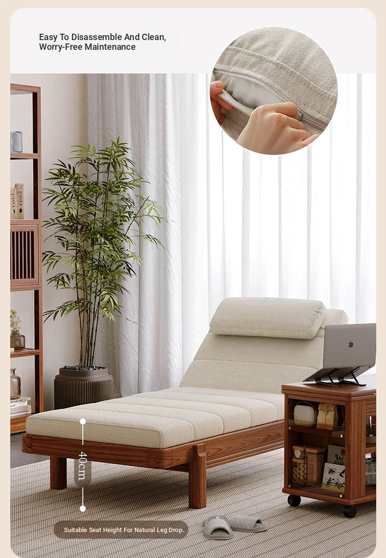 Foldable Solid Wood Chaise Lounge in Ash Wood - New Chinese Style Sofa Bed for Living Room, Minimalist Design, Dual-Use for Winter and Summer, Perfect Beauty Resting Sofa