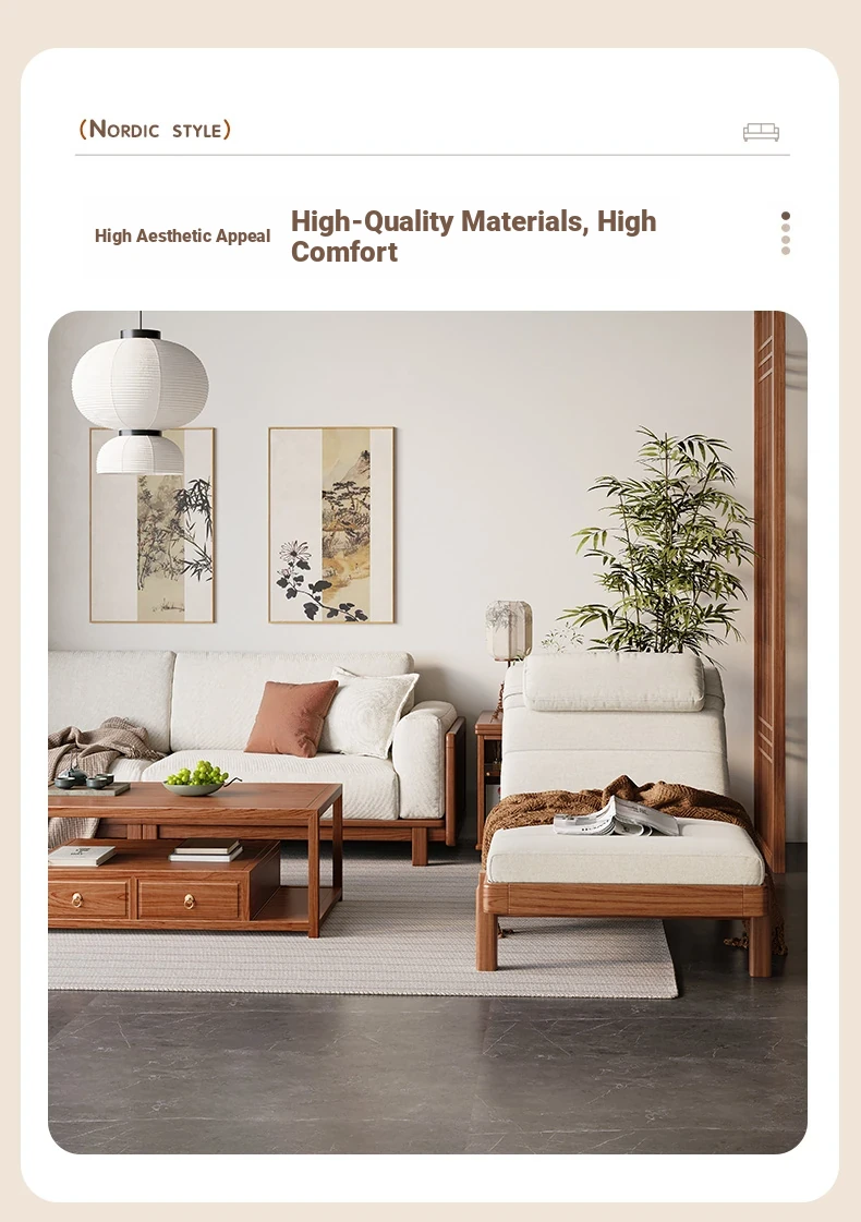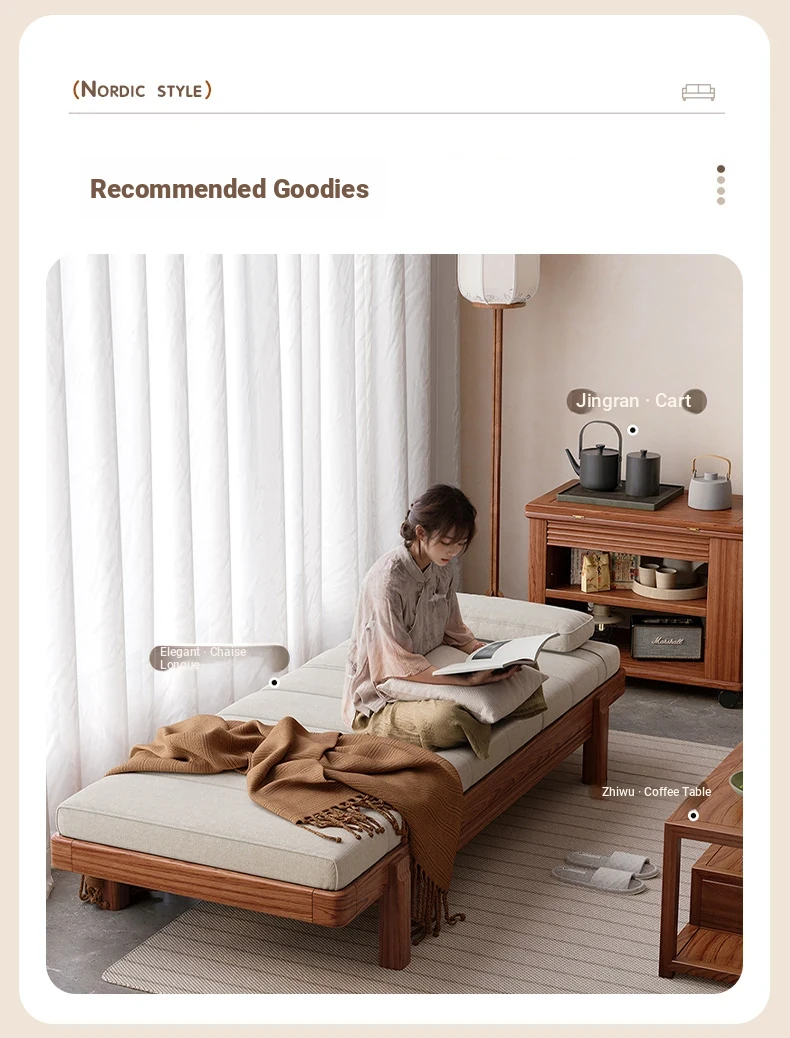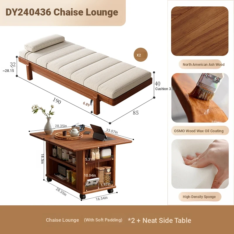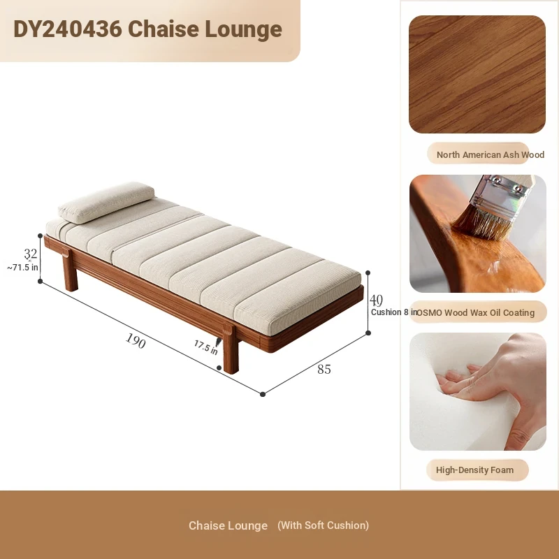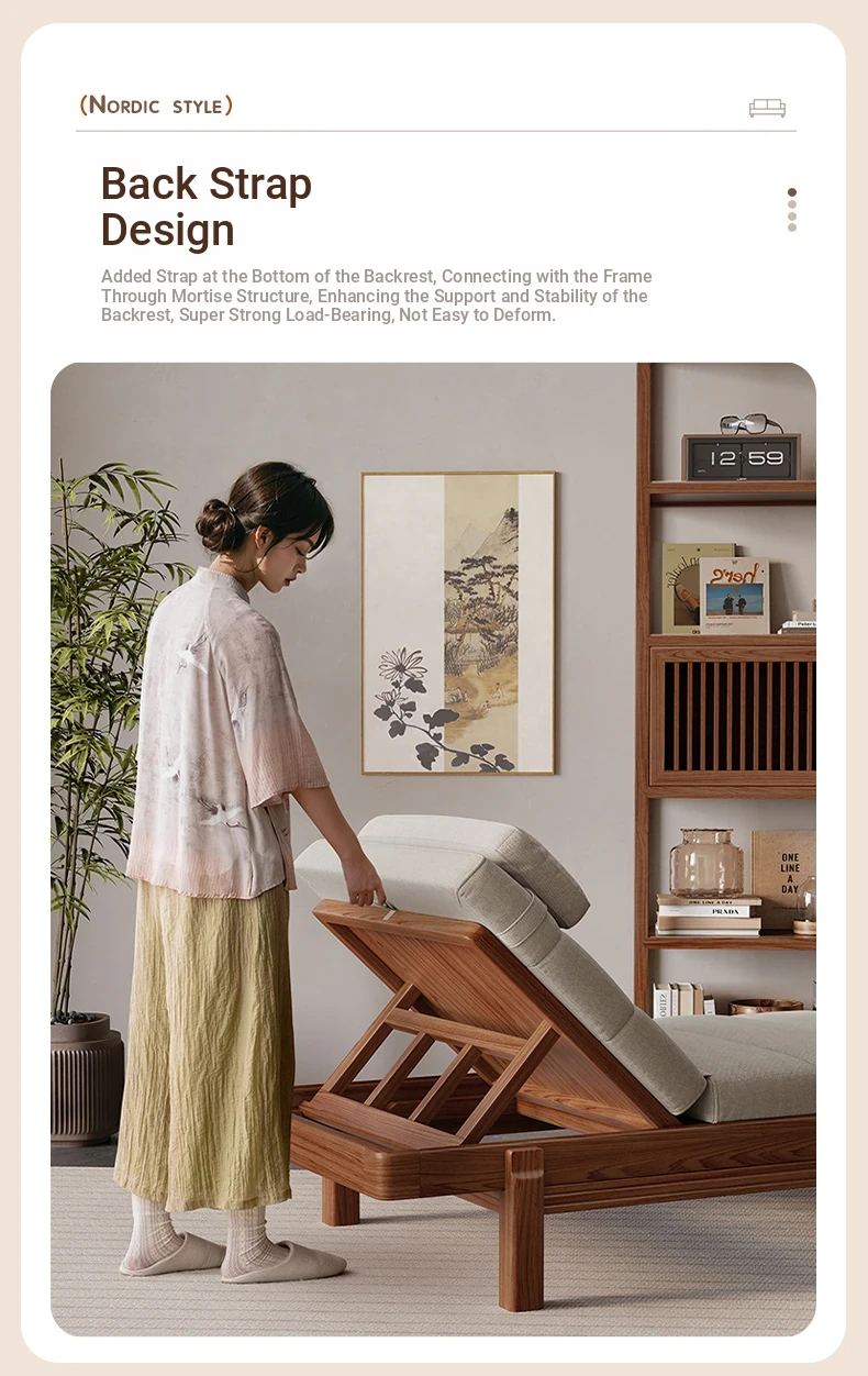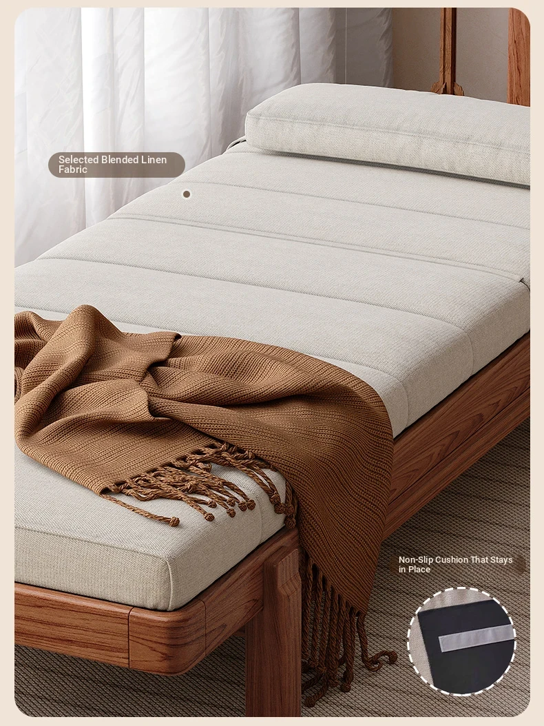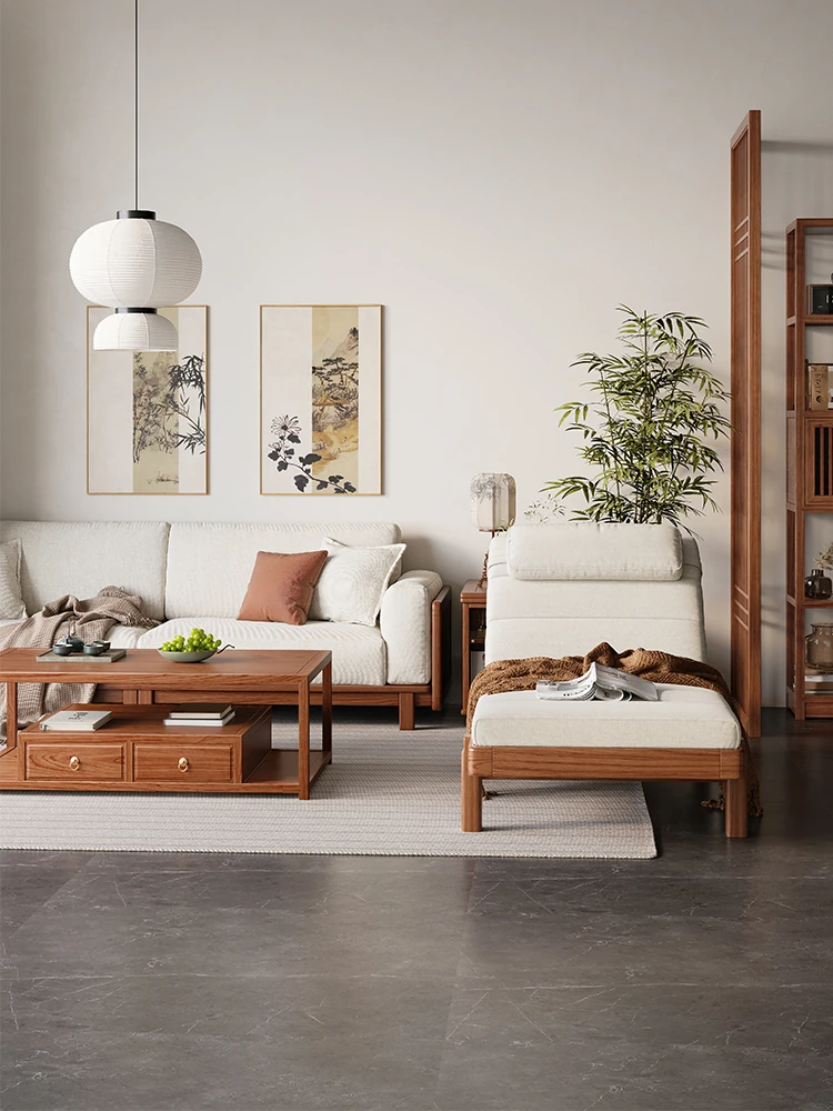 Foldable Solid Wood Chaise Lounge in Ash Wood - New Chinese Style Sofa Bed for Living Room, Minimalist Design, Dual-Use for Winter and Summer, Perfect Beauty Resting Sofa