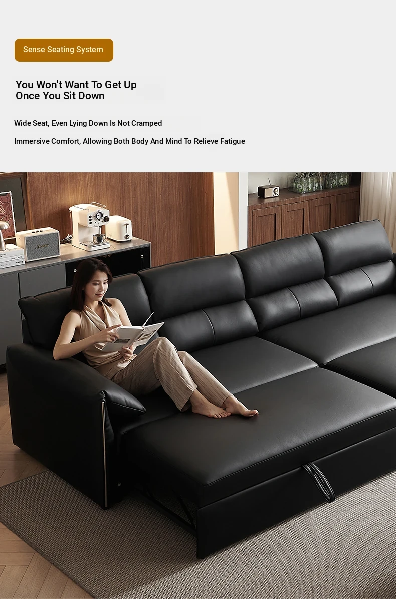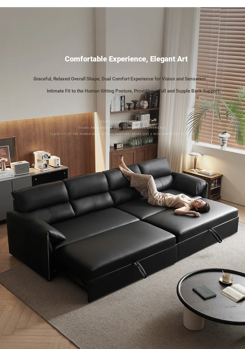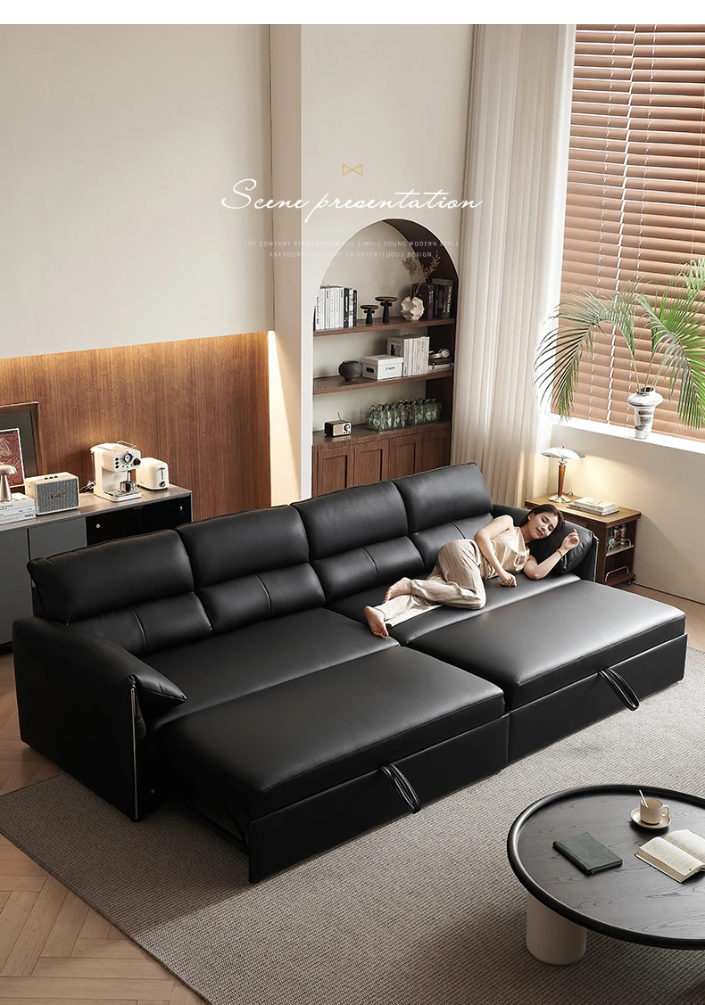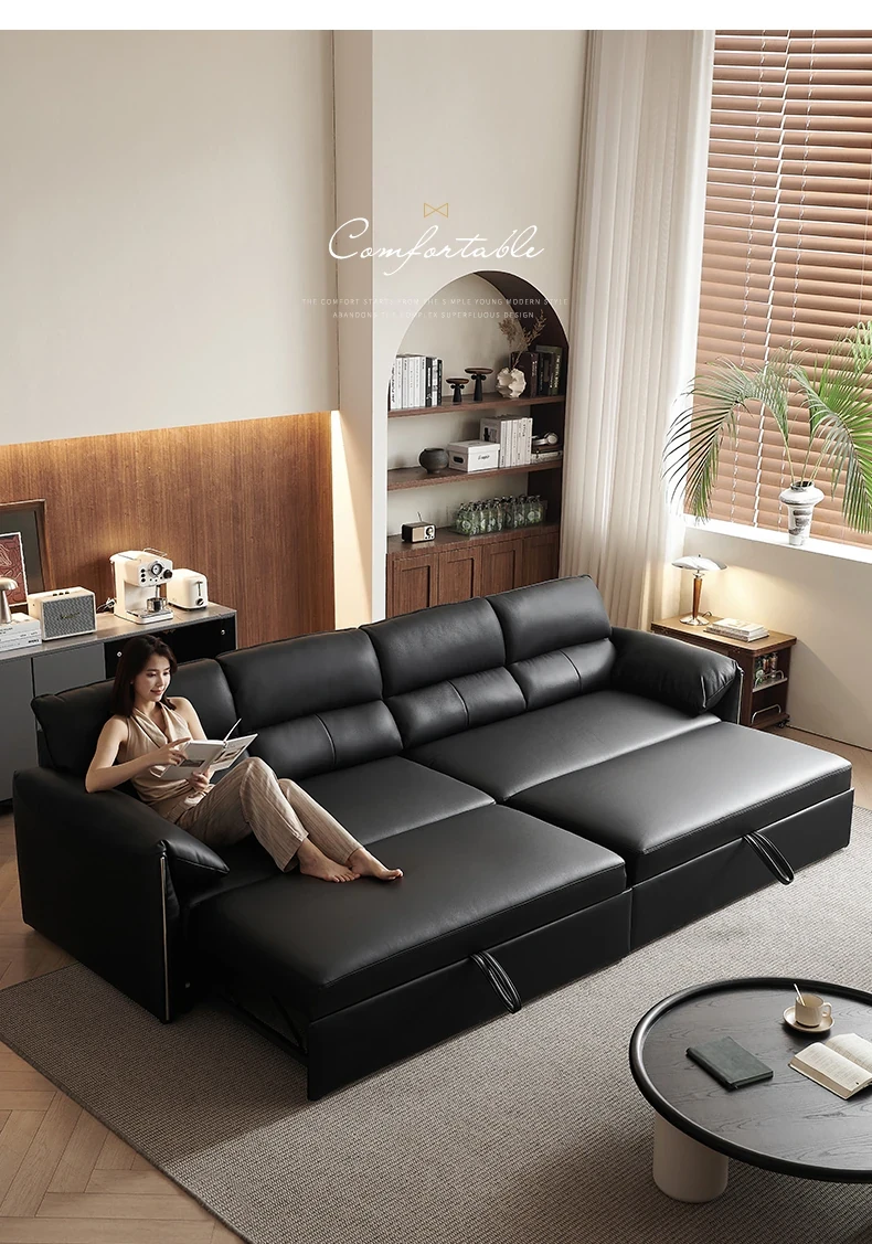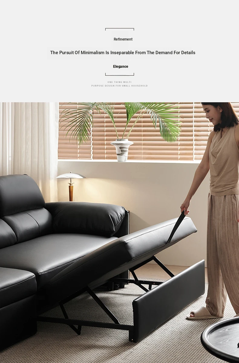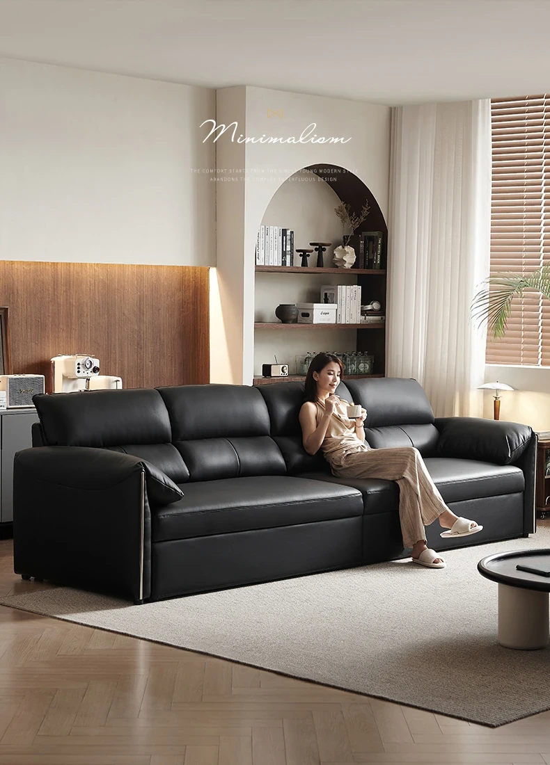 Italian Minimalist Genuine Leather Sofa - Versatile Expandable Design for Modern Living Rooms, Perfect for Small Spaces, Stylish Luxury Convertible Sofa Bed