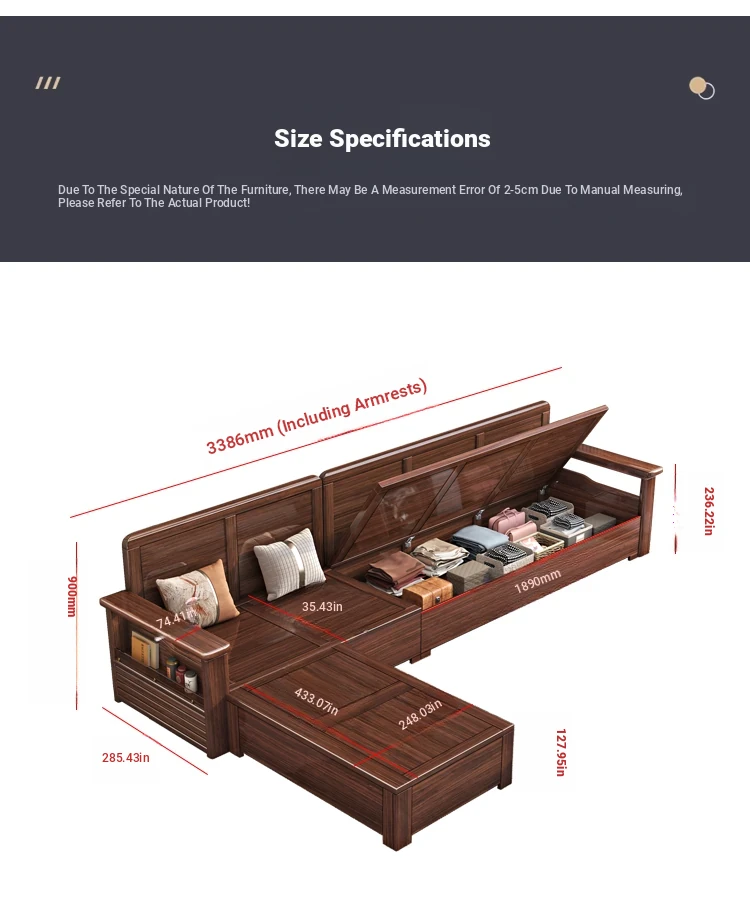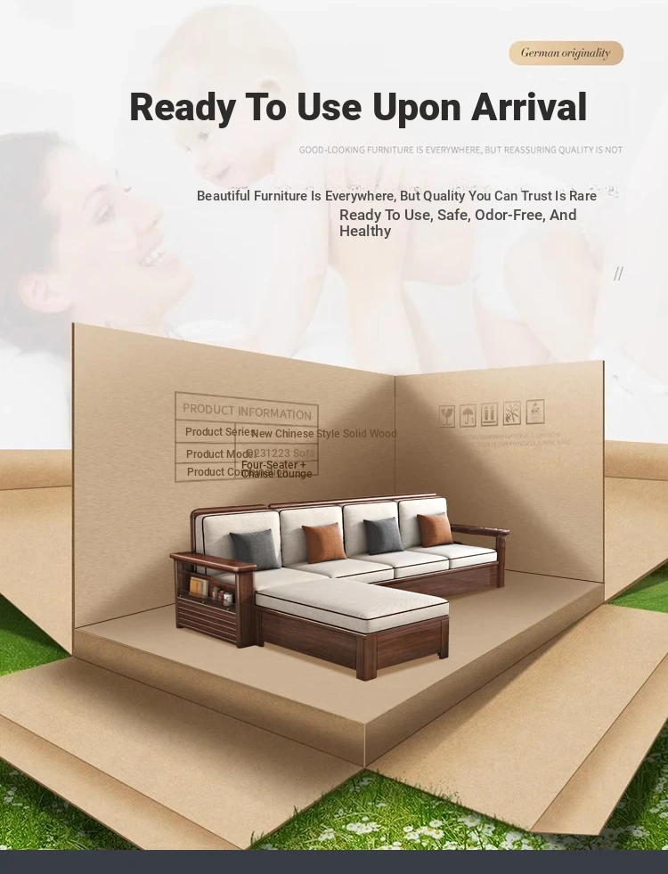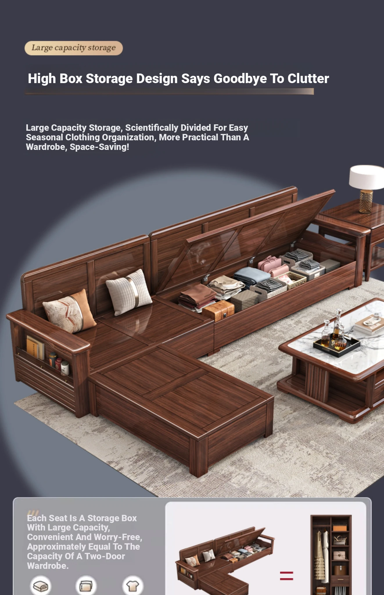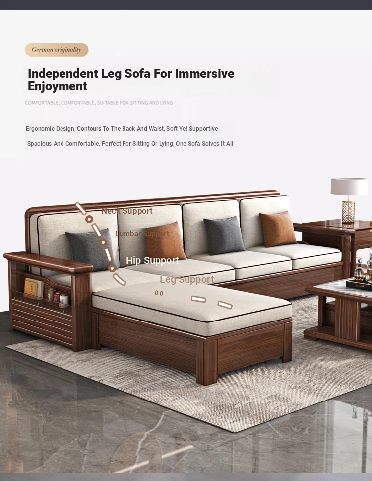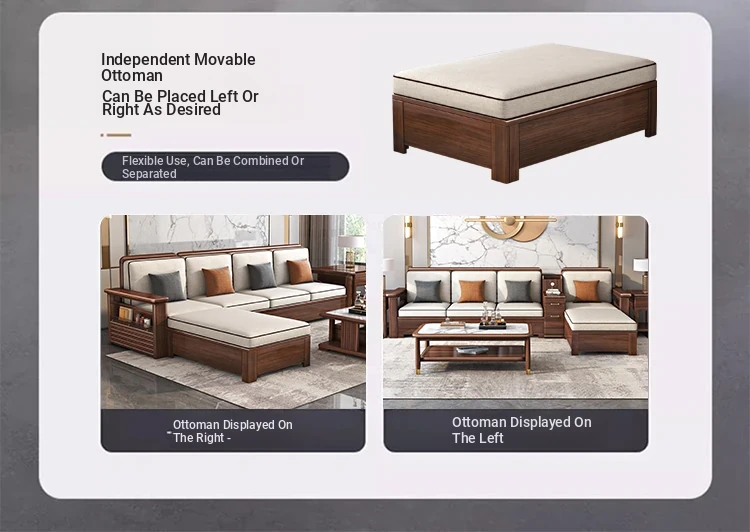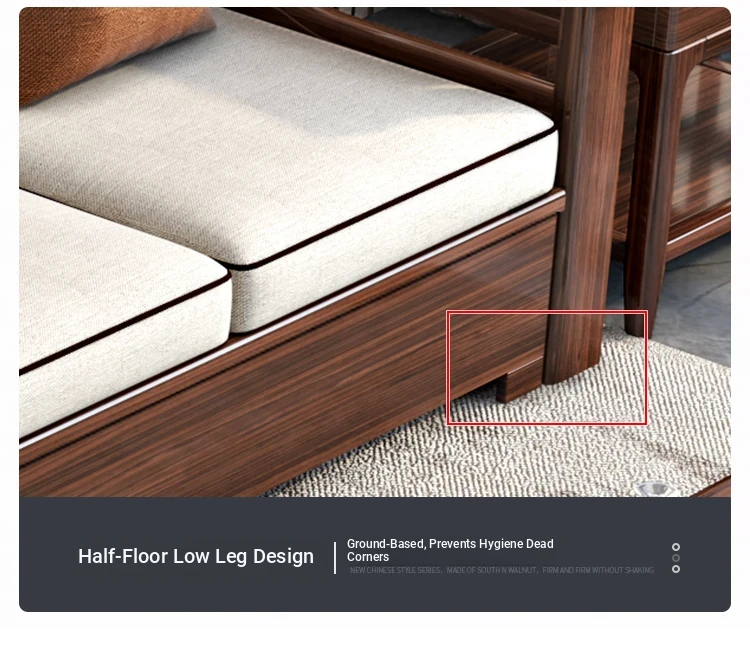 Light Luxury New Chinese Style Walnut Wood Sofa - Modern Minimalist Chaise Lounge for Small Spaces, Perfect for Year-Round Comfort with Storage Options in Living Room