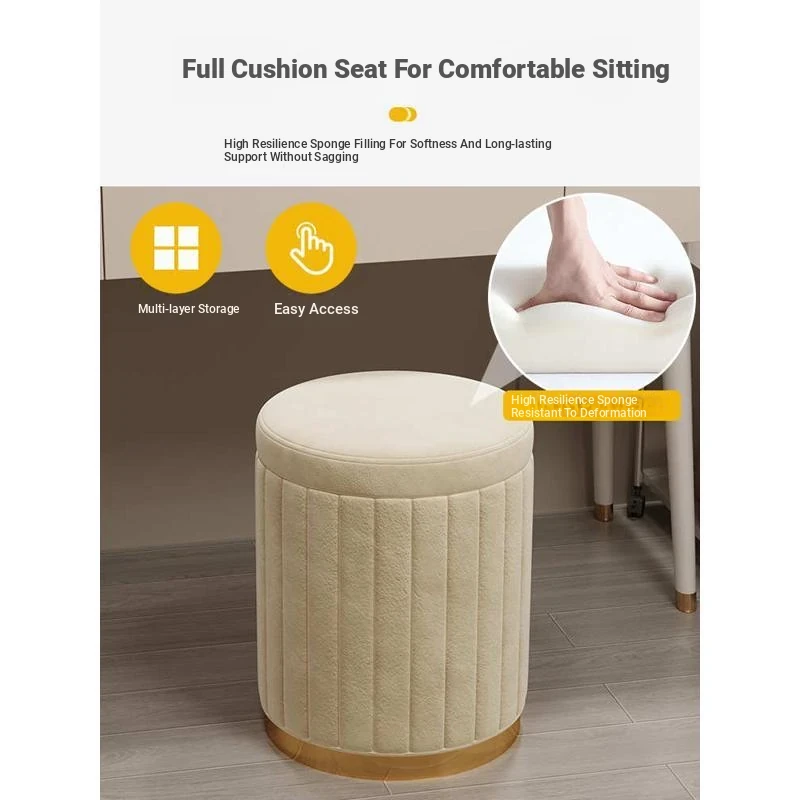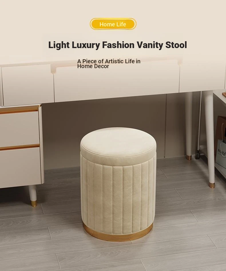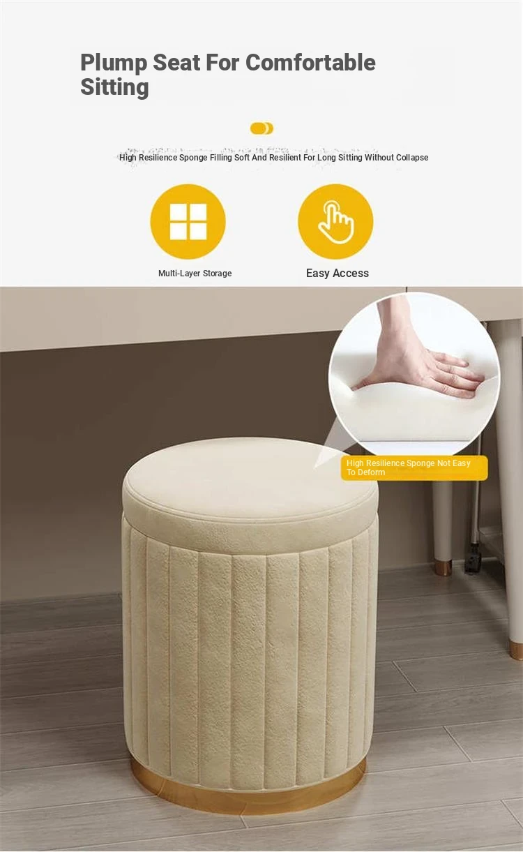 Stylish Makeup Stool for Women - Elegant Vanity Chair for Bedroom, Chic Round Makeup Seat, Perfect for Home Use, Trendy and Luxurious Design