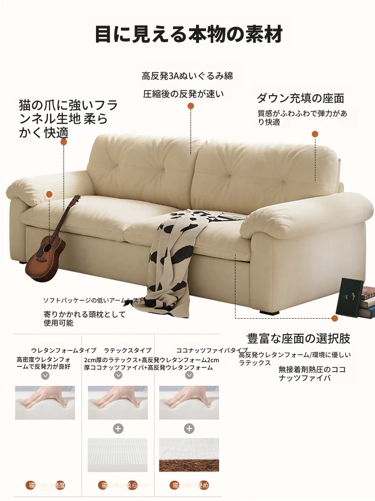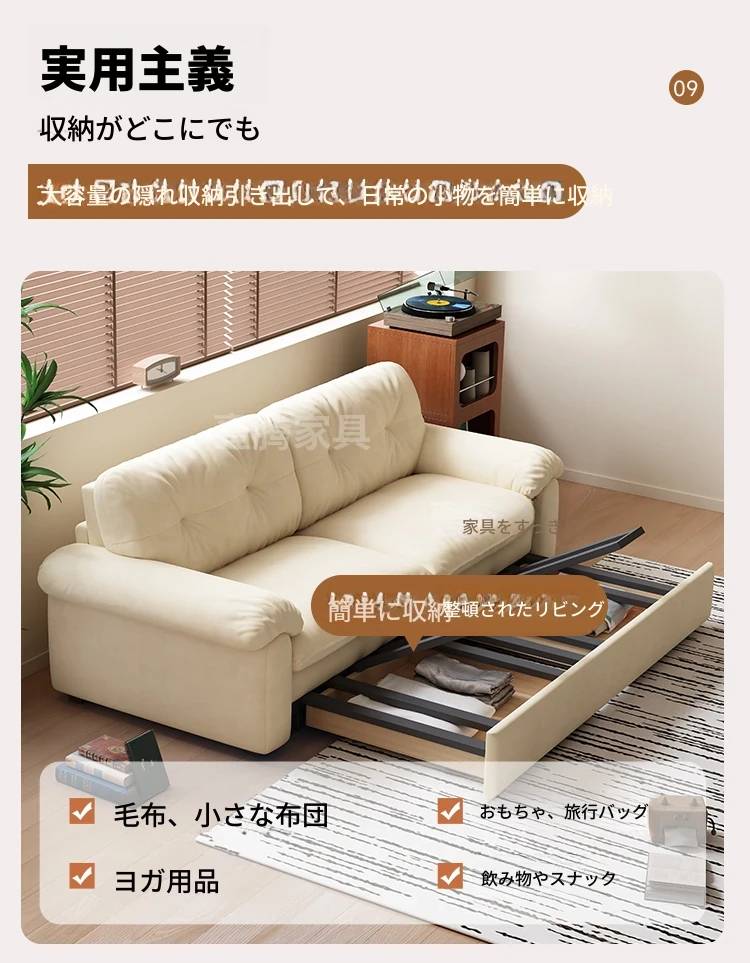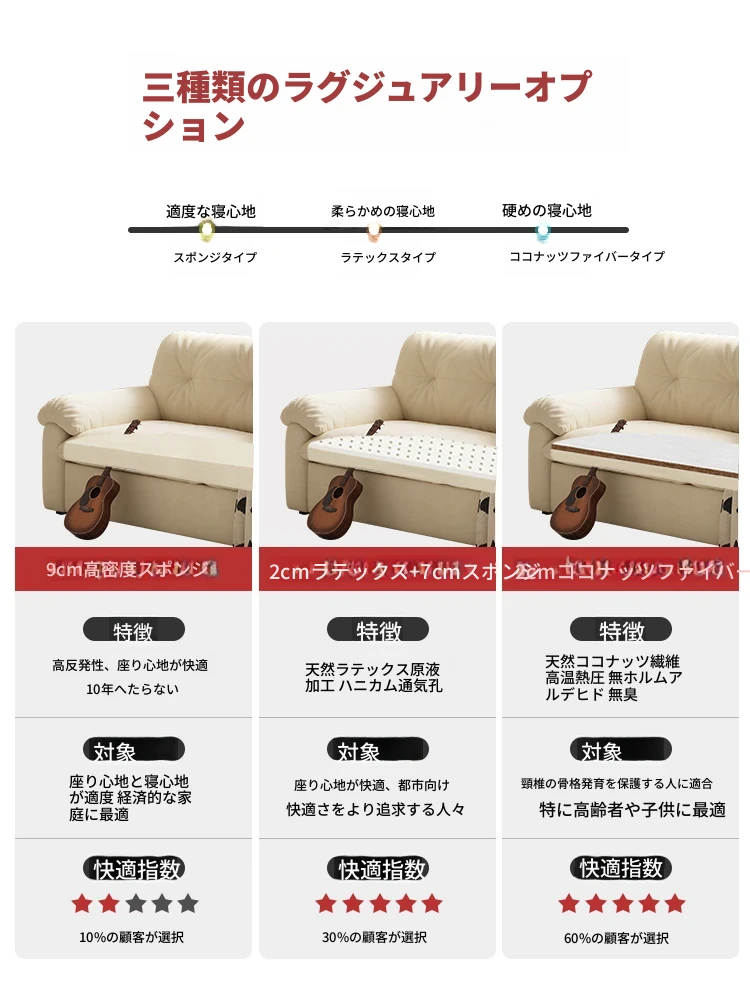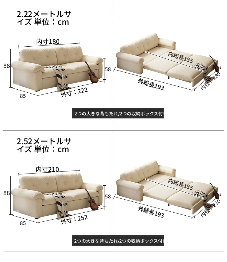 含扶手2.22メートル-快適ラテックスタイプ-収納付き