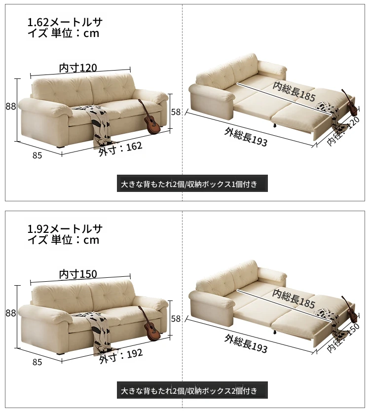 含扶手1.62メートル-快適ラテックスタイプ-収納付き