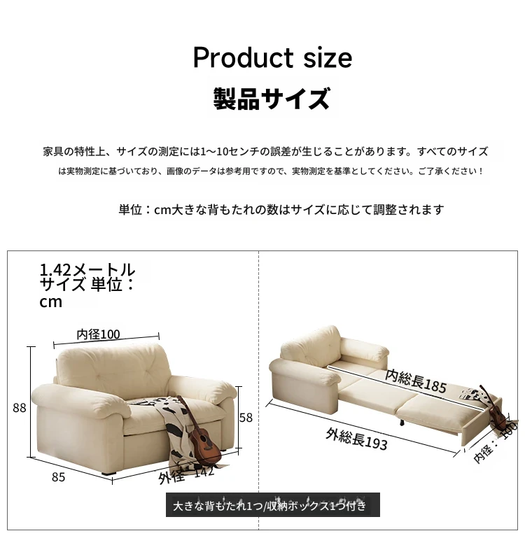 含扶手1.42メートル-背中を守るココナッツファイバータイプ-収納付き
