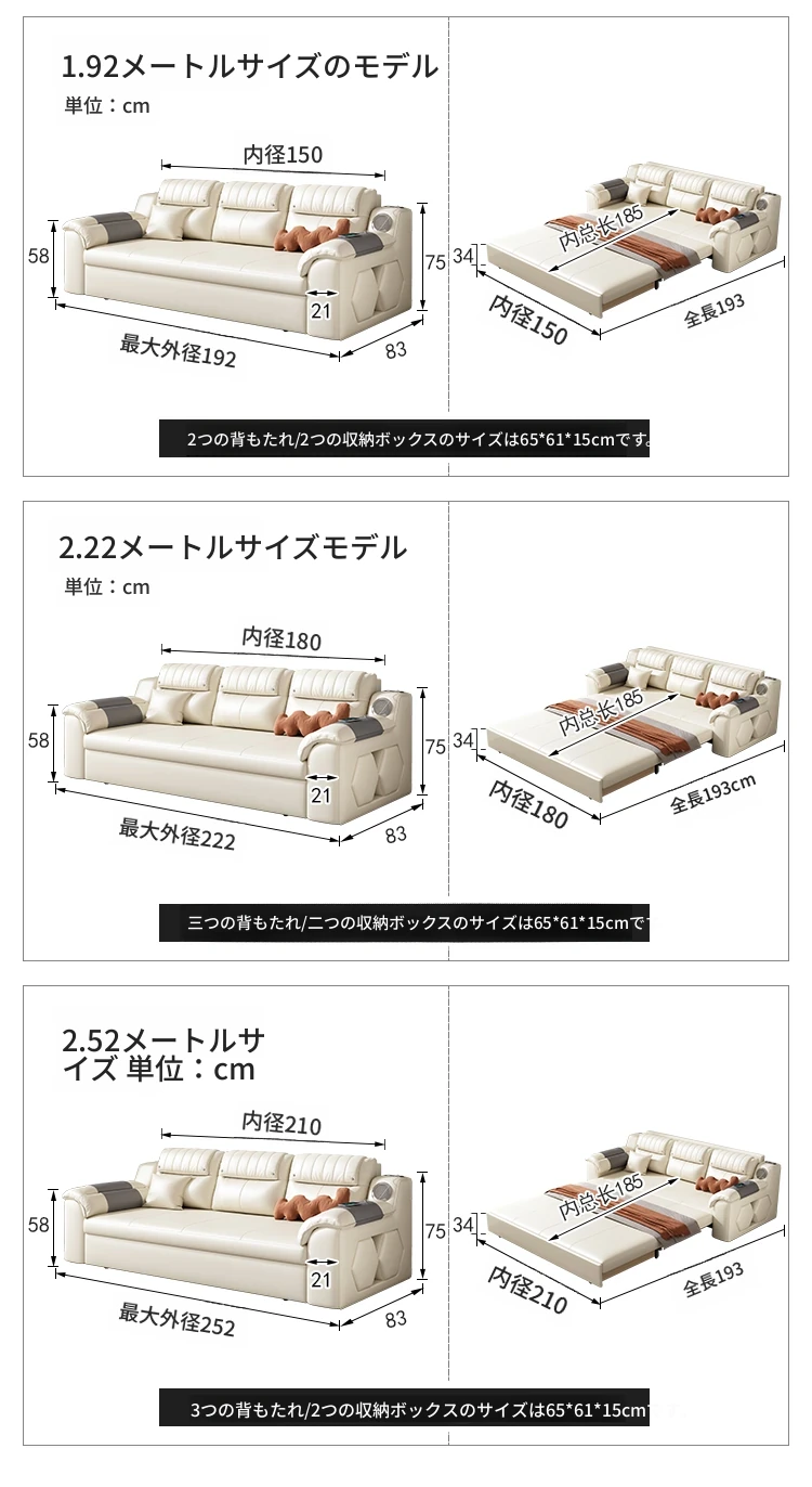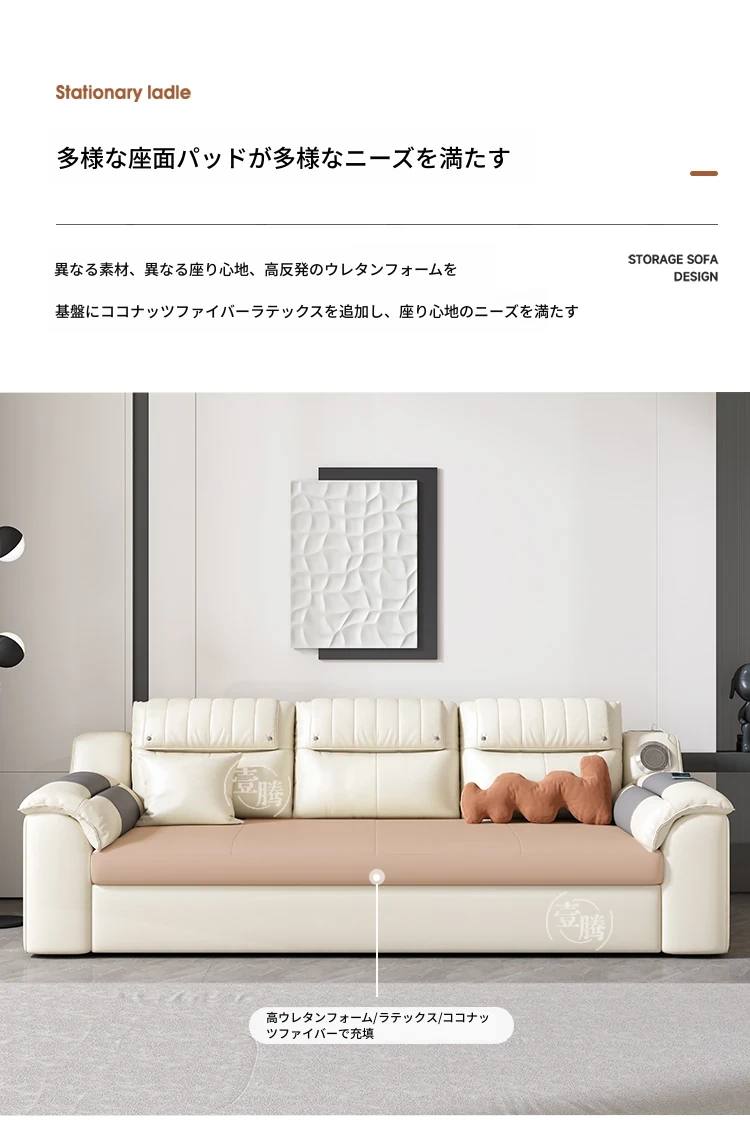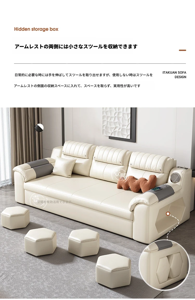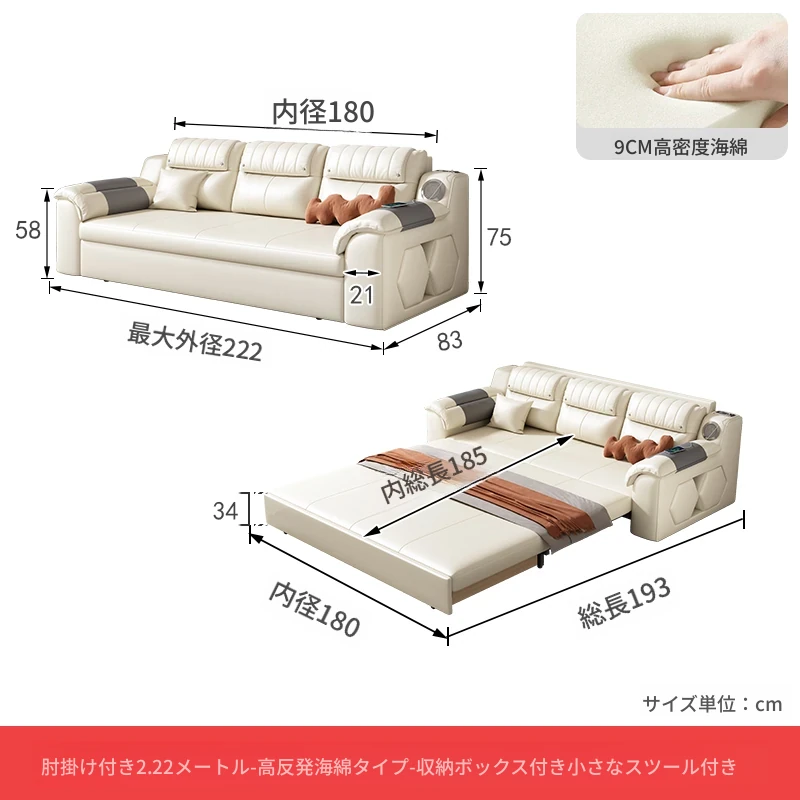 含肘掛け2.22メートル-快適ラテックスタイプ-収納ボックス付き小椅子付き