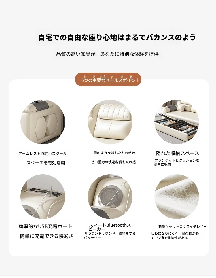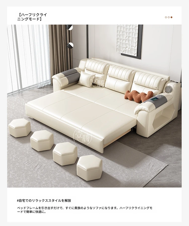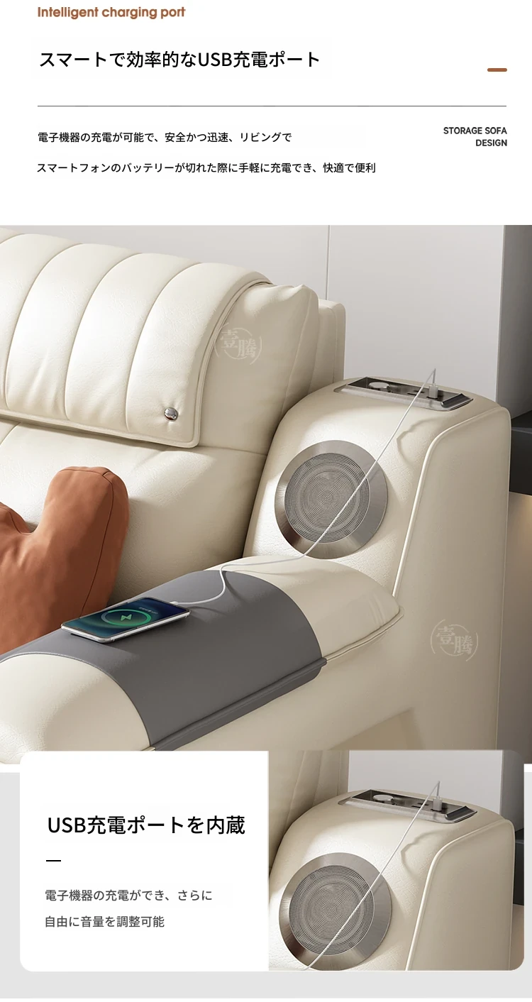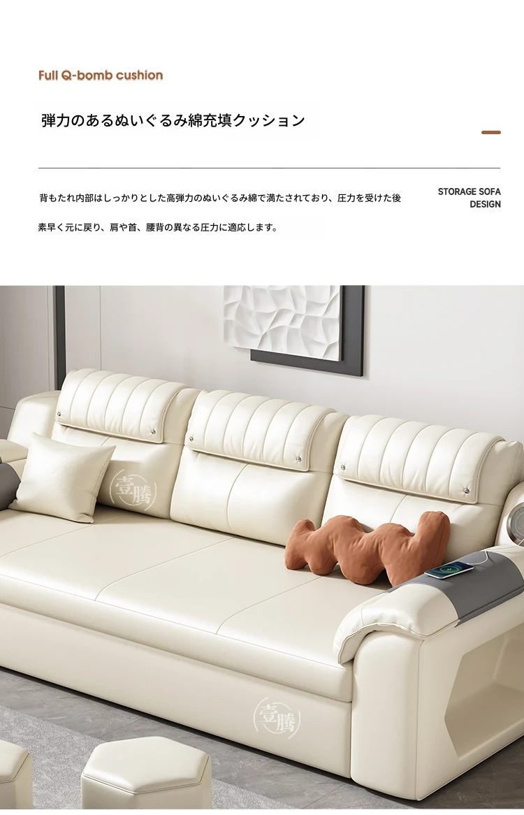 含肘掛け2.22メートル-快適ラテックスタイプ-収納ボックス付き小椅子付き