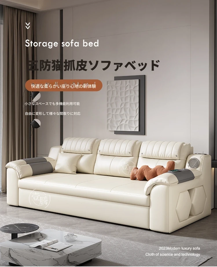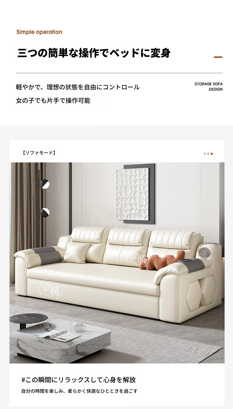 2025年新作!多機能折りたたみソファベッド - スタイリッシュな収納付き、小スペース向け、リビングルームや寝室に最適!簡単に洗える高級感あふれるデザイン。快適な空間を演出します!