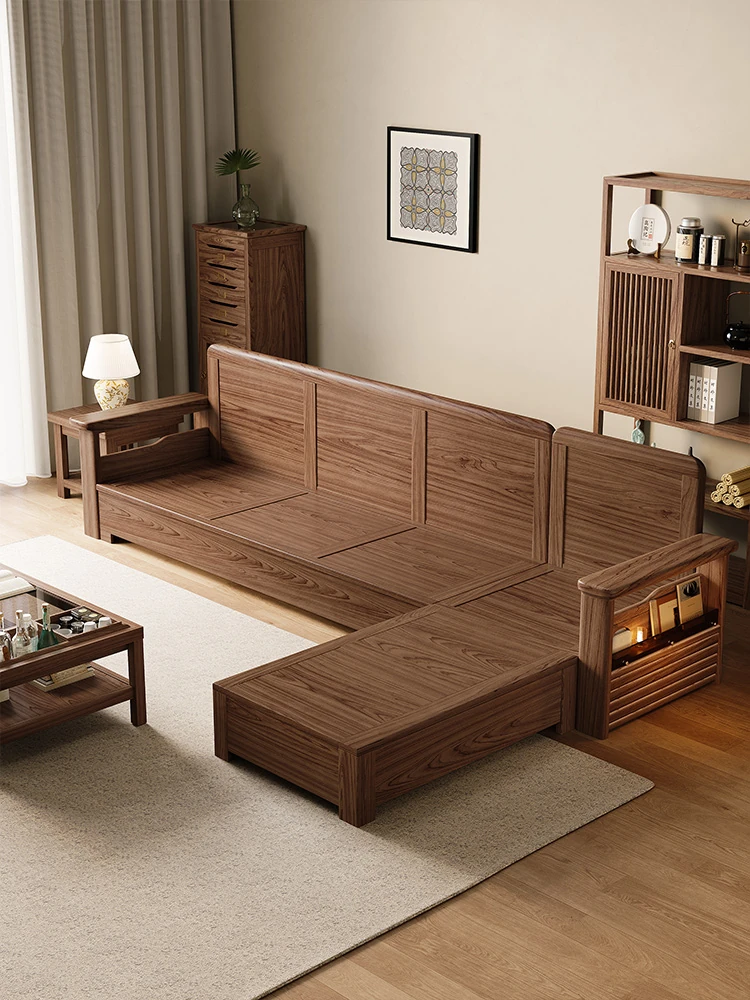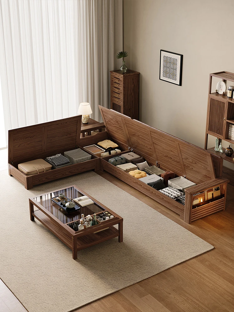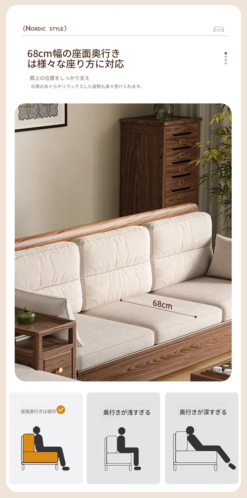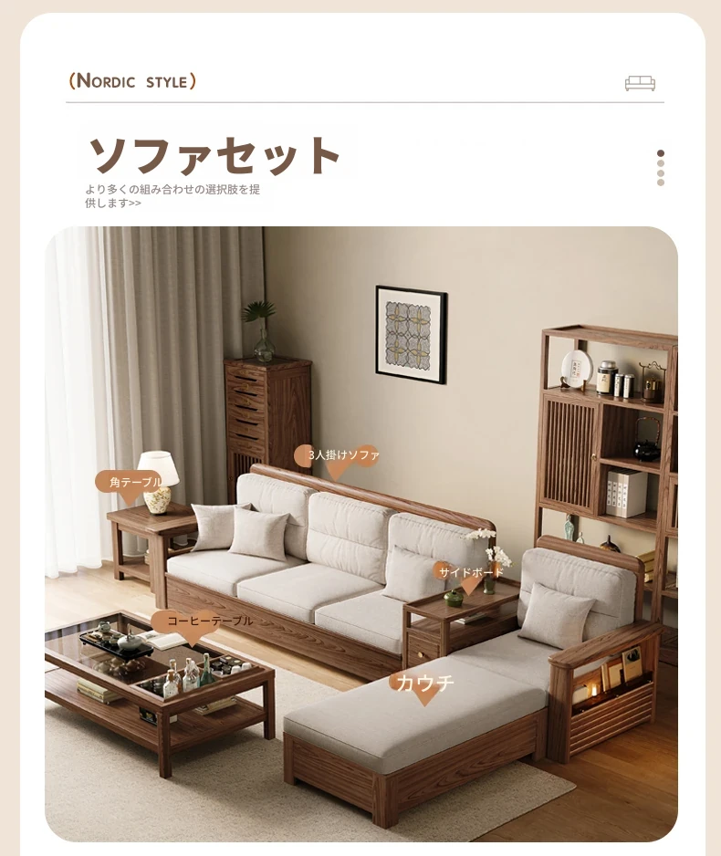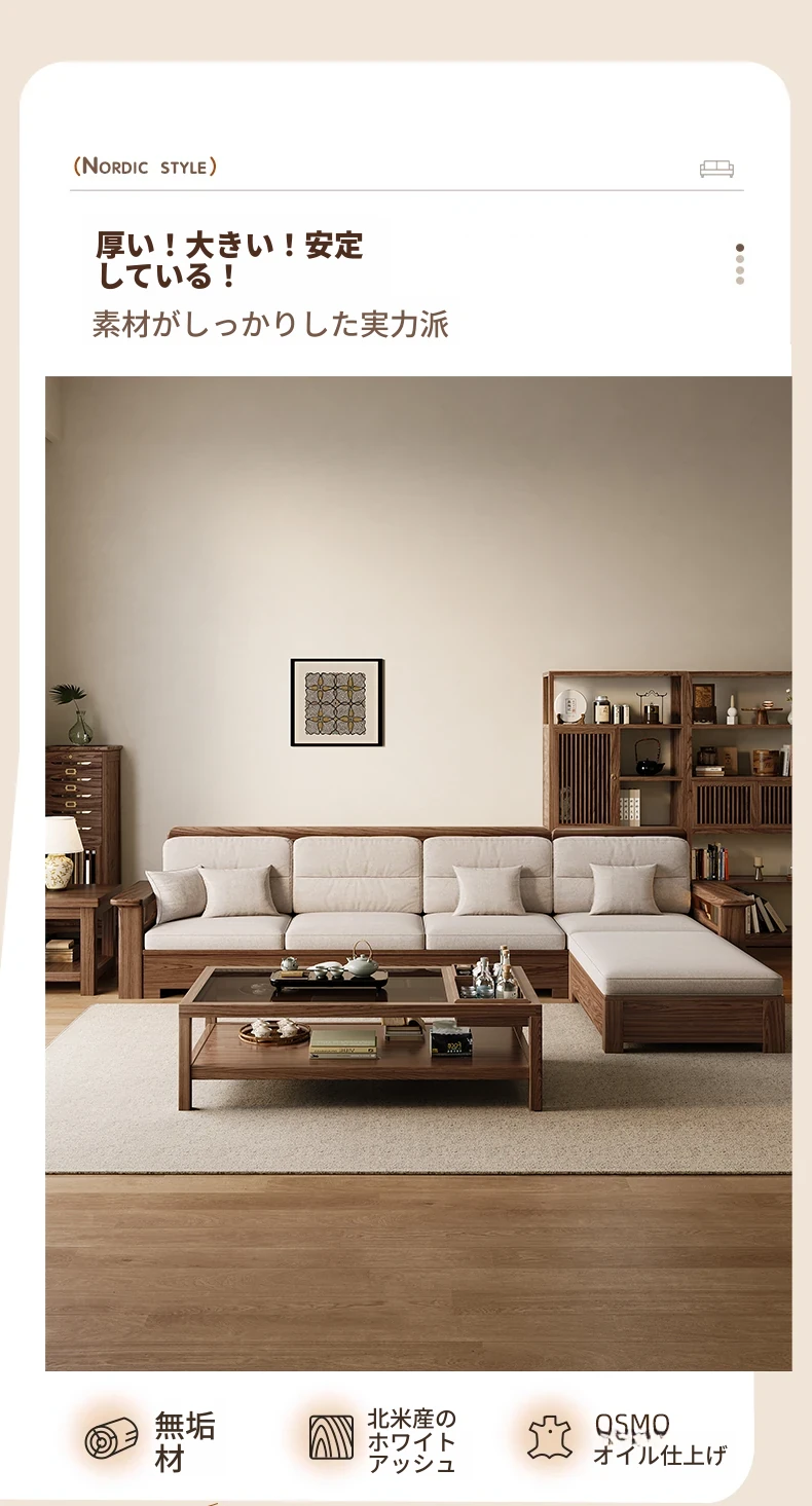新中式スタイルの無垢材使用!冬夏両用のコンパクトソファセット。経済的なホワイトアッシュ材の収納ソファで、狭いスペースでもおしゃれに快適なリビングを実現!
