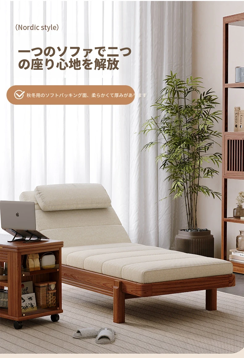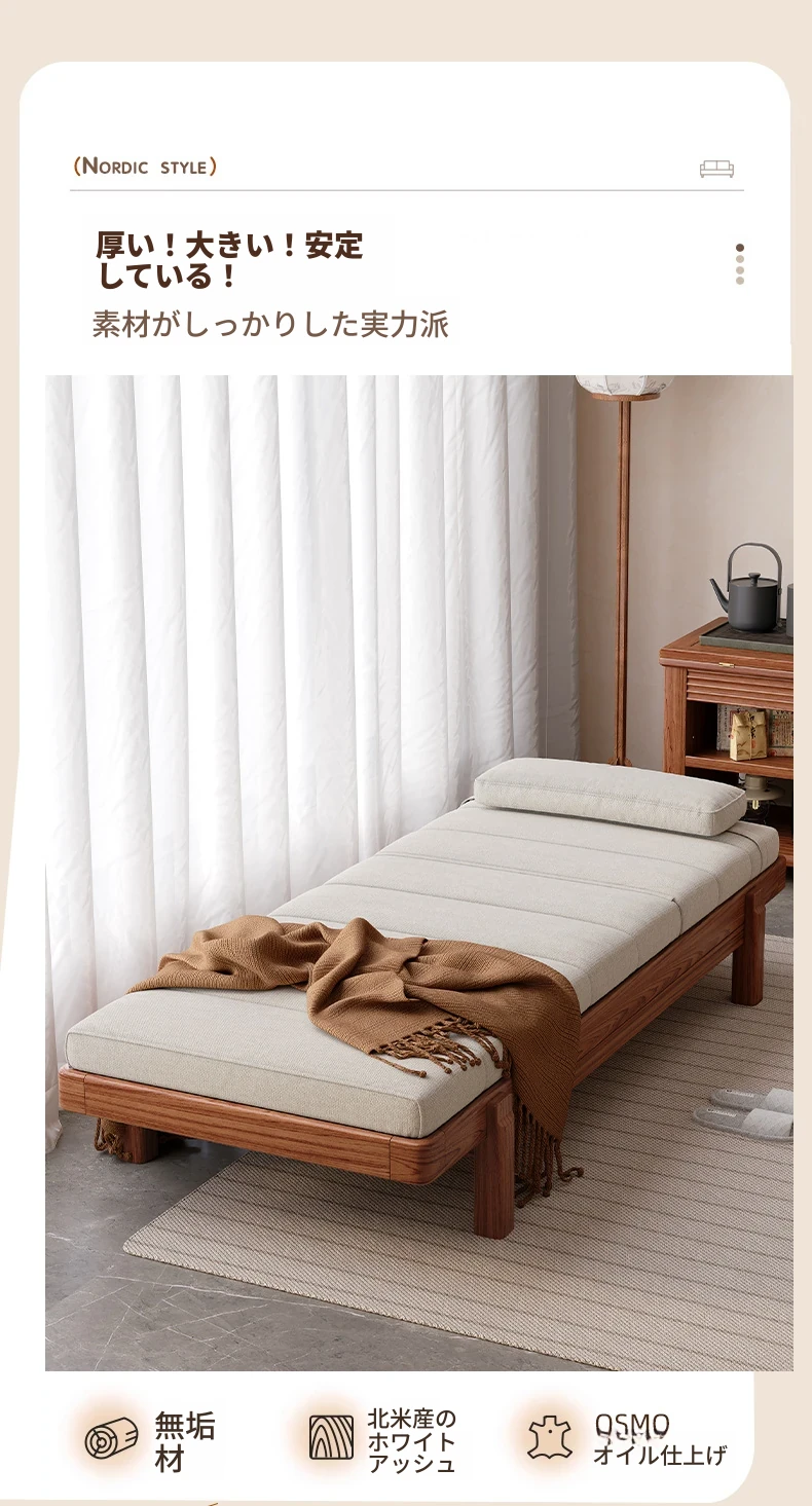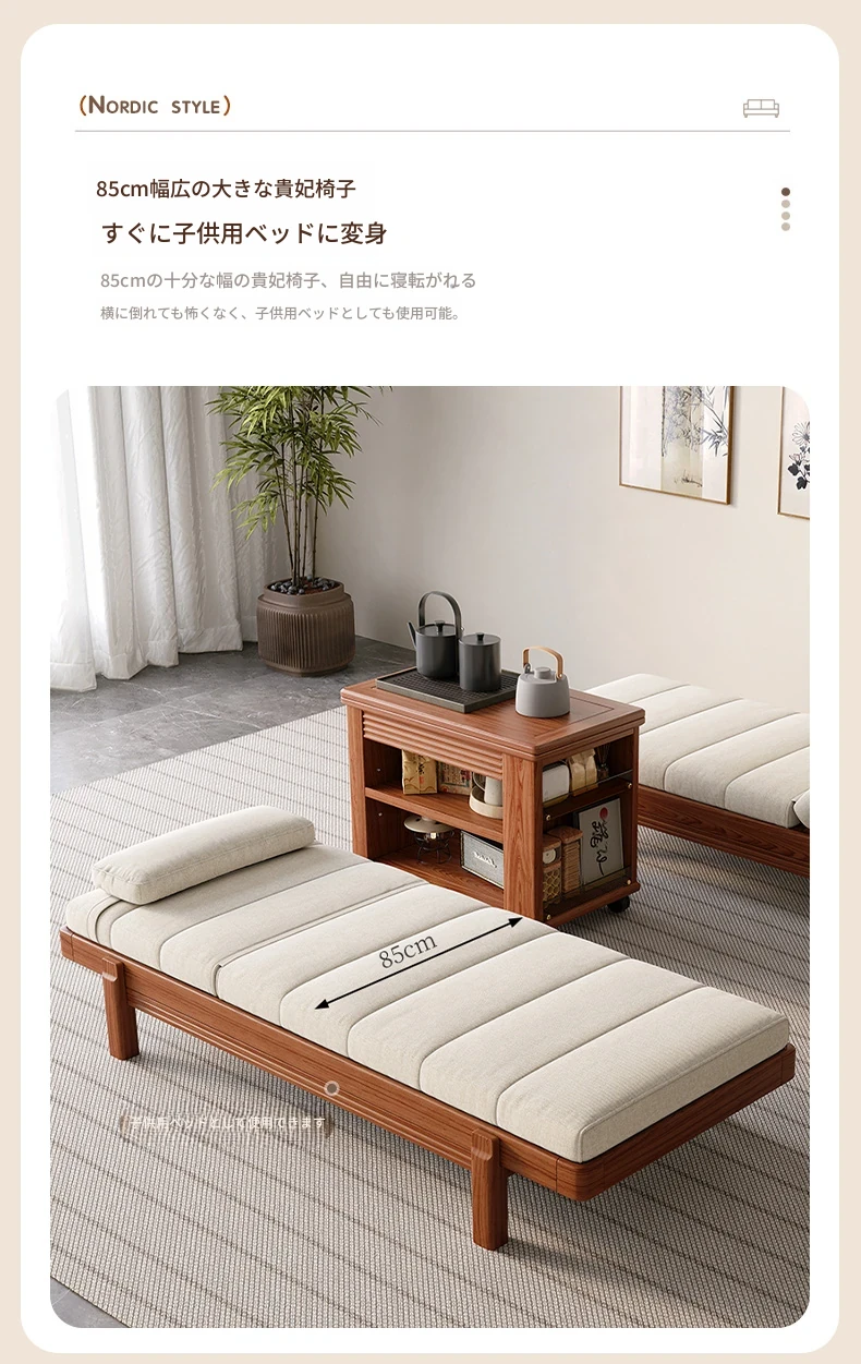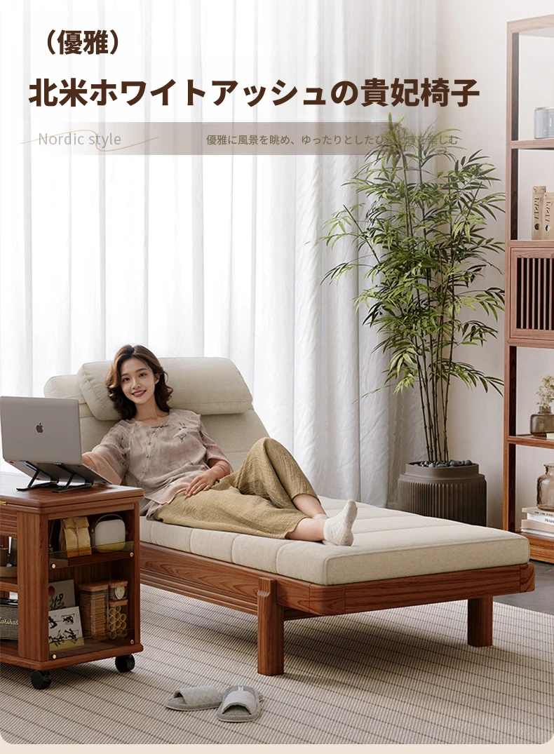 折りたたみ可能な無垢材の貴妃ソファベッド - ホワイトアッシュ製、新中式デザイン、シンプルでスタイリッシュ。冬も夏も快適に使える美人榻。リビングルームにぴったりのアイテムです!