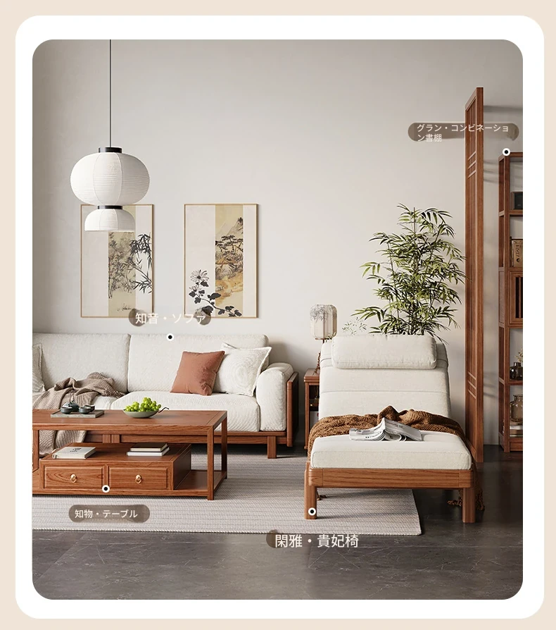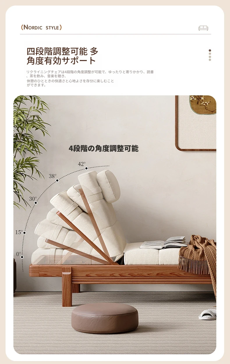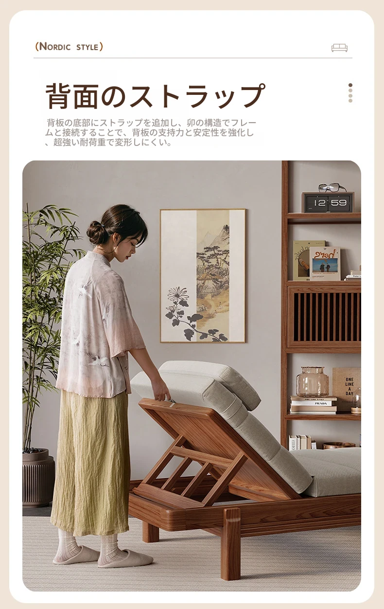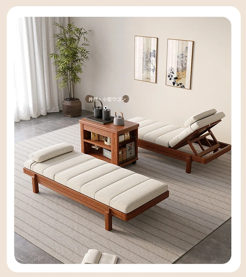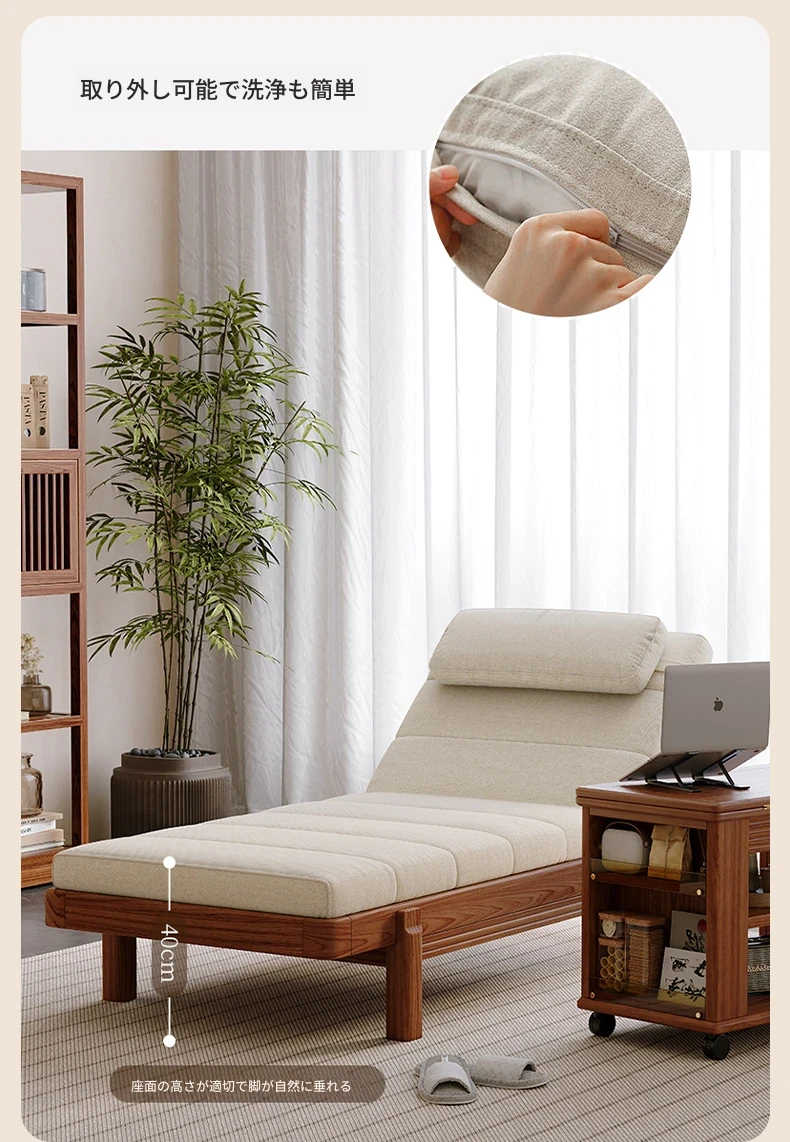 折りたたみ可能な無垢材の貴妃ソファベッド - ホワイトアッシュ製、新中式デザイン、シンプルでスタイリッシュ。冬も夏も快適に使える美人榻。リビングルームにぴったりのアイテムです!