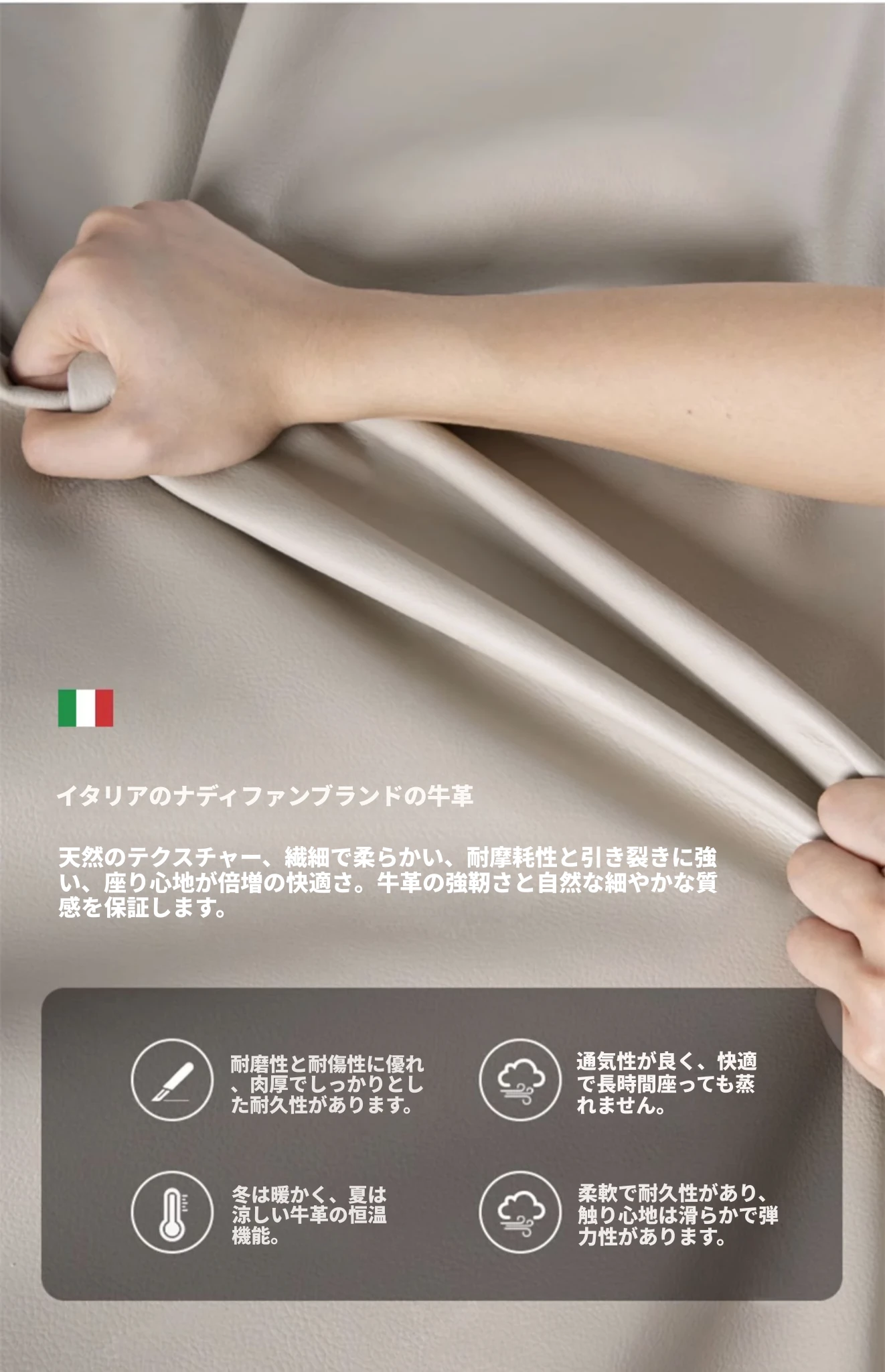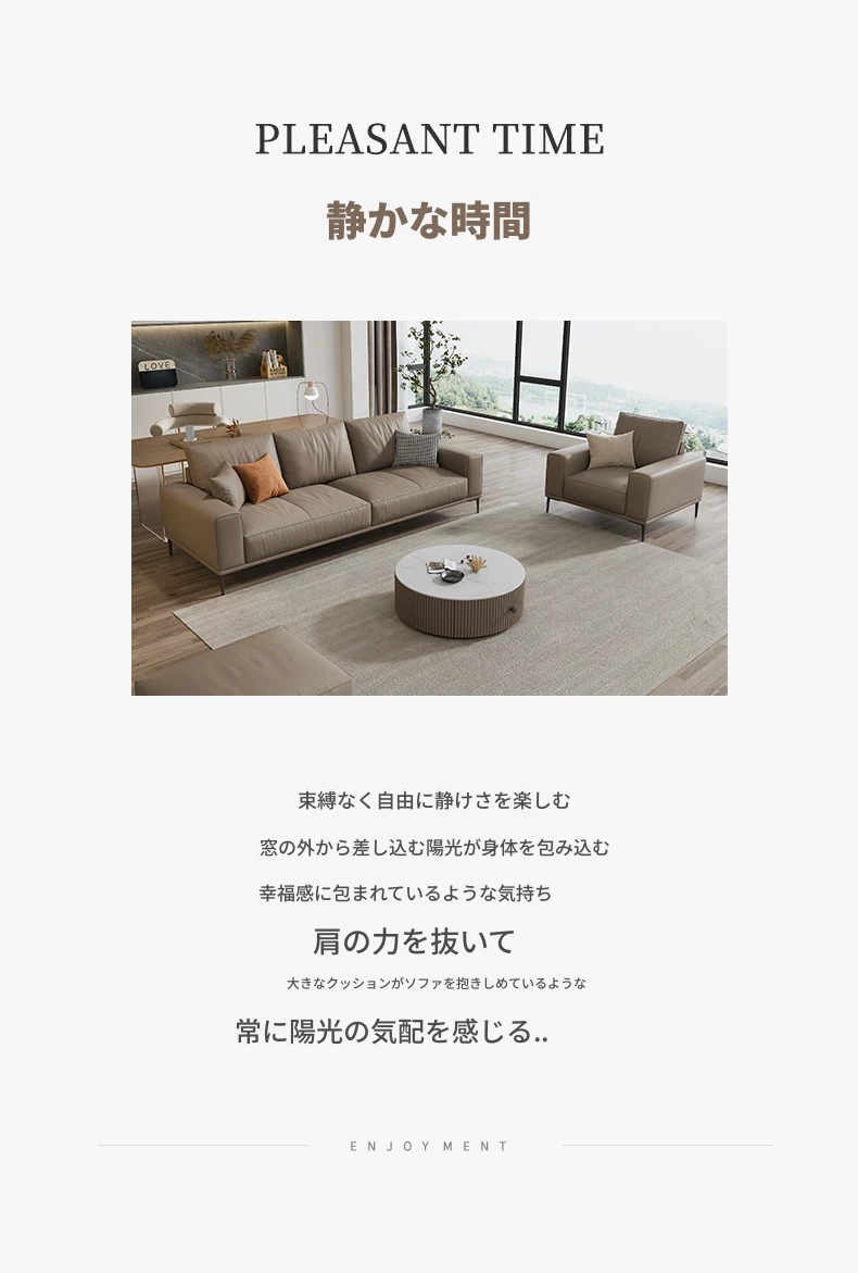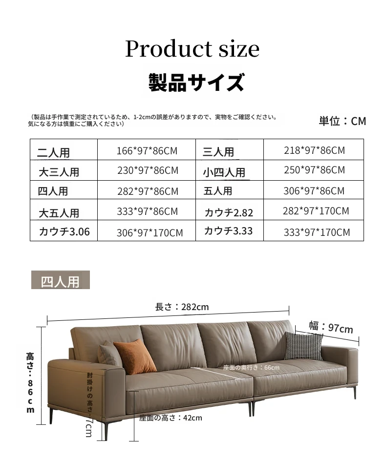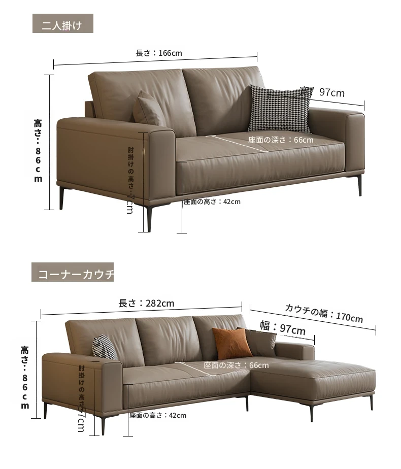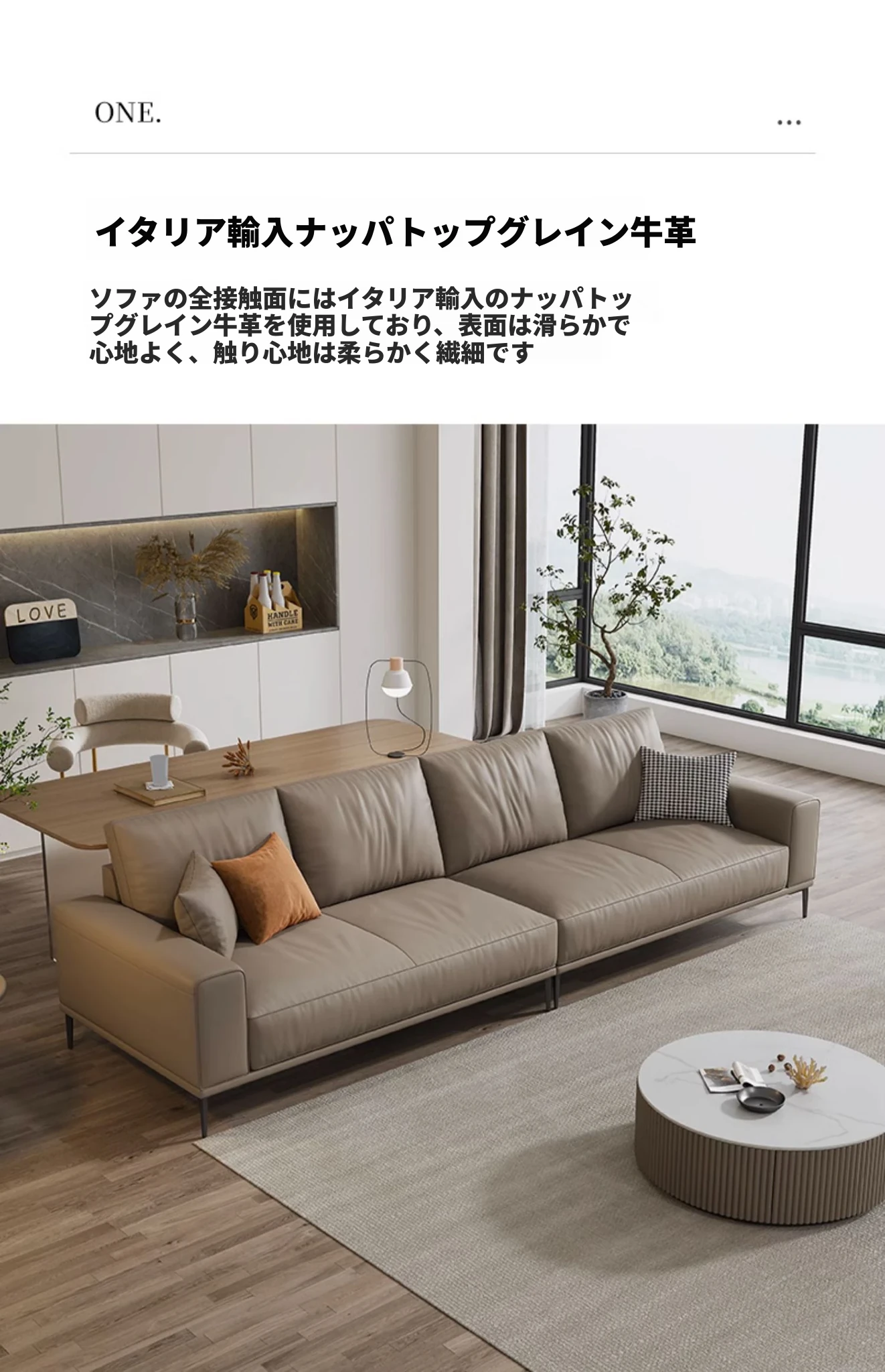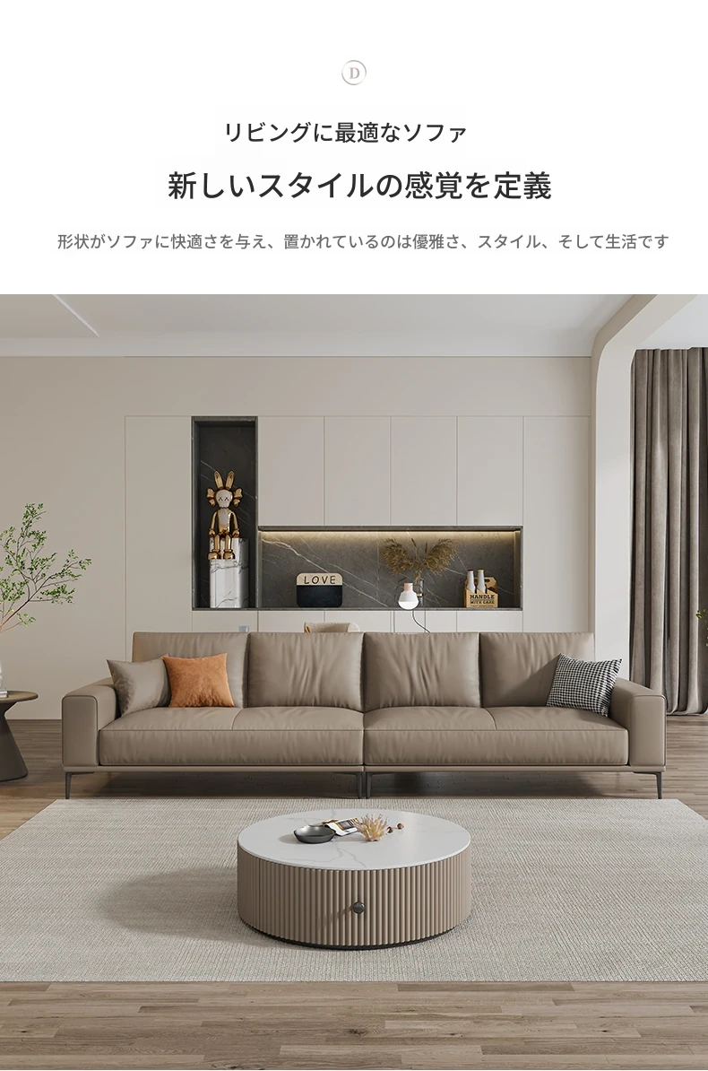 イタリアンミニマルデザイン本革ソファー|小型リビングに最適なラグジュアリー現代的シンプルスタイル|高級牛革使用のブロック型|4人掛け直列タイプで快適な座り心地を実現!