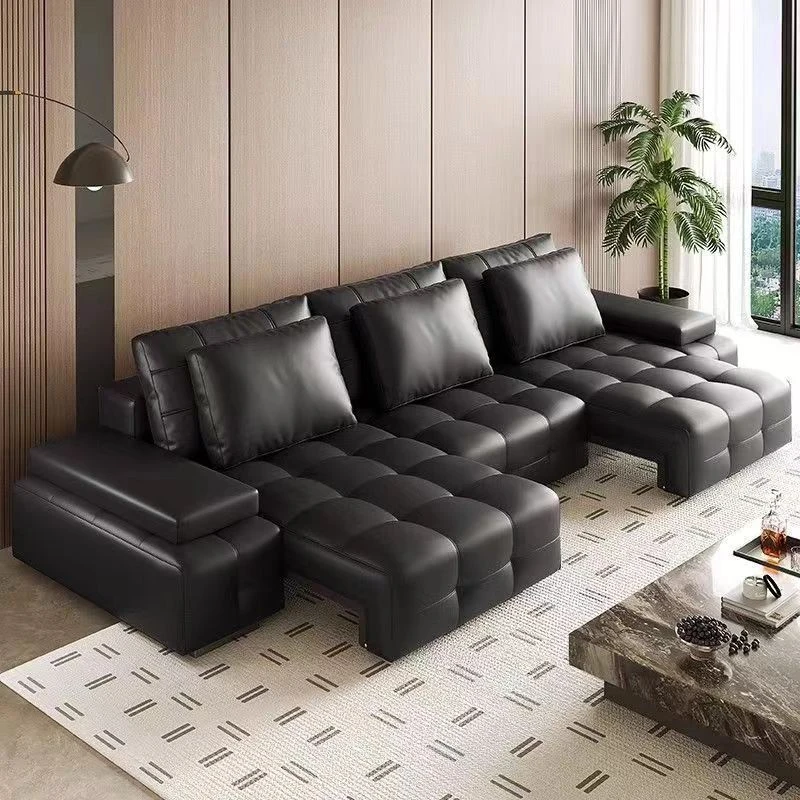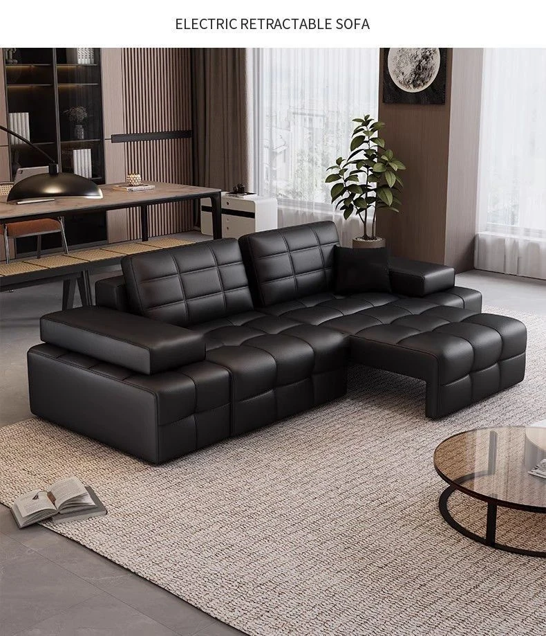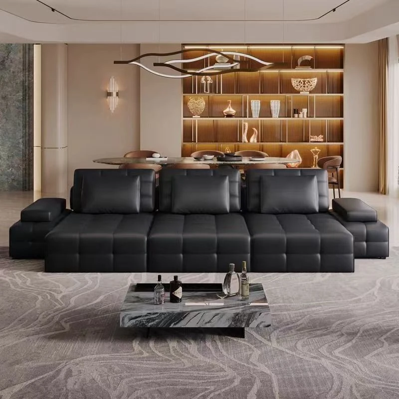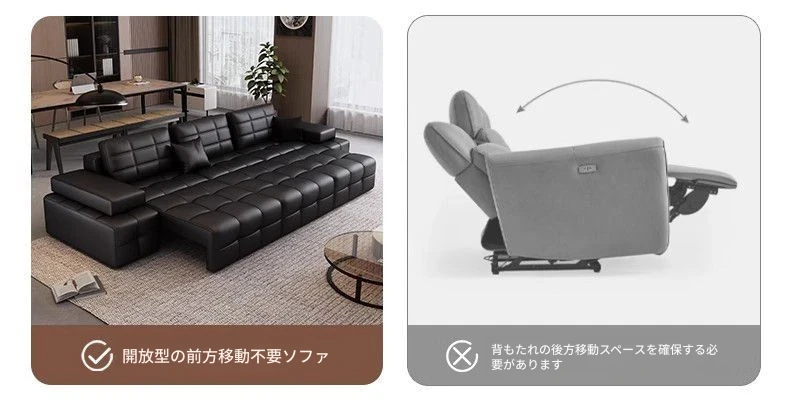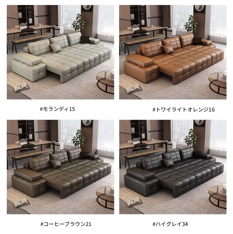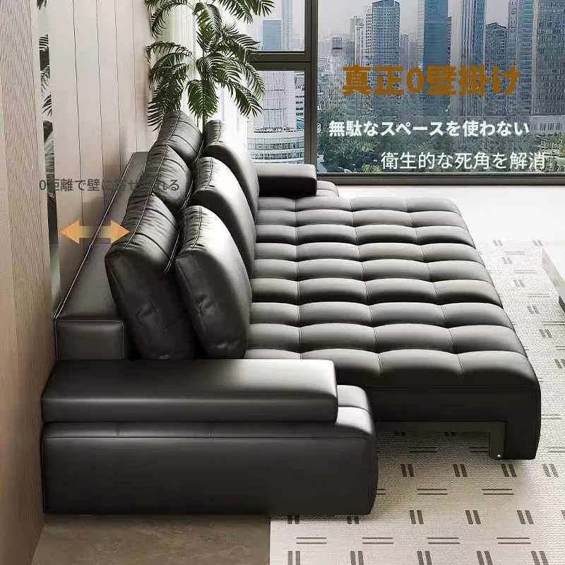 イタリアンミニマリズムの本革ゼロウォール電動ソファ - 自宅用ラウレンス牛皮フルセットソファで、洗練されたデザインと快適さを両立!あなたのリビングをスタイリッシュに演出します。