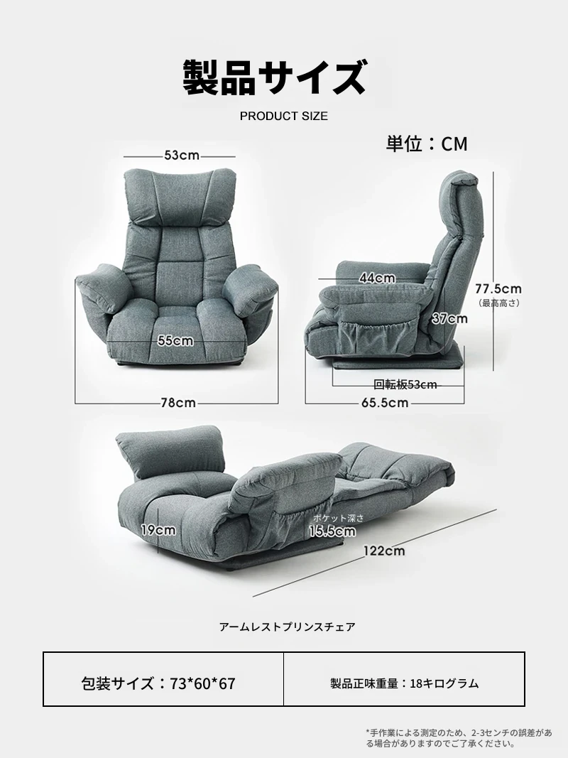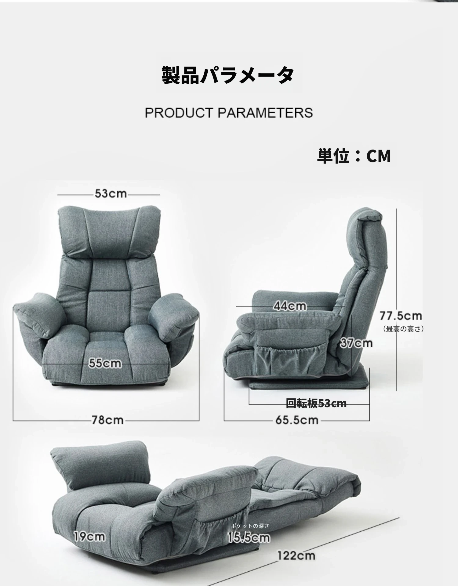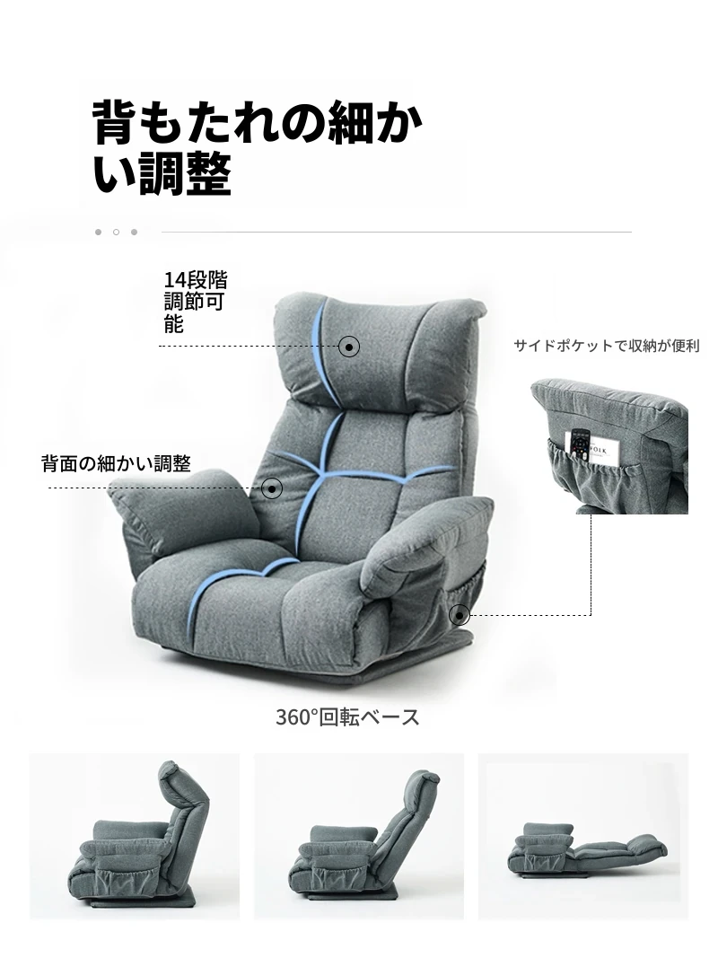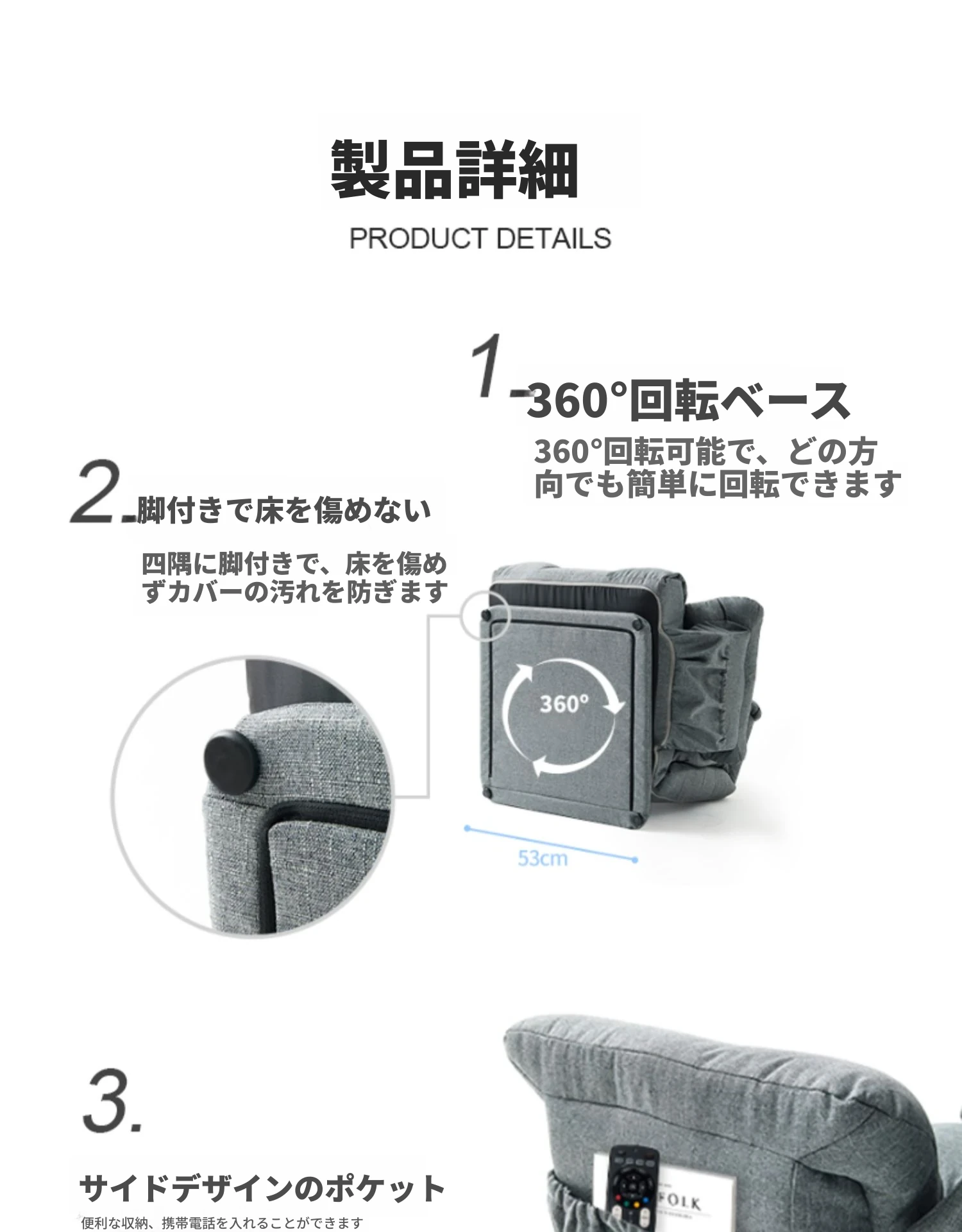 Kino回転式畳ベッド用背もたれ椅子、リラックスできる日本風ソファ、一人用窓辺の必需品!折りたたみ式で、寝室やリビングに最適なリラックス空間を提供します。