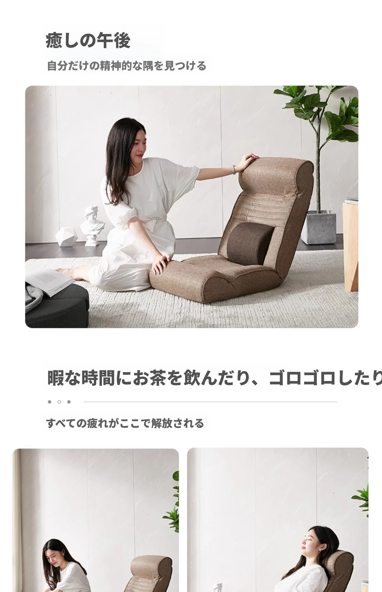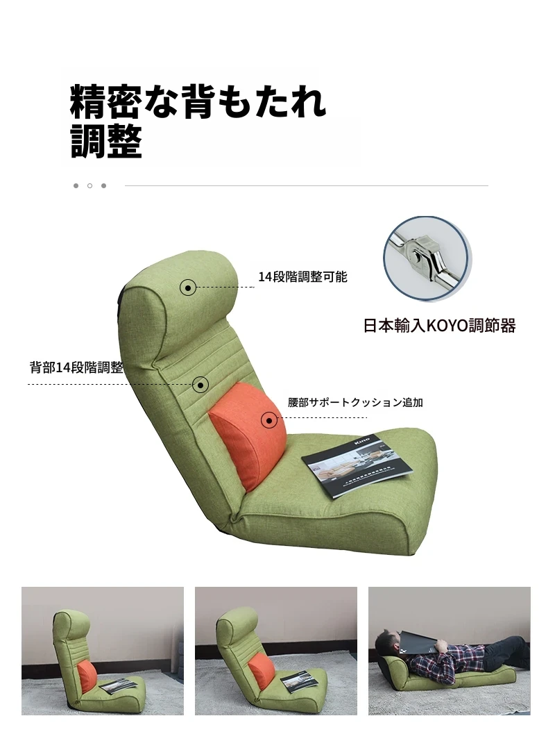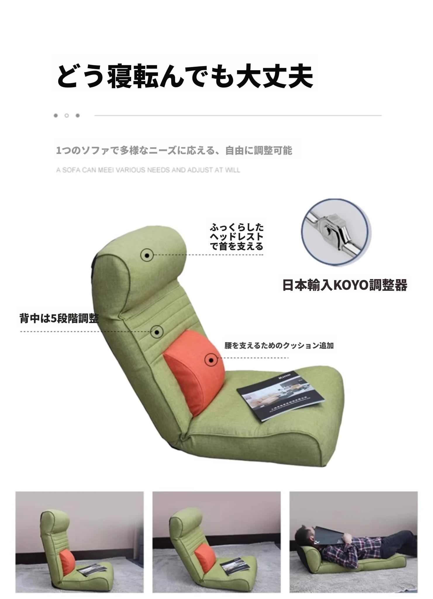 KINO一人用リクライニングソファ|折りたたみ式・足なしデザインでどこでも快適に!リビングや寝室、窓際でも使える、くつろぎのひとときをお届けします。おしゃれで実用的な畳スペースにもぴったり!