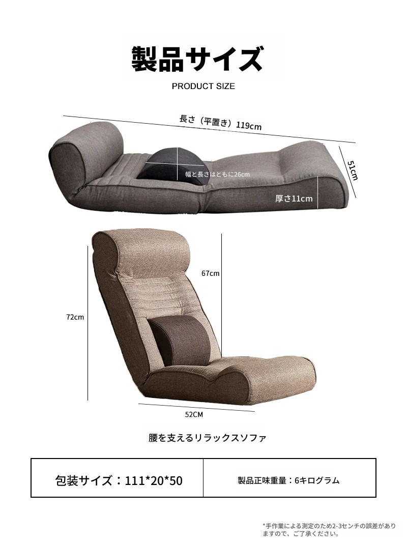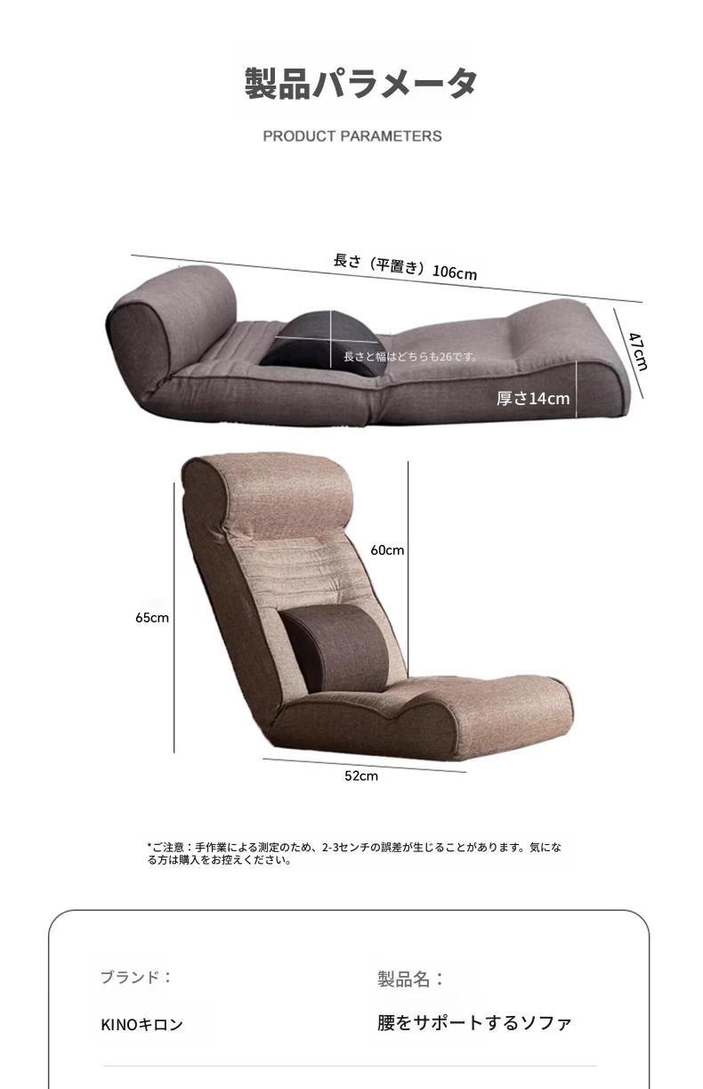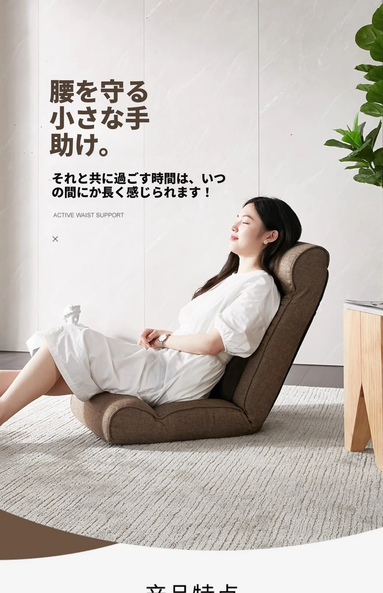 KINO一人用リクライニングソファ|折りたたみ式・足なしデザインでどこでも快適に!リビングや寝室、窓際でも使える、くつろぎのひとときをお届けします。おしゃれで実用的な畳スペースにもぴったり!