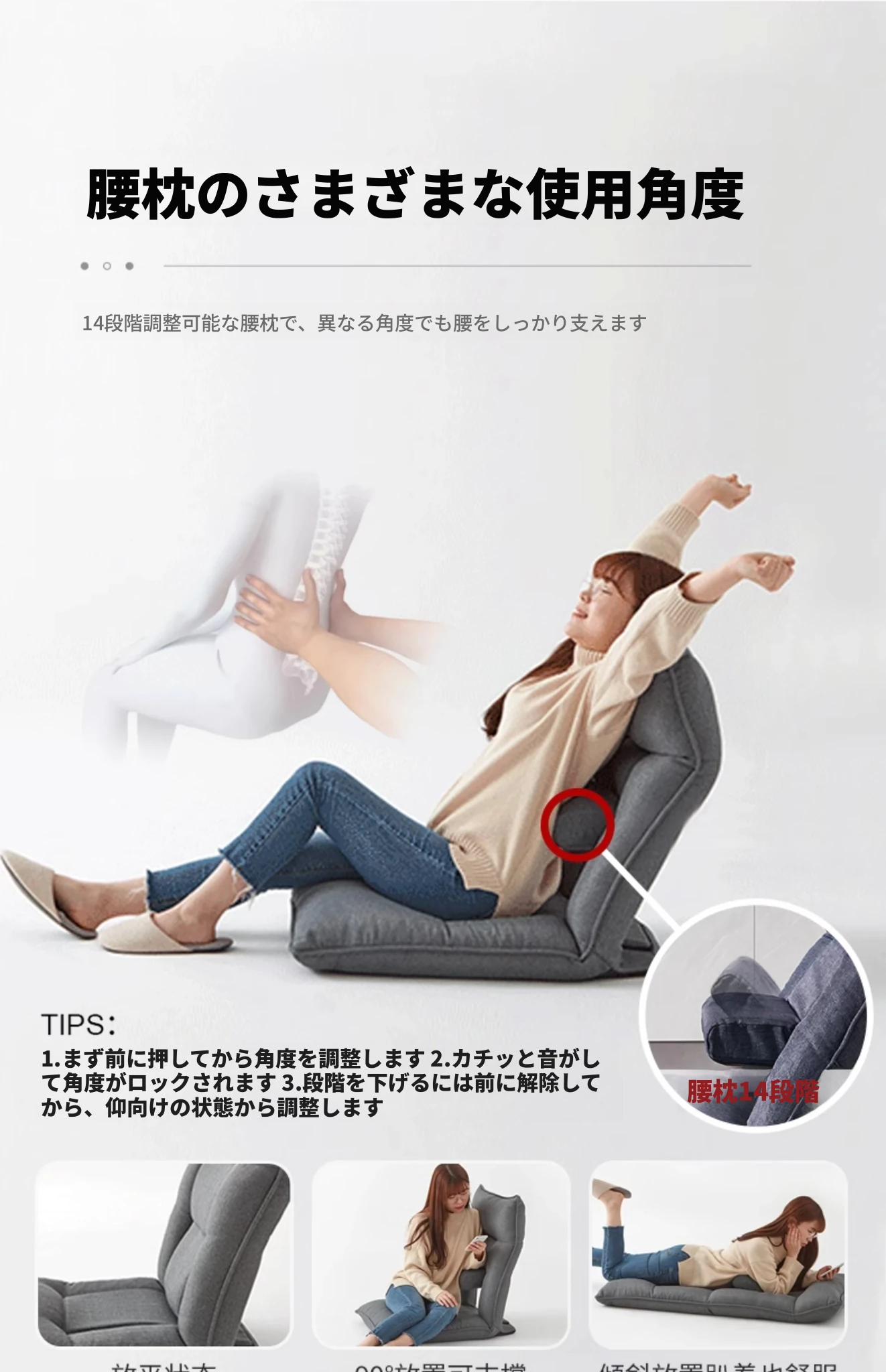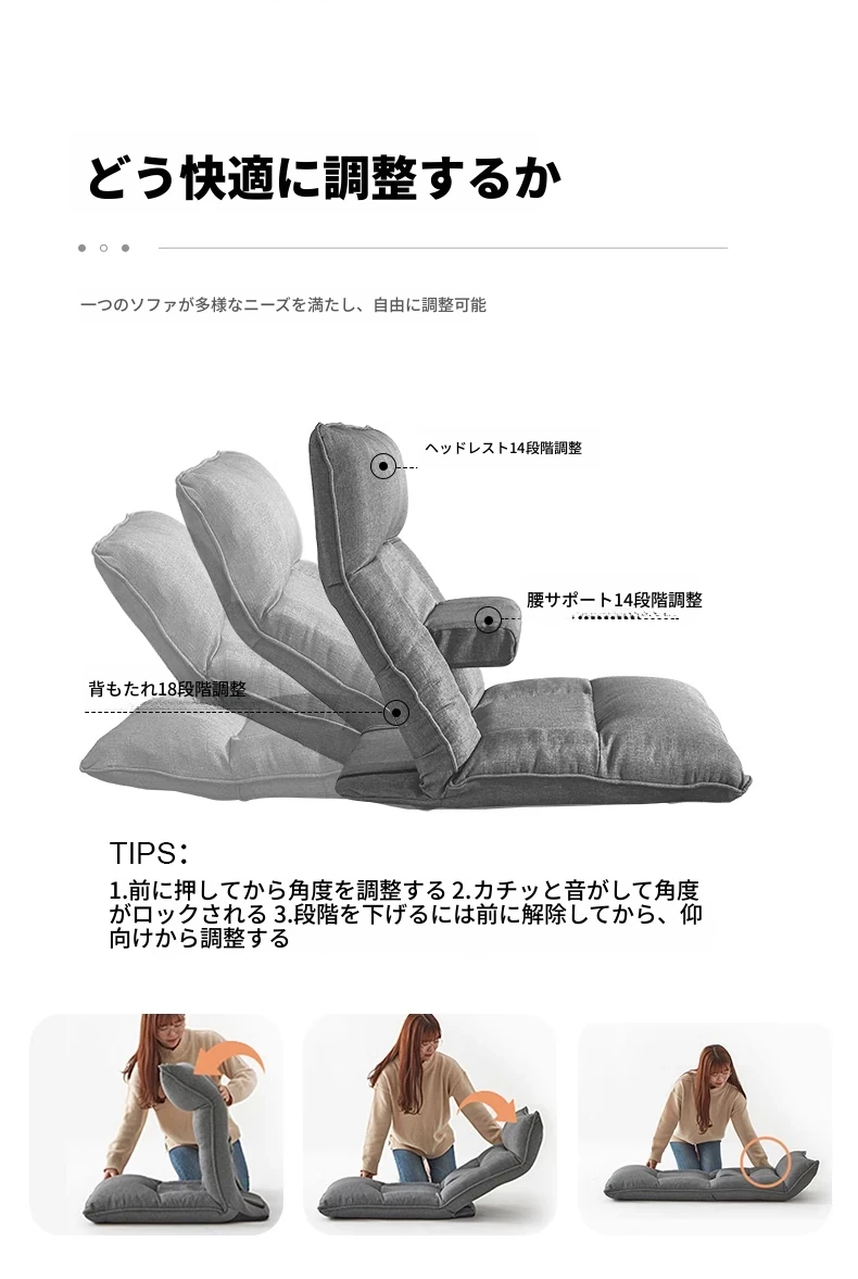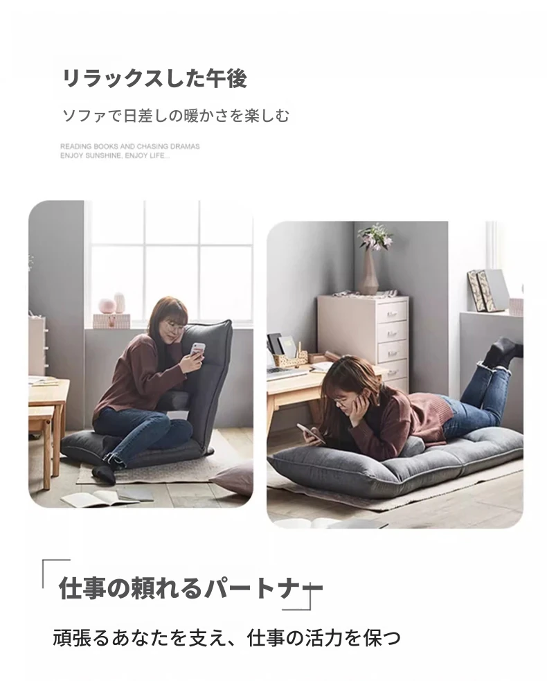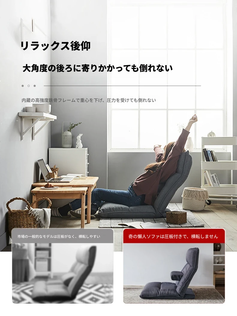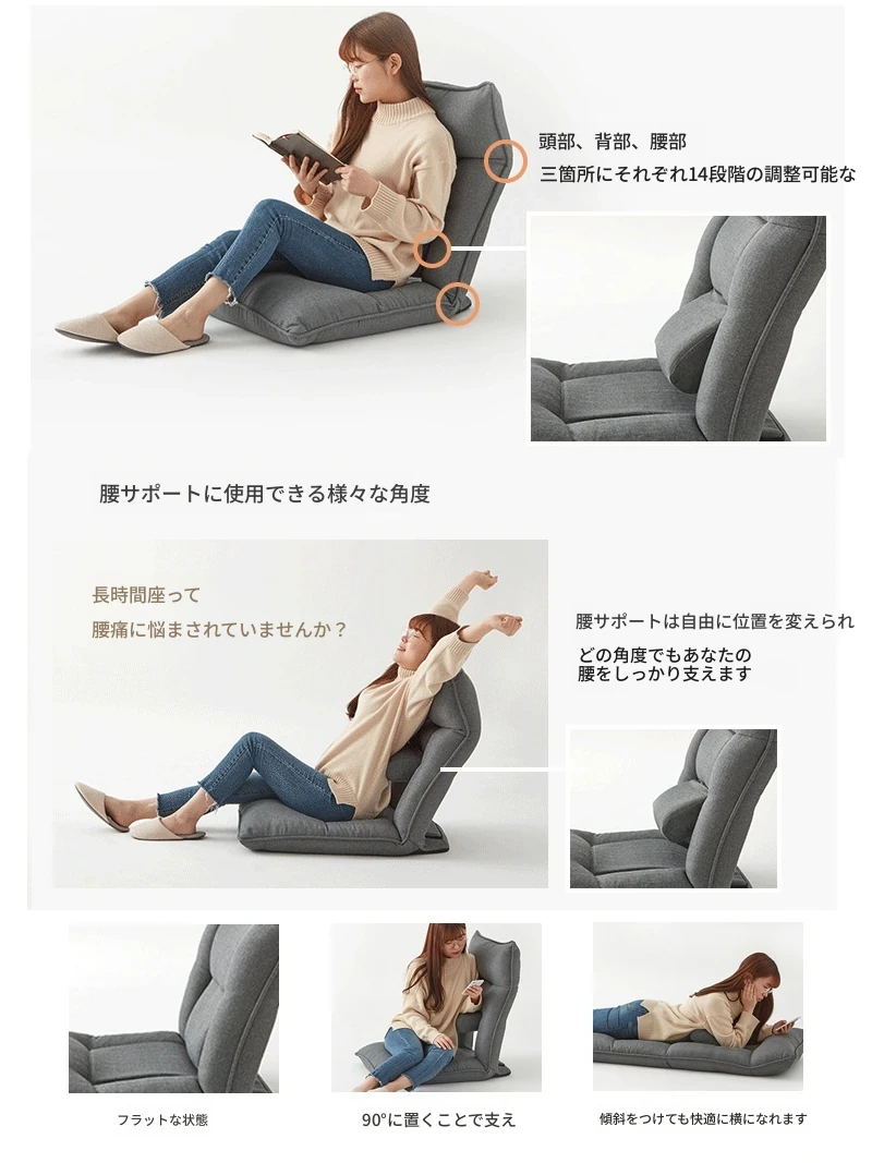 Kinoタタミベッド用クッションチェア 妊婦さんに優しい腰サポート付き!カーペットの上でも使える小さなソファ、窓際での読書やリラックスタイムに最適な怠け者ソファ!快適なひとときをお届けします。
