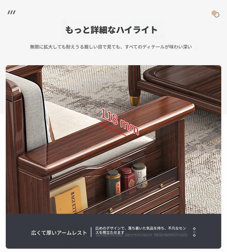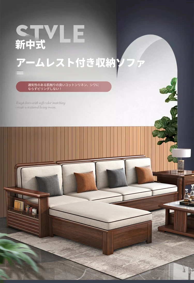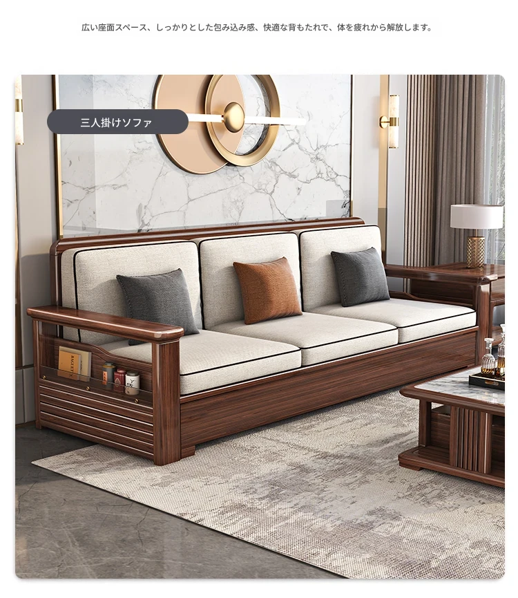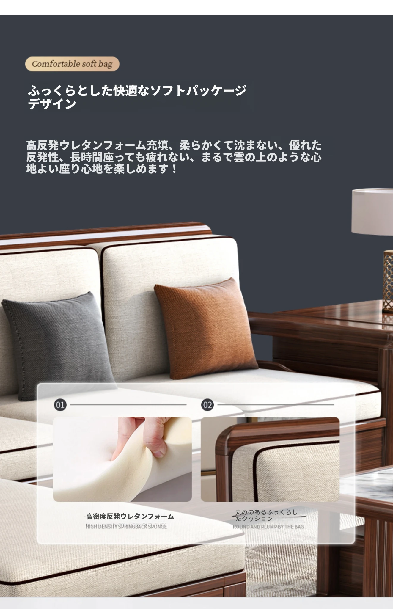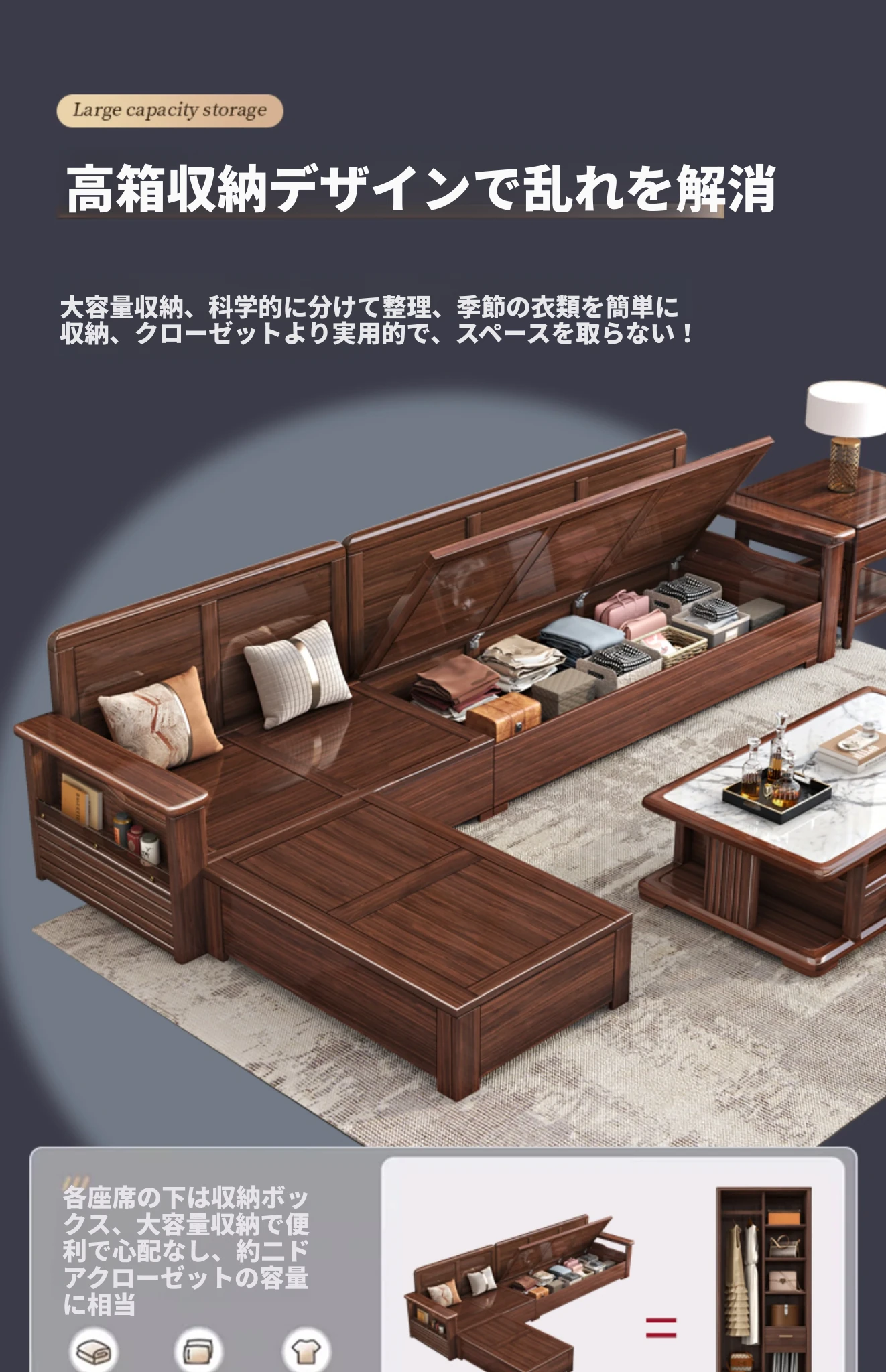新中式ウォールナットソファー - ラグジュアリーな客間にぴったりの軽やかなデザイン!コンパクトな小型サイズで、冬夏の両方に対応。収納機能も完備し、スタイリッシュに整理整頓!