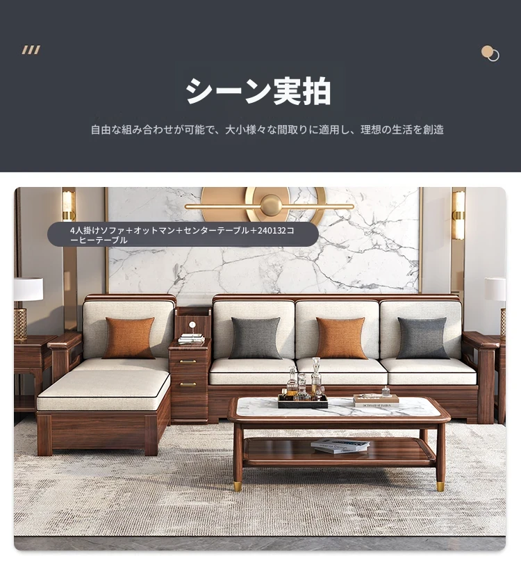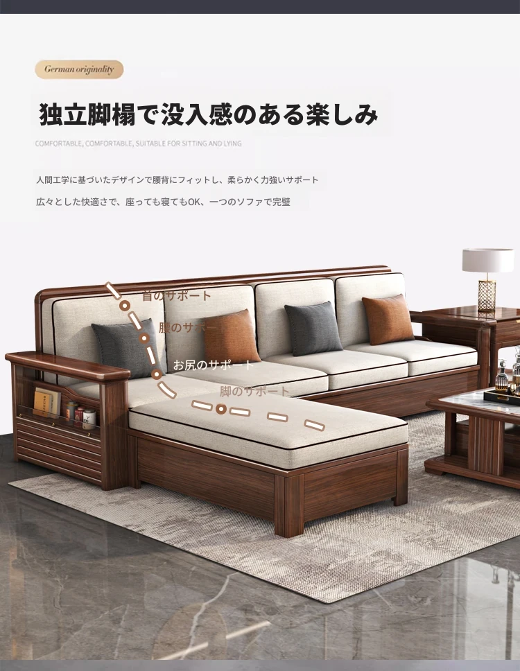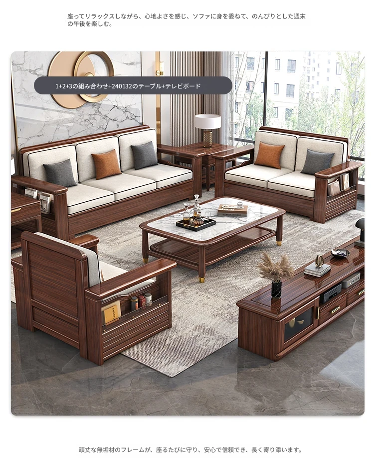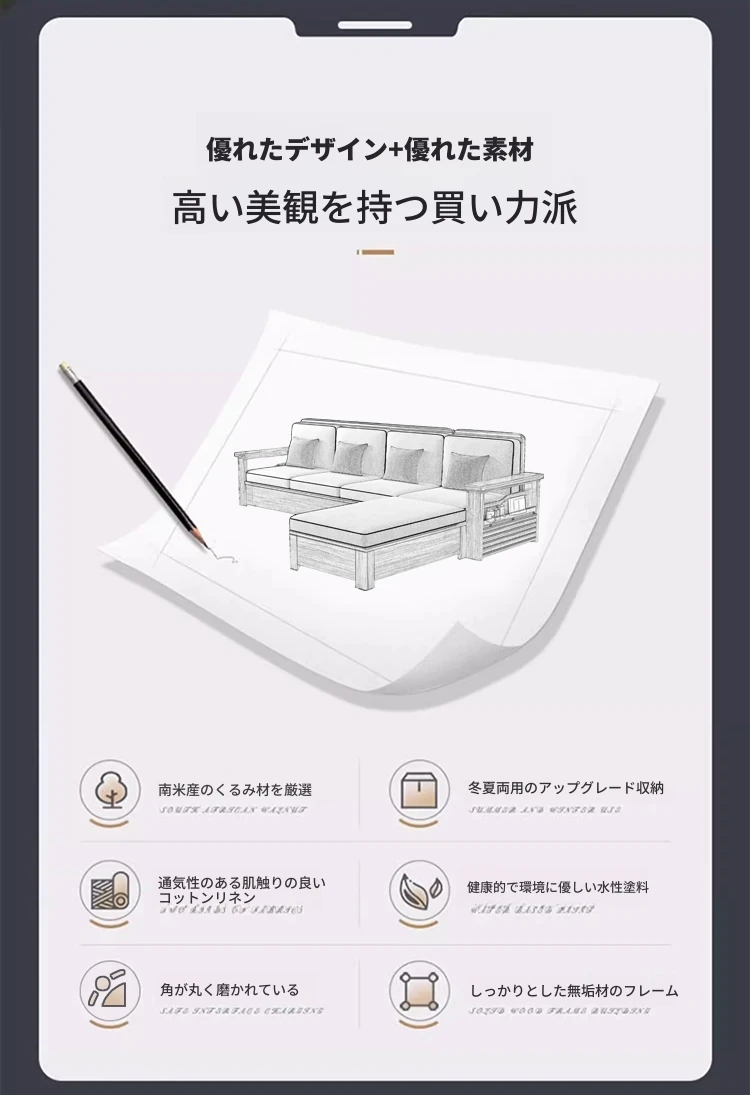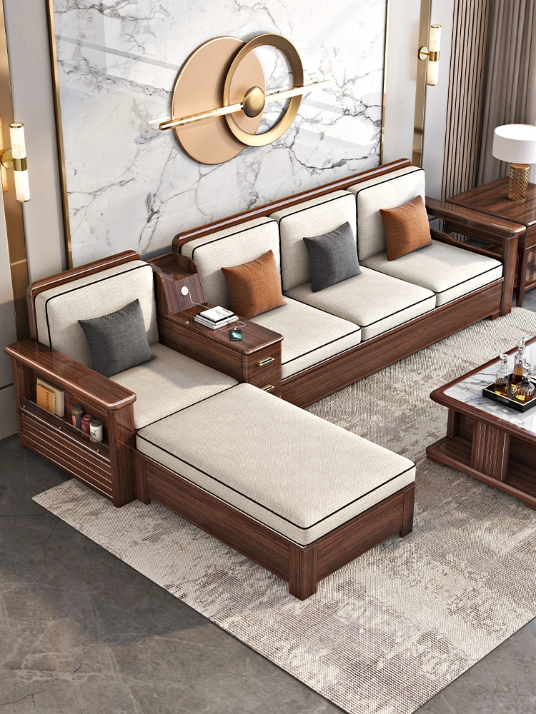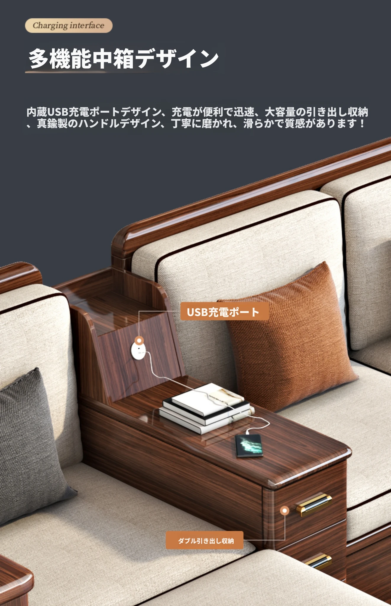 新中式ウォールナットソファー - ラグジュアリーな客間にぴったりの軽やかなデザイン!コンパクトな小型サイズで、冬夏の両方に対応。収納機能も完備し、スタイリッシュに整理整頓!
