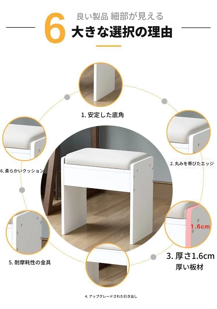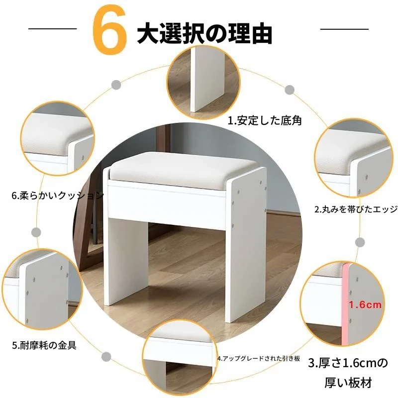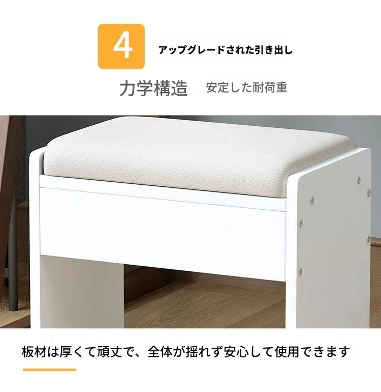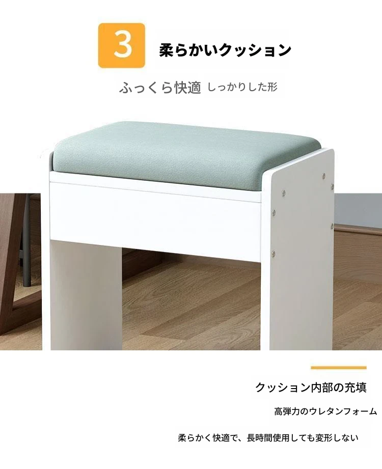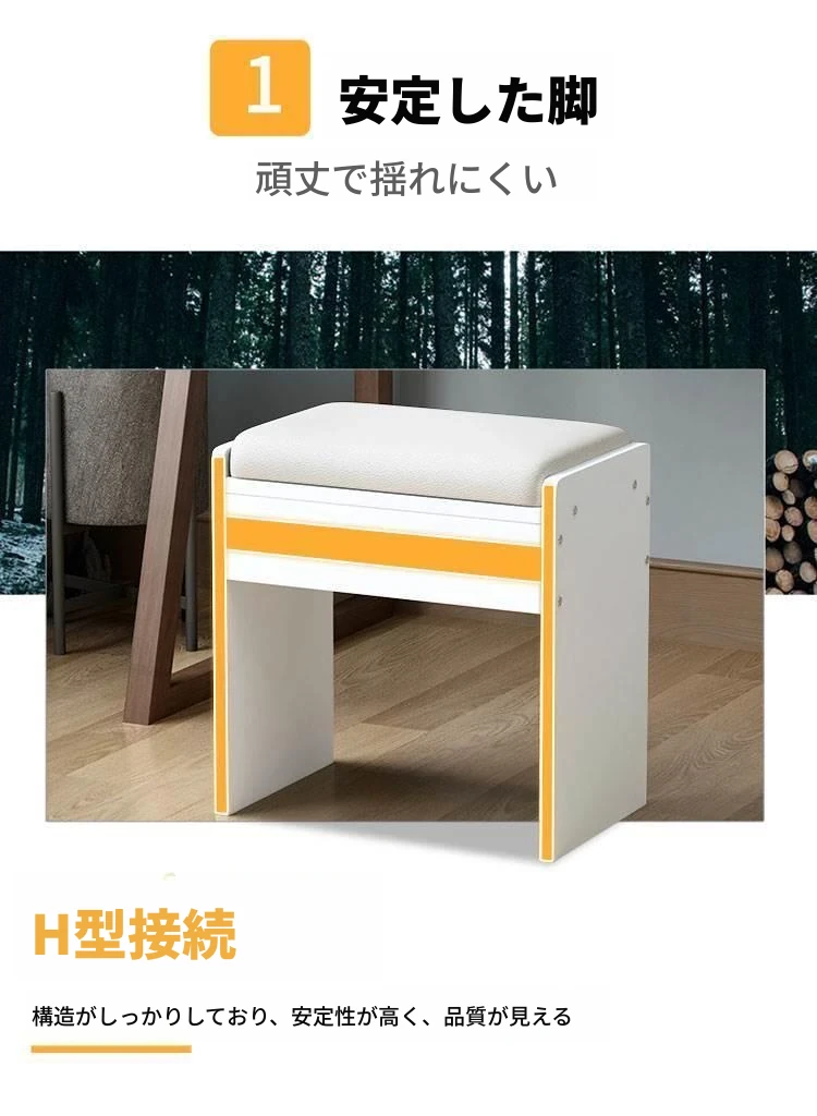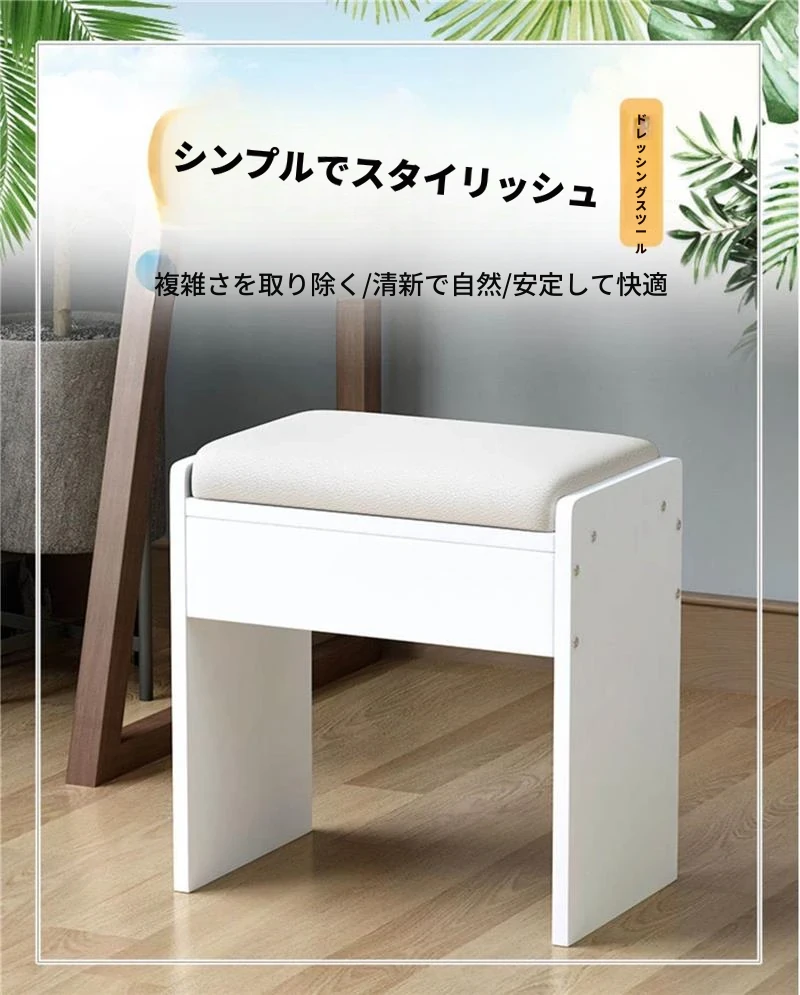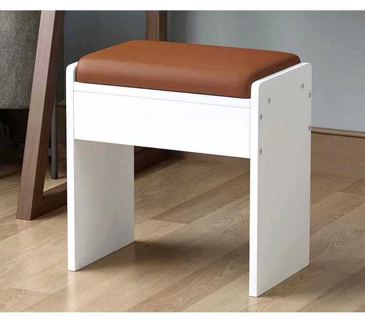 アメリカンスタイルの化粧台用スツール - ヨーロッパ風無背もたれの実木製椅子、モダンでシンプルなデザイン、寝室や書斎に最適!おしゃれで快適な座り心地をお楽しみください!