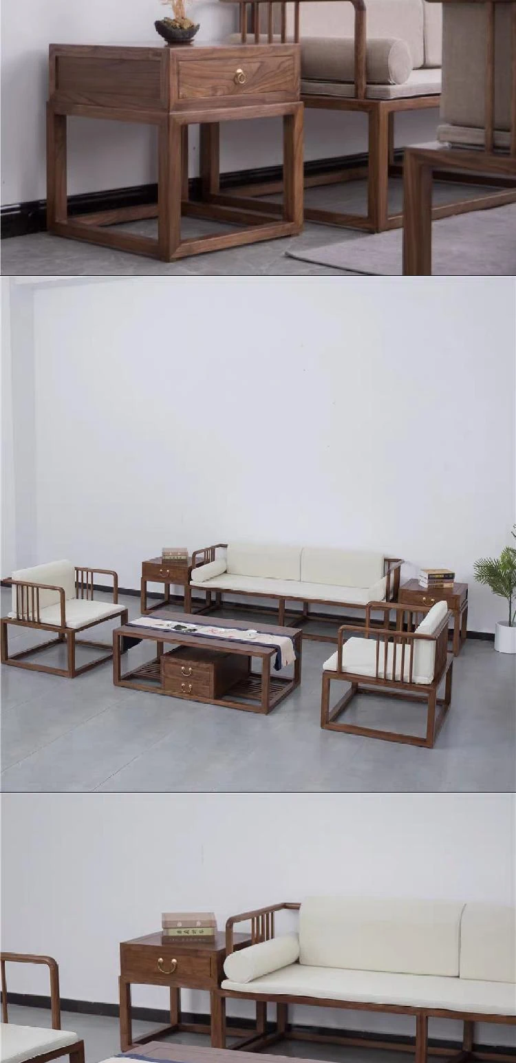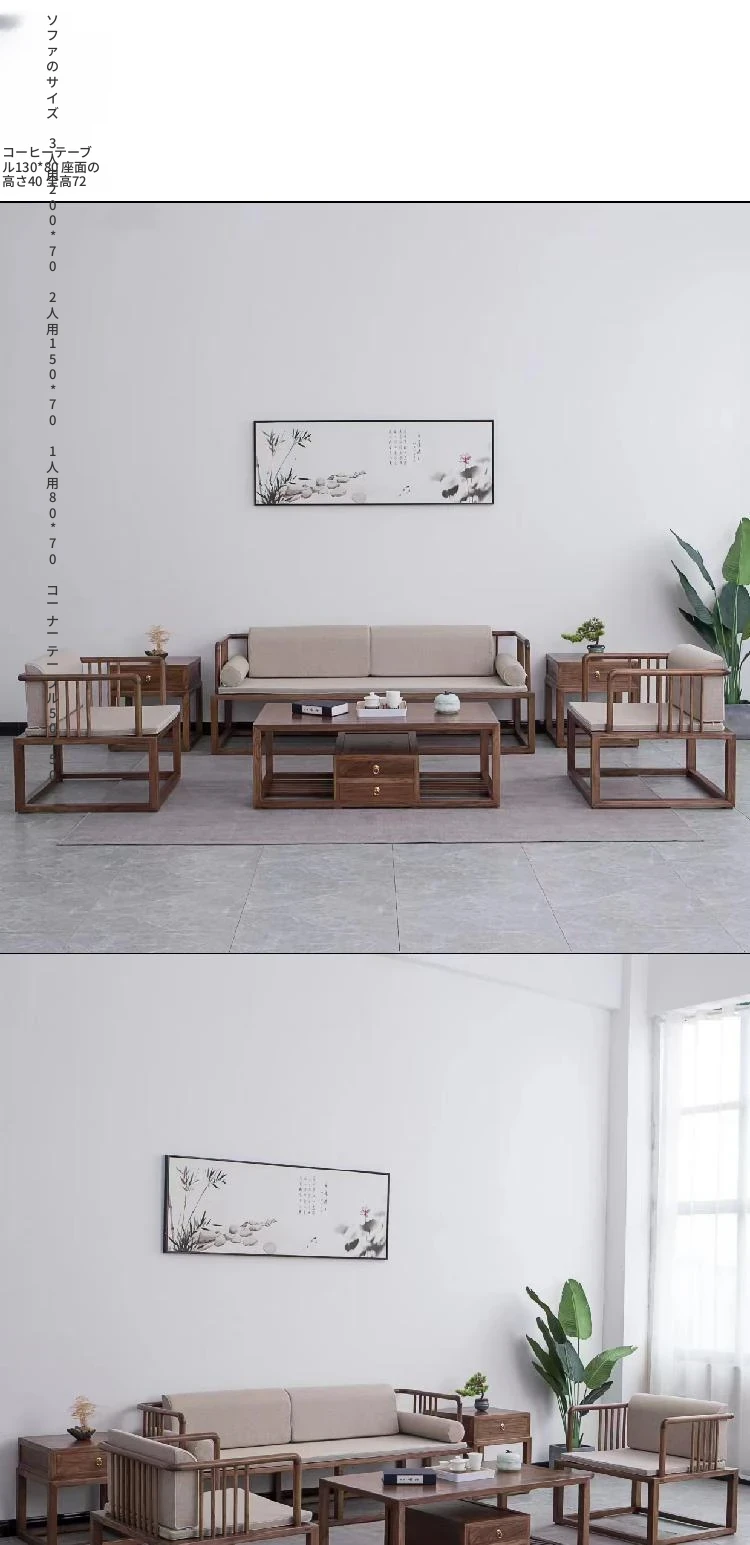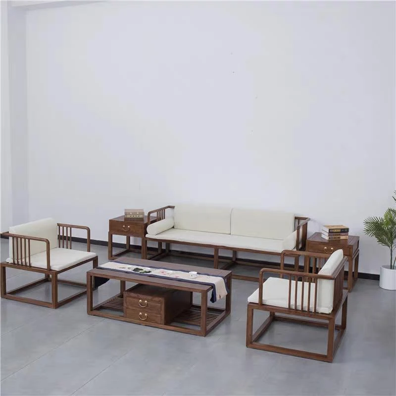 新中式スタイルの老榆木ソファセット - 禅の心を感じる民宿風デザイン、ブラックウォールナットのモダンな無垢材使用!シンプルで洗練されたリビングやホテル、クラブにも最適です。