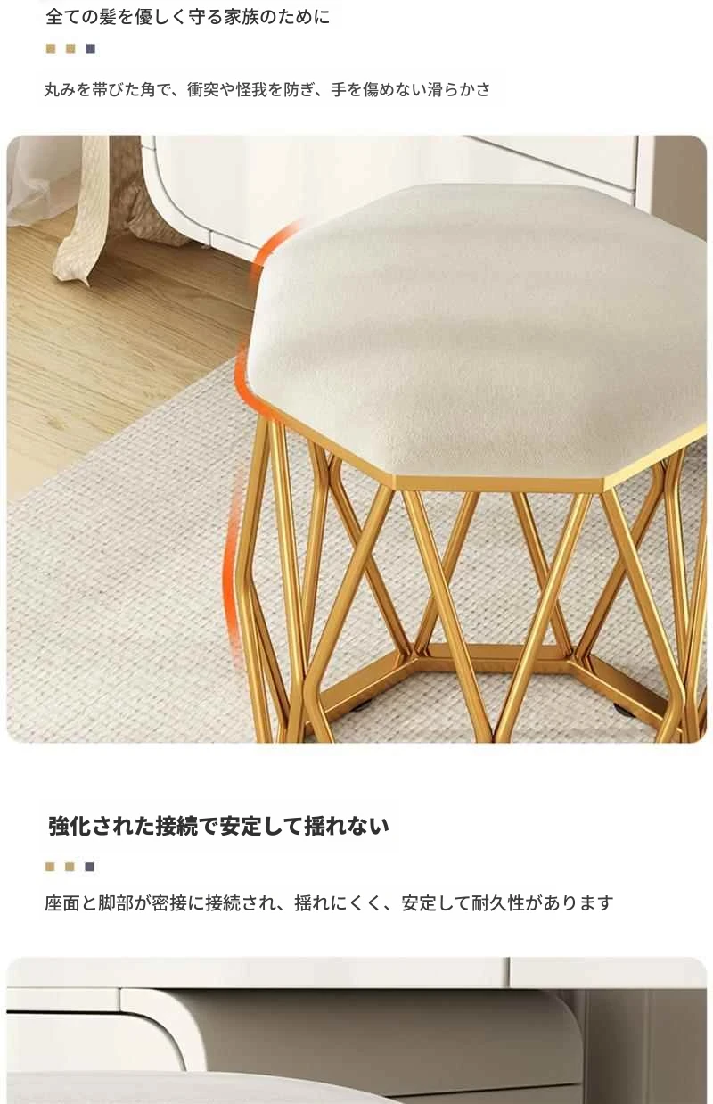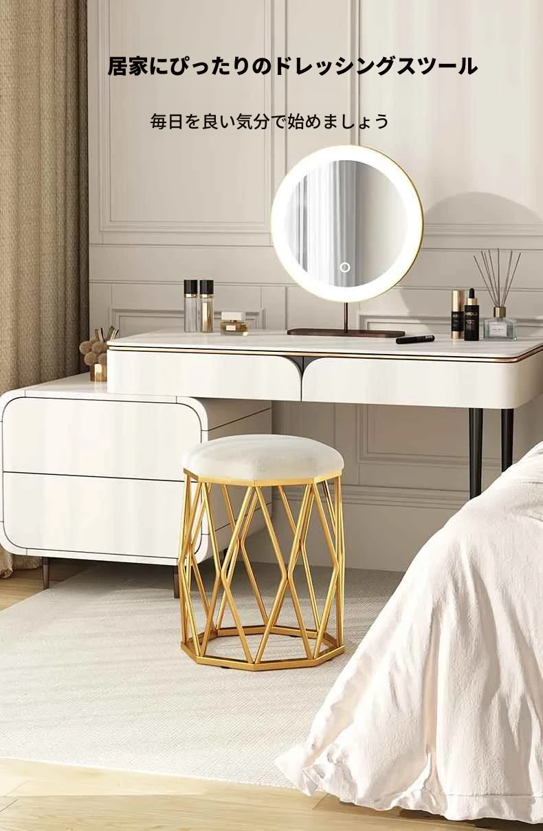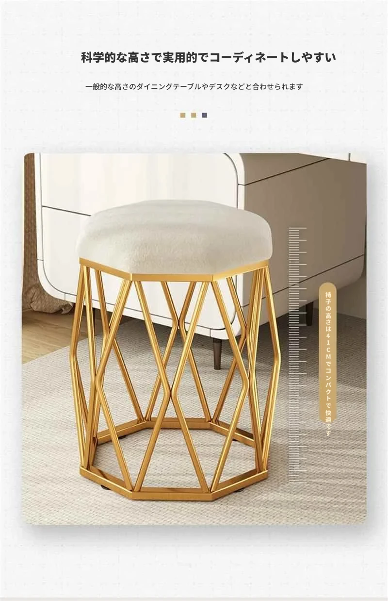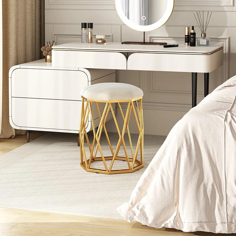 軽やかなラグジュアリーのドレッサースツール - モダンでシンプルな女性用ベッドルームにぴったり!おしゃれな鳥の巣デザインの丸椅子、人気のネイルチェアとしても最適です。自分だけの特別な空間を演出しましょう!