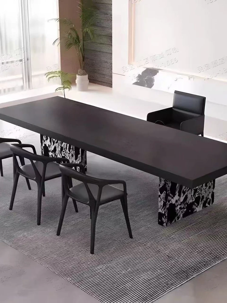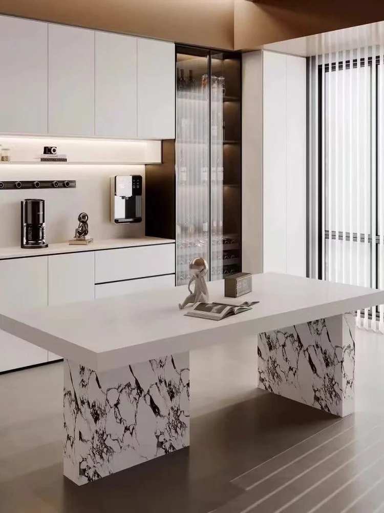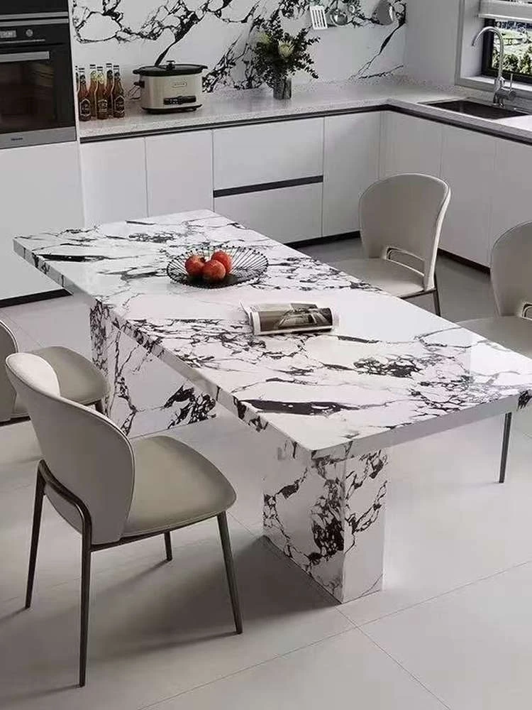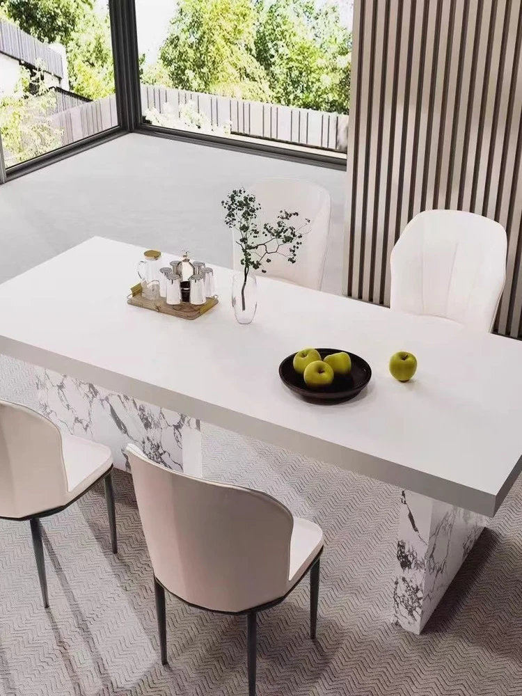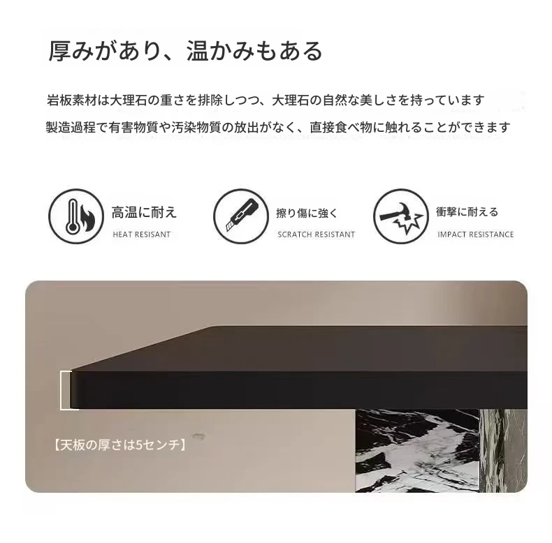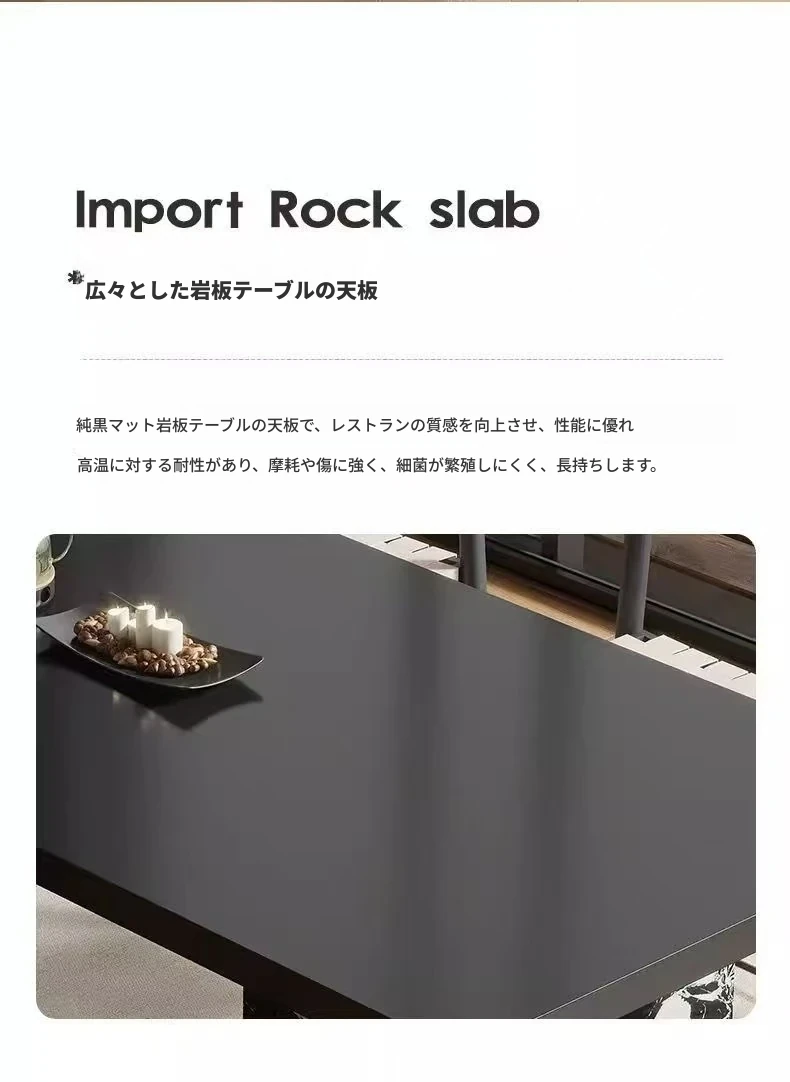 現代的シンプルなデザイン!岩板製の長方形ダイニングテーブルとチェアのセット。小型住宅にもぴったり!おしゃれな茶書飯テーブルで、食事や読書の時間をもっと特別に。
