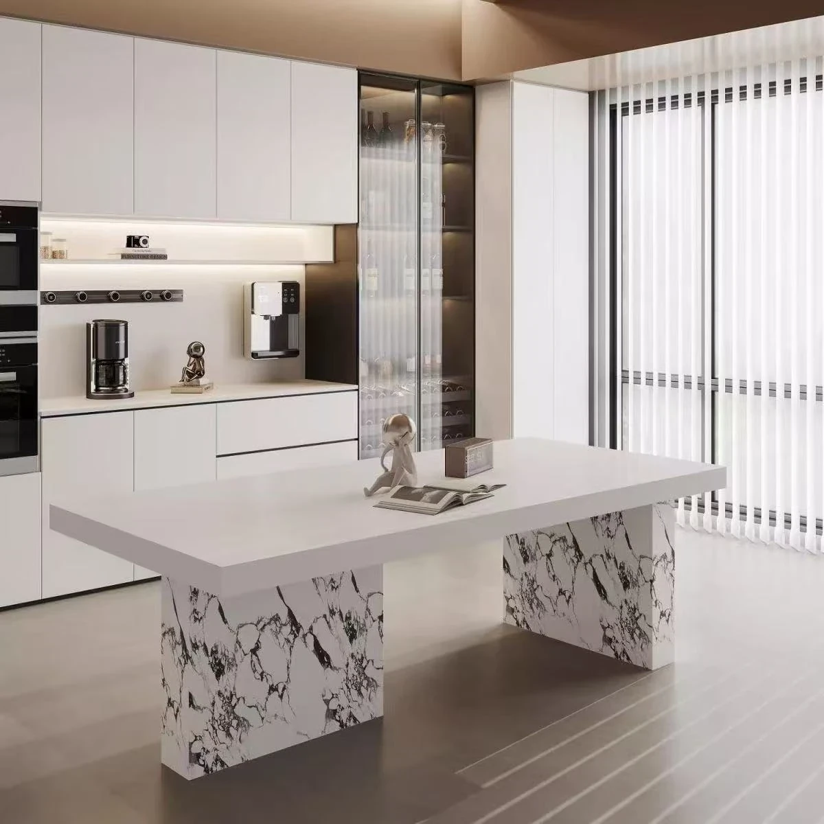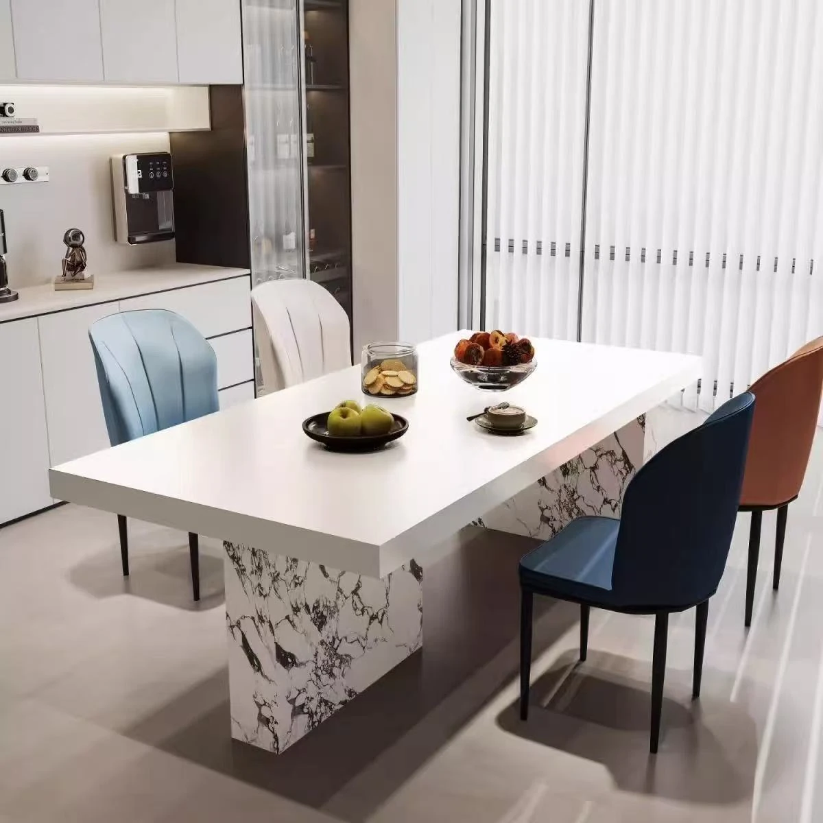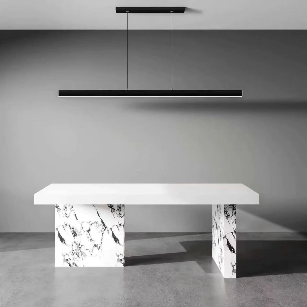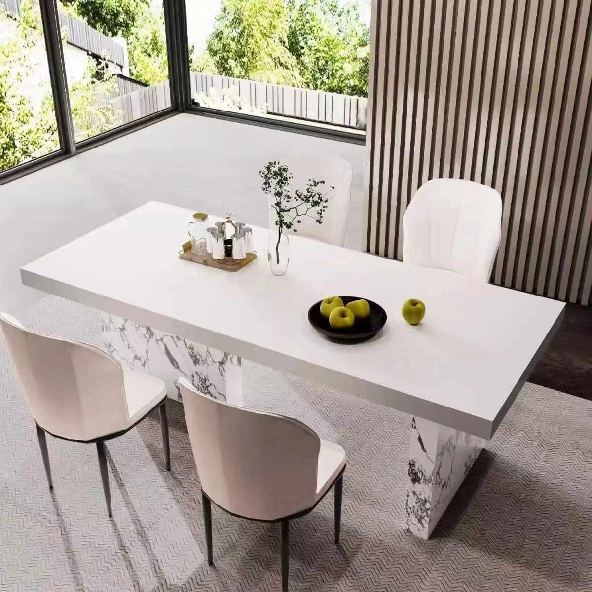 現代的シンプルなデザイン!岩板製の長方形ダイニングテーブルとチェアのセット。小型住宅にもぴったり!おしゃれな茶書飯テーブルで、食事や読書の時間をもっと特別に。