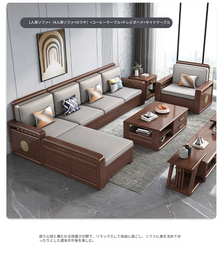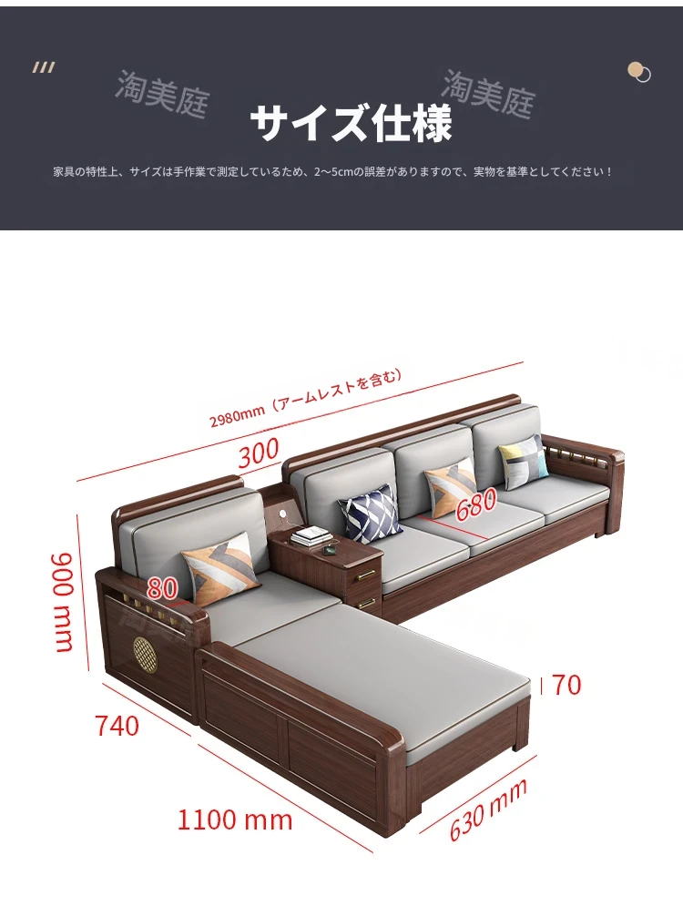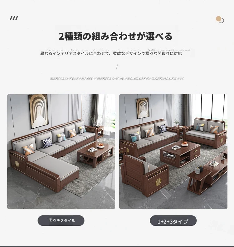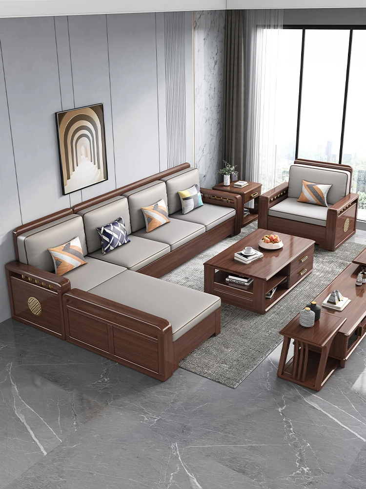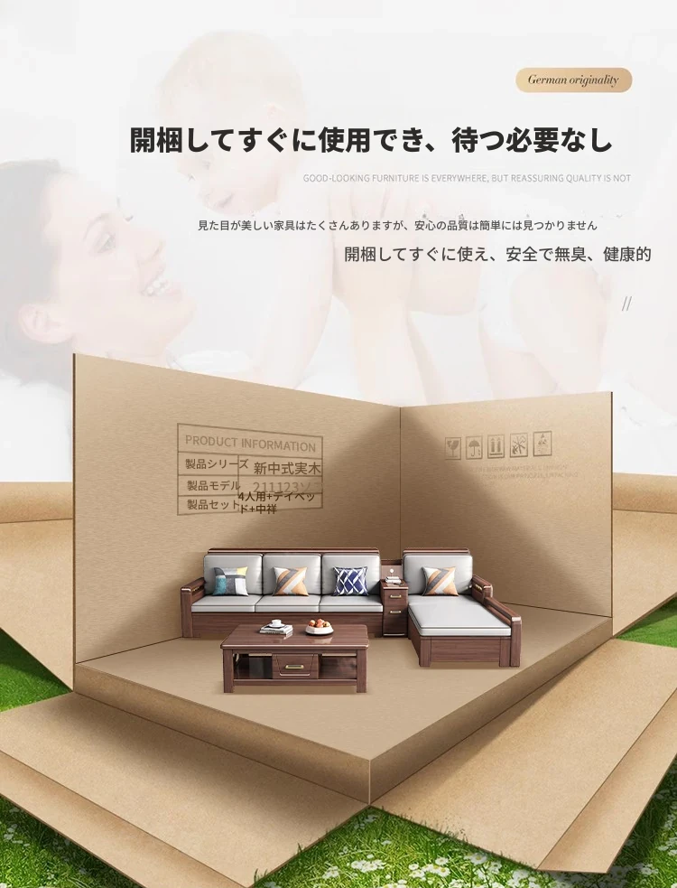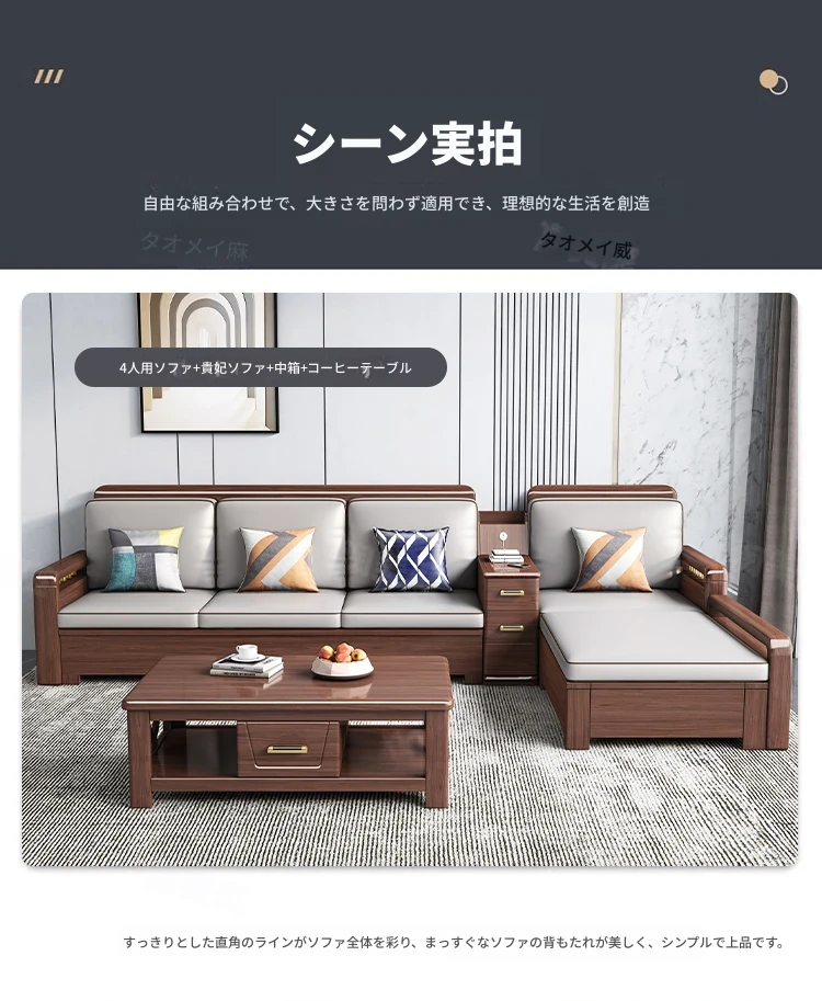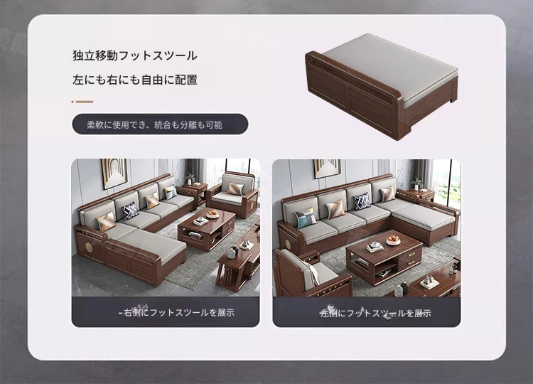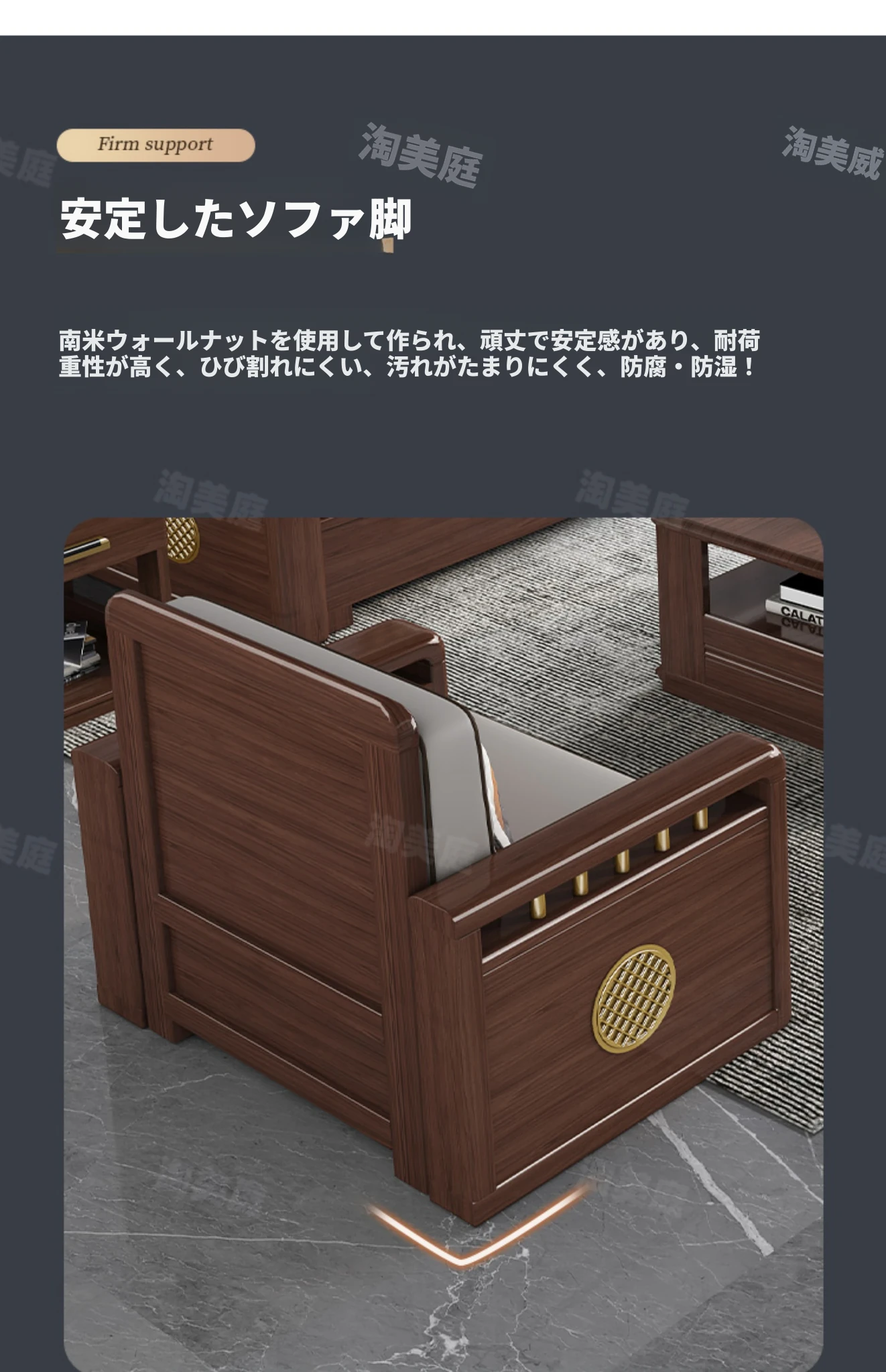 新中式全実木ソファ|モダンでシンプルなリビング向け|小型住宅に最適な収納付き|冬夏両用のクルミ材ソファで快適な空間を実現!