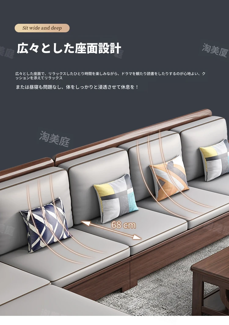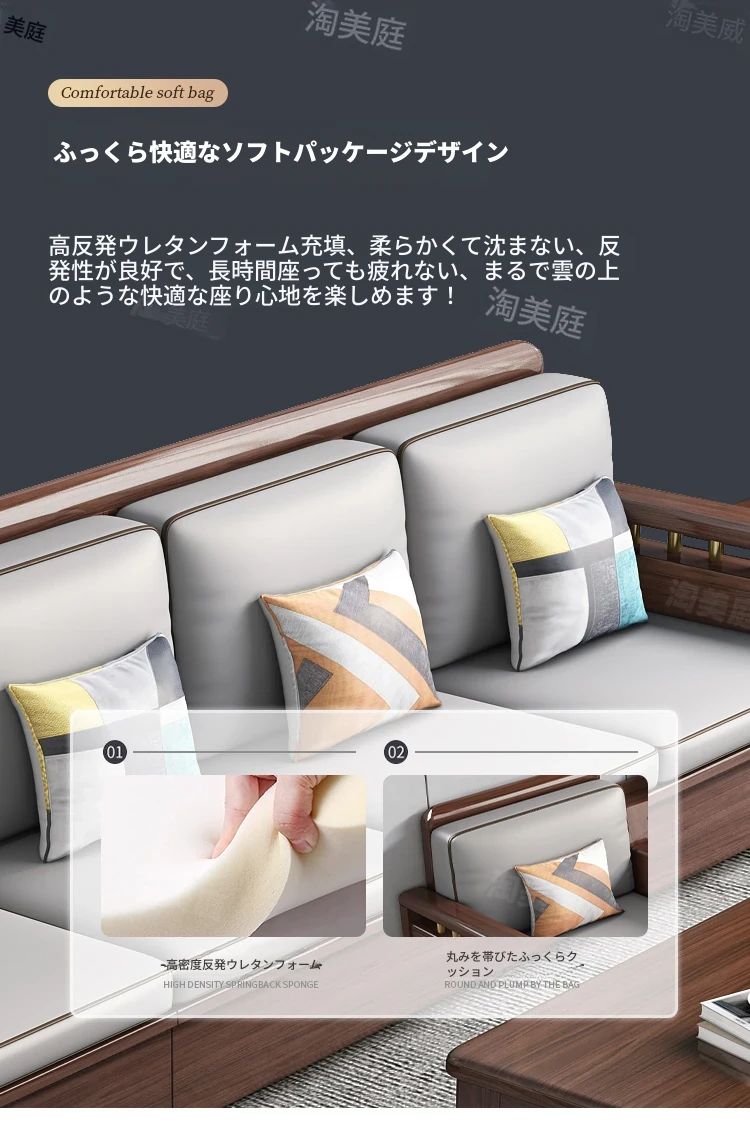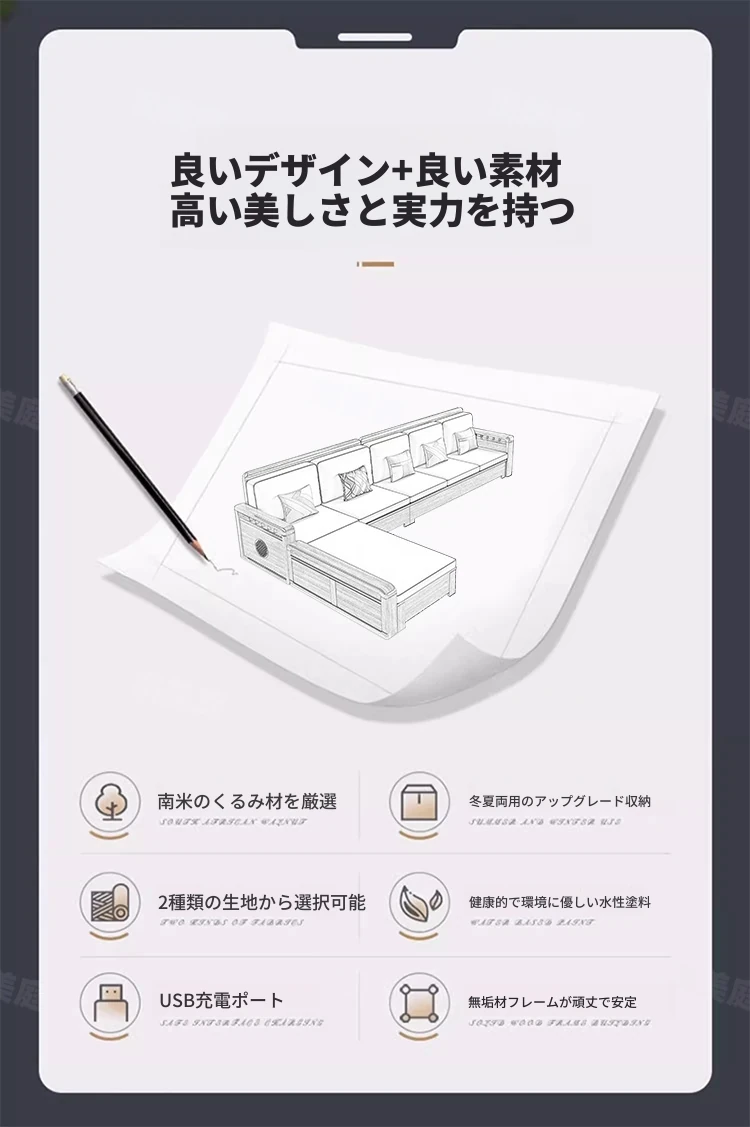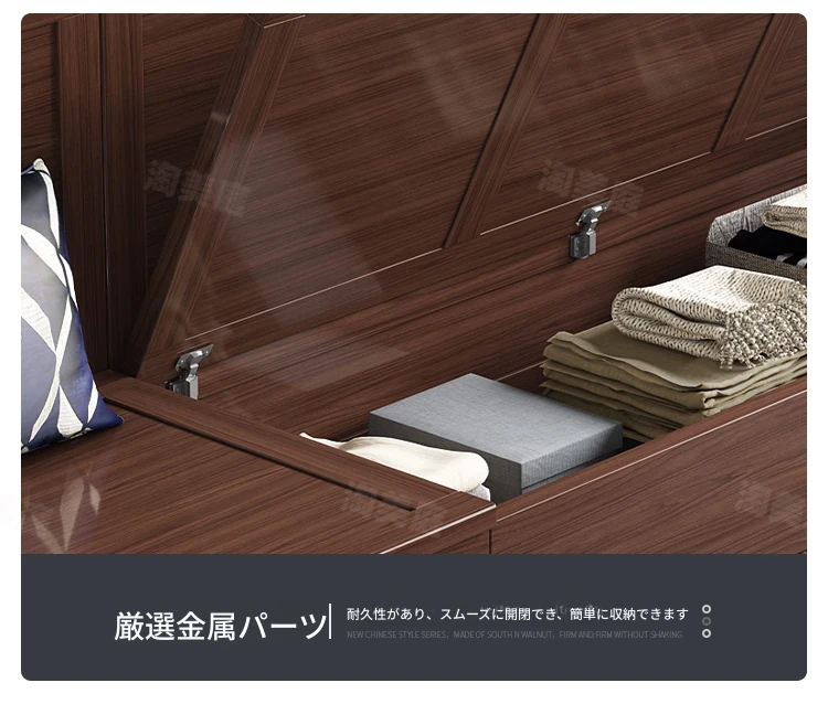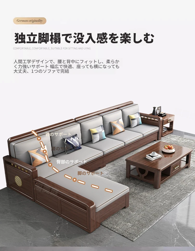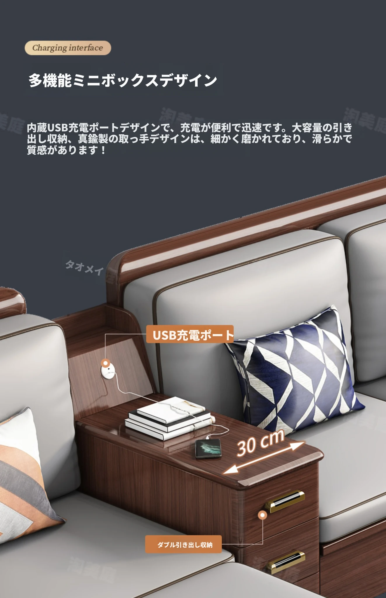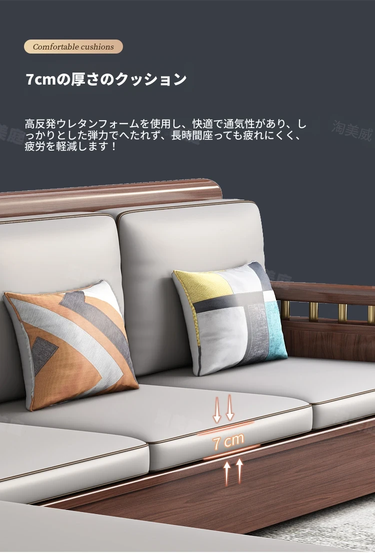 新中式全実木ソファ|モダンでシンプルなリビング向け|小型住宅に最適な収納付き|冬夏両用のクルミ材ソファで快適な空間を実現!