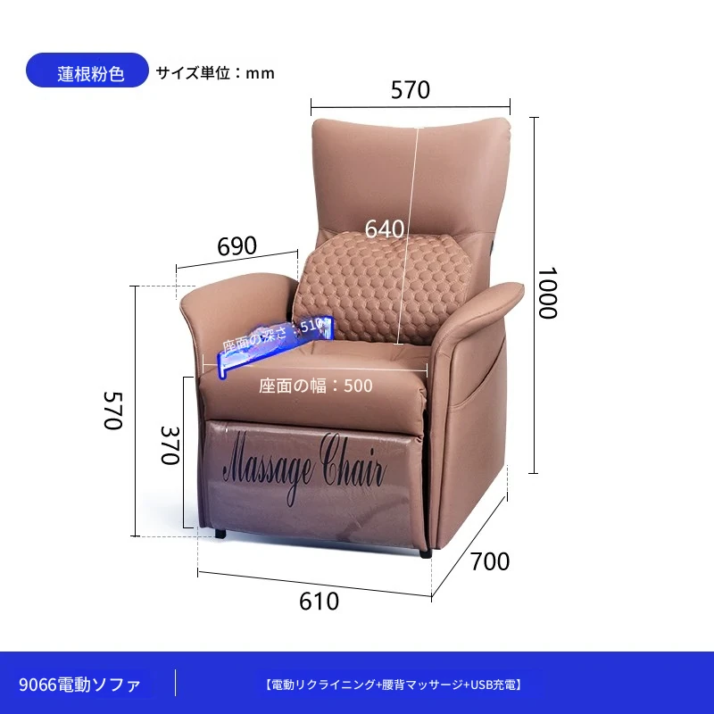蓮根粉色【電動リクライニング+腰背マッサージ+USB充電】