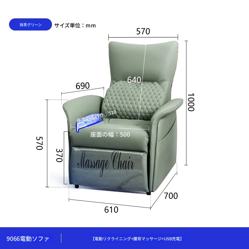抹茶グリーン【電動リクライニング+腰背マッサージ+USB充電】