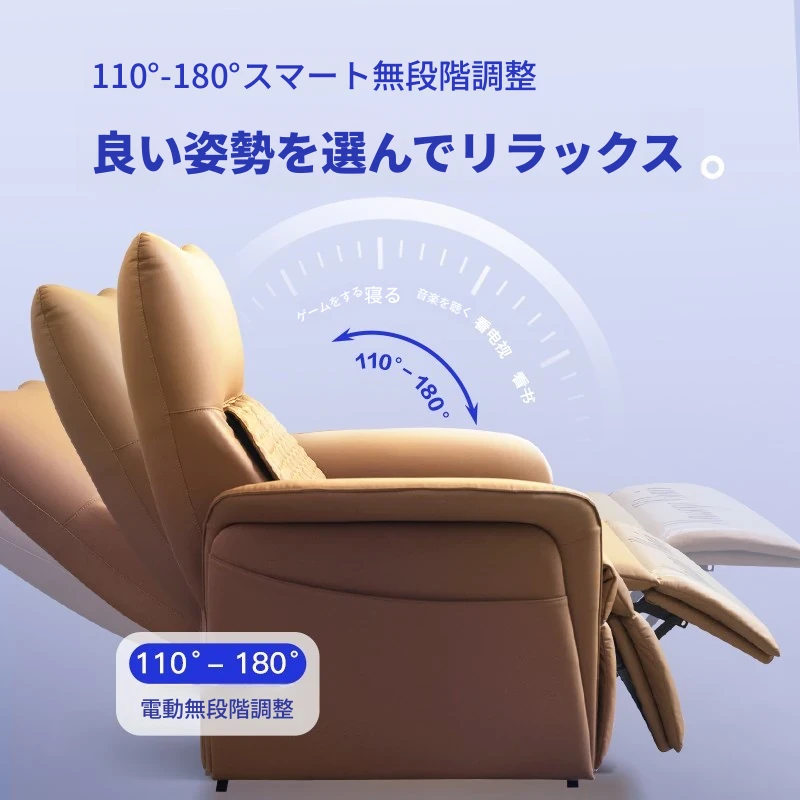 ブロンズイエロー【電動リクライニング+腰背マッサージ+USB充電】