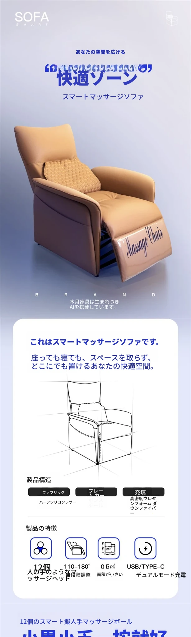 電動ソファ 家庭用 多機能電動一人マッサージチェア 小型リビングやバルコニーに最適なリラックスソファ 睡眠可能な怠け者ソファで至福のひとときをお楽しみください!