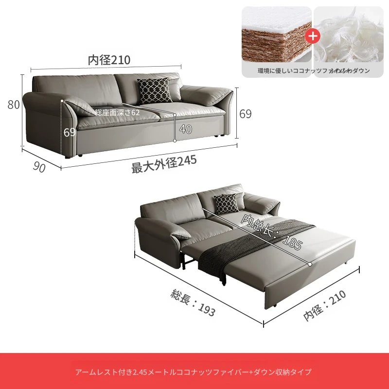 含扶手2.45米ココナッツ繊維+羽毛収納タイプ 【五防猫抓皮】