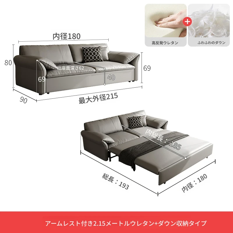 含扶手2.15米ラテックス+羽毛収納タイプ 【五防猫抓皮】