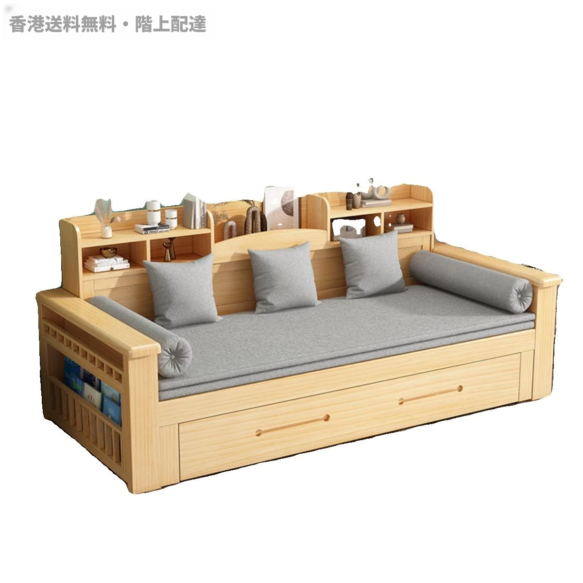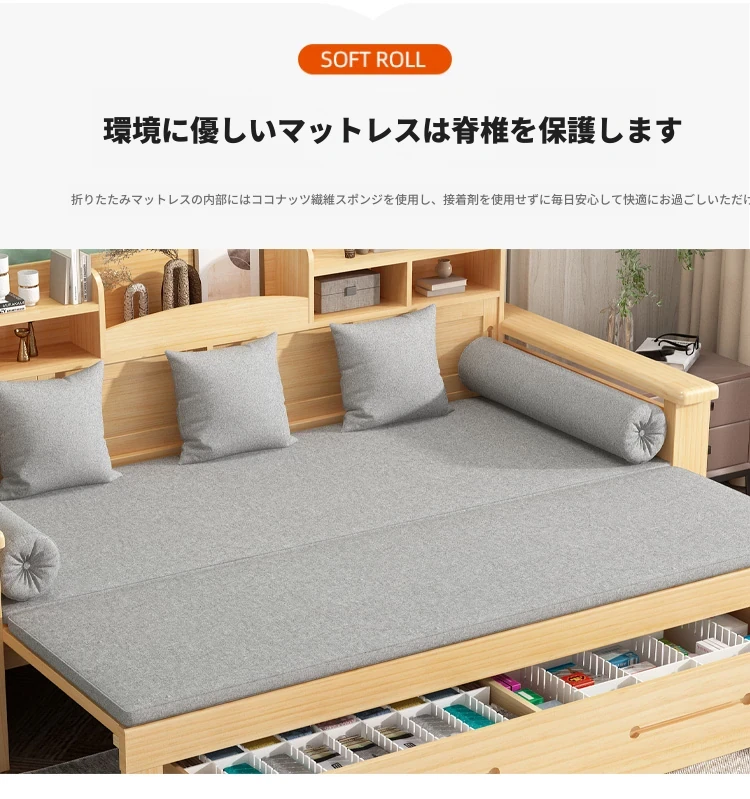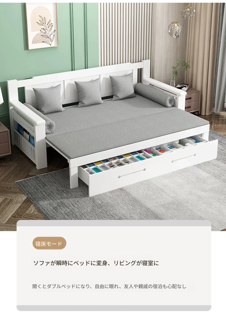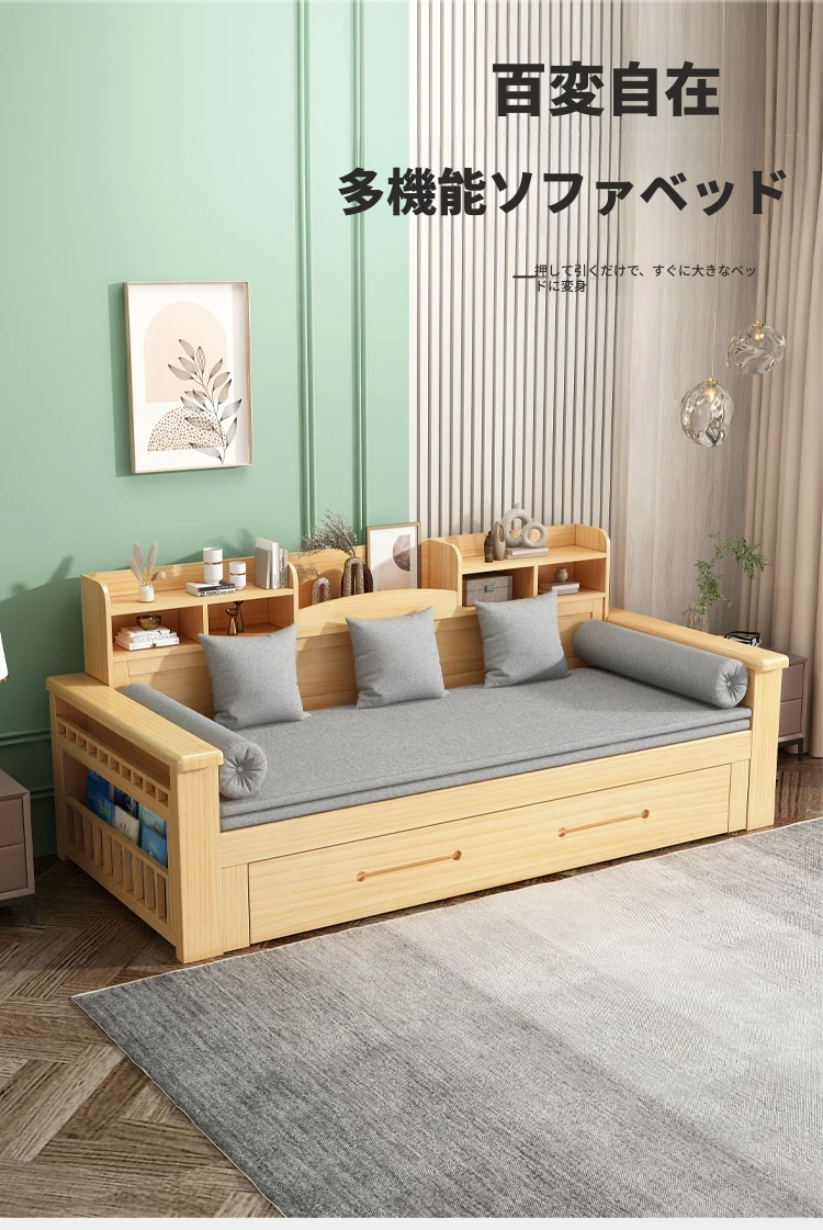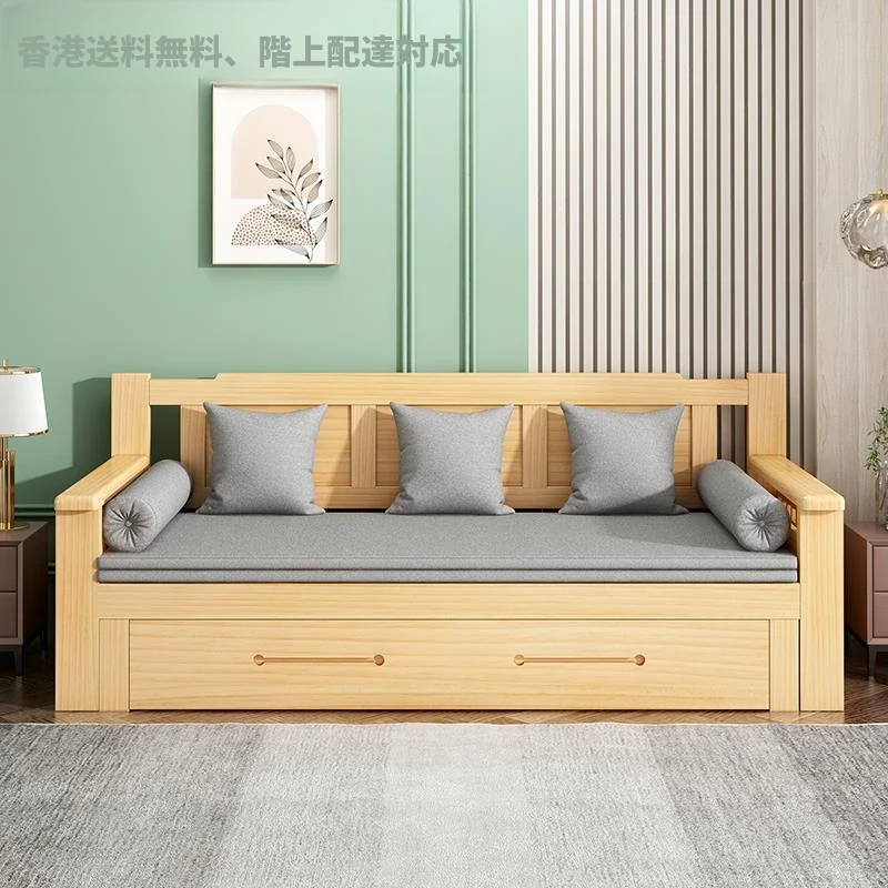 【香港発】おしゃれな実木ソファベッド!折りたたみ式で省スペース、モダンなデザイン。小さなお部屋にもぴったりな多機能収納付きで、快適なリビング空間を実現します!