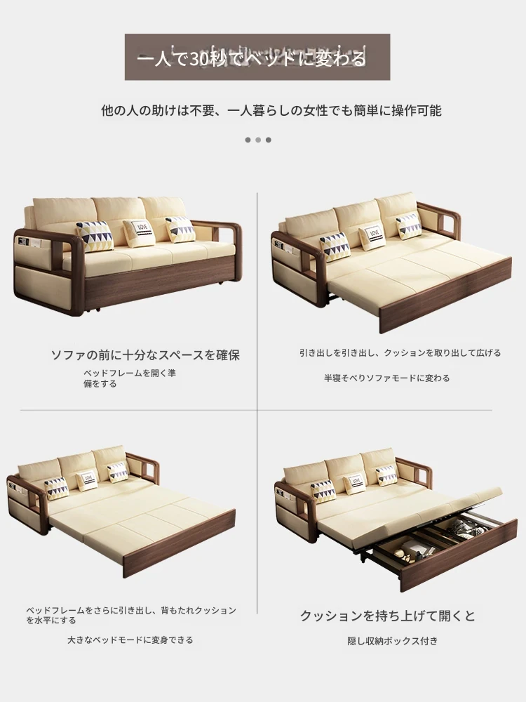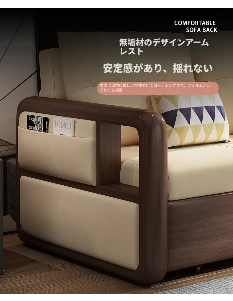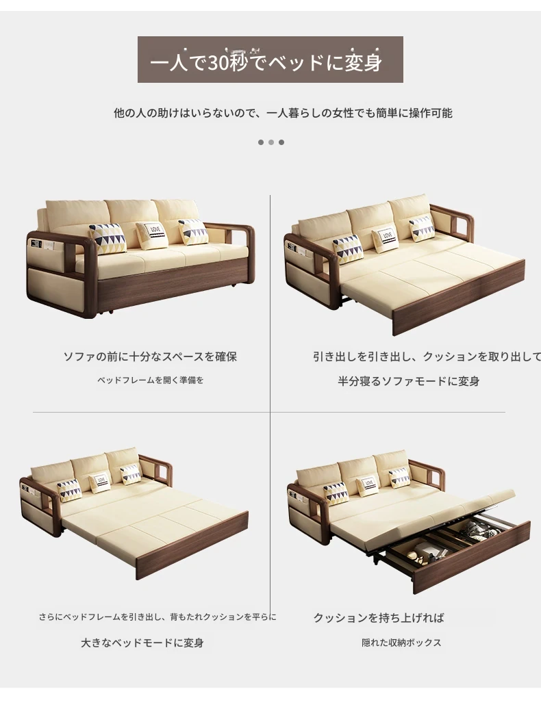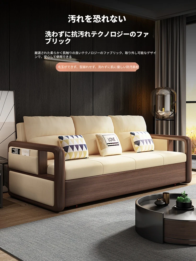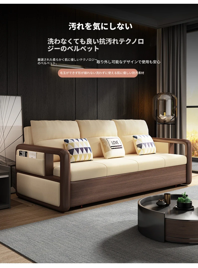 全木製ソファベッド|折りたたみ式・多機能収納|省スペース中華風オフィス用|昼寝に最適なコンパクトベッド