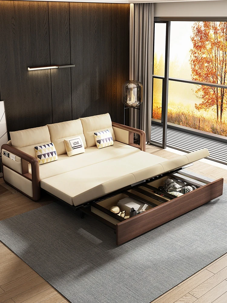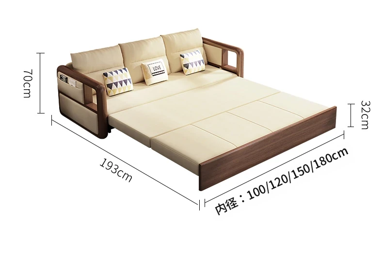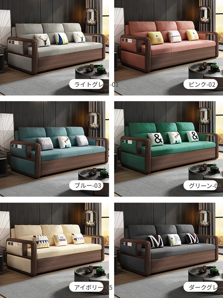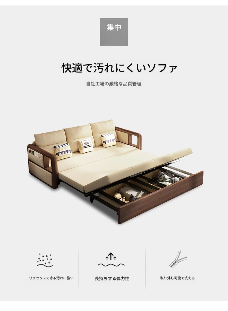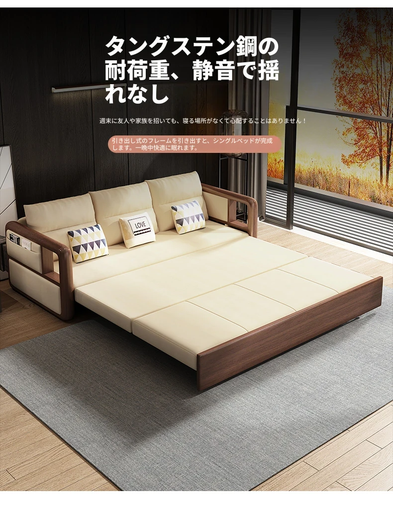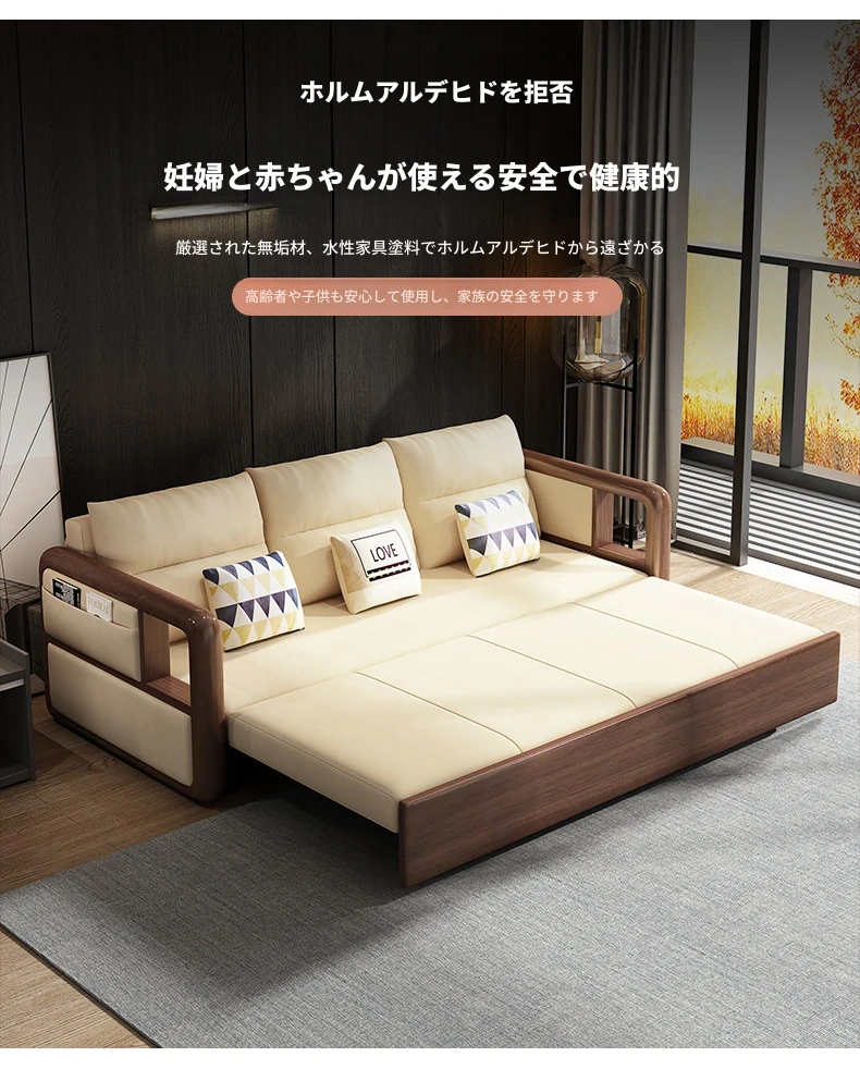 全木製ソファベッド|折りたたみ式・多機能収納|省スペース中華風オフィス用|昼寝に最適なコンパクトベッド